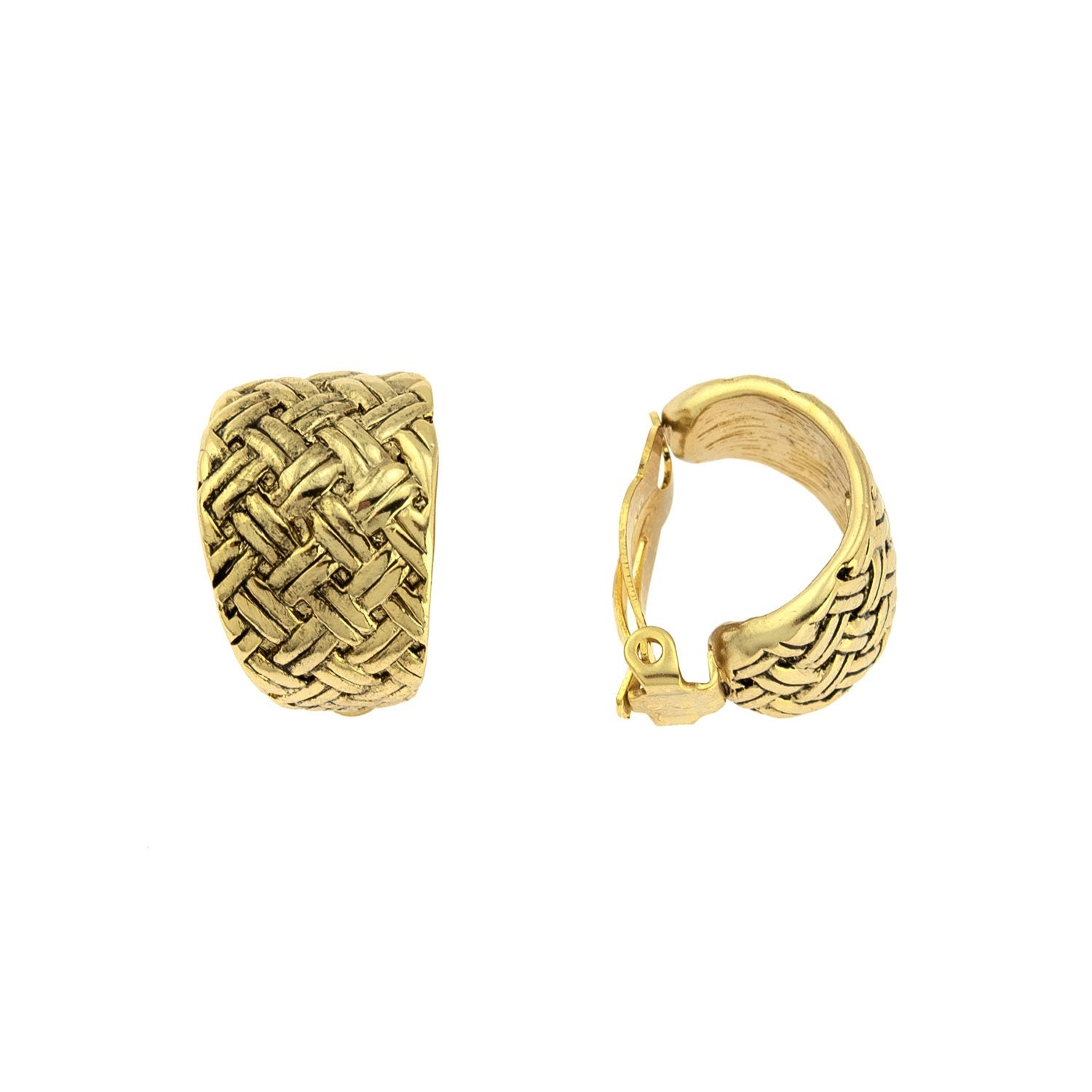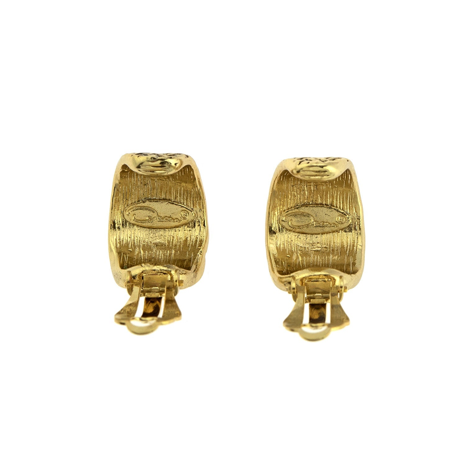• Vintage Oscar de la Renta Clip Earrings Antique Yellow Gold Basket Weave Design