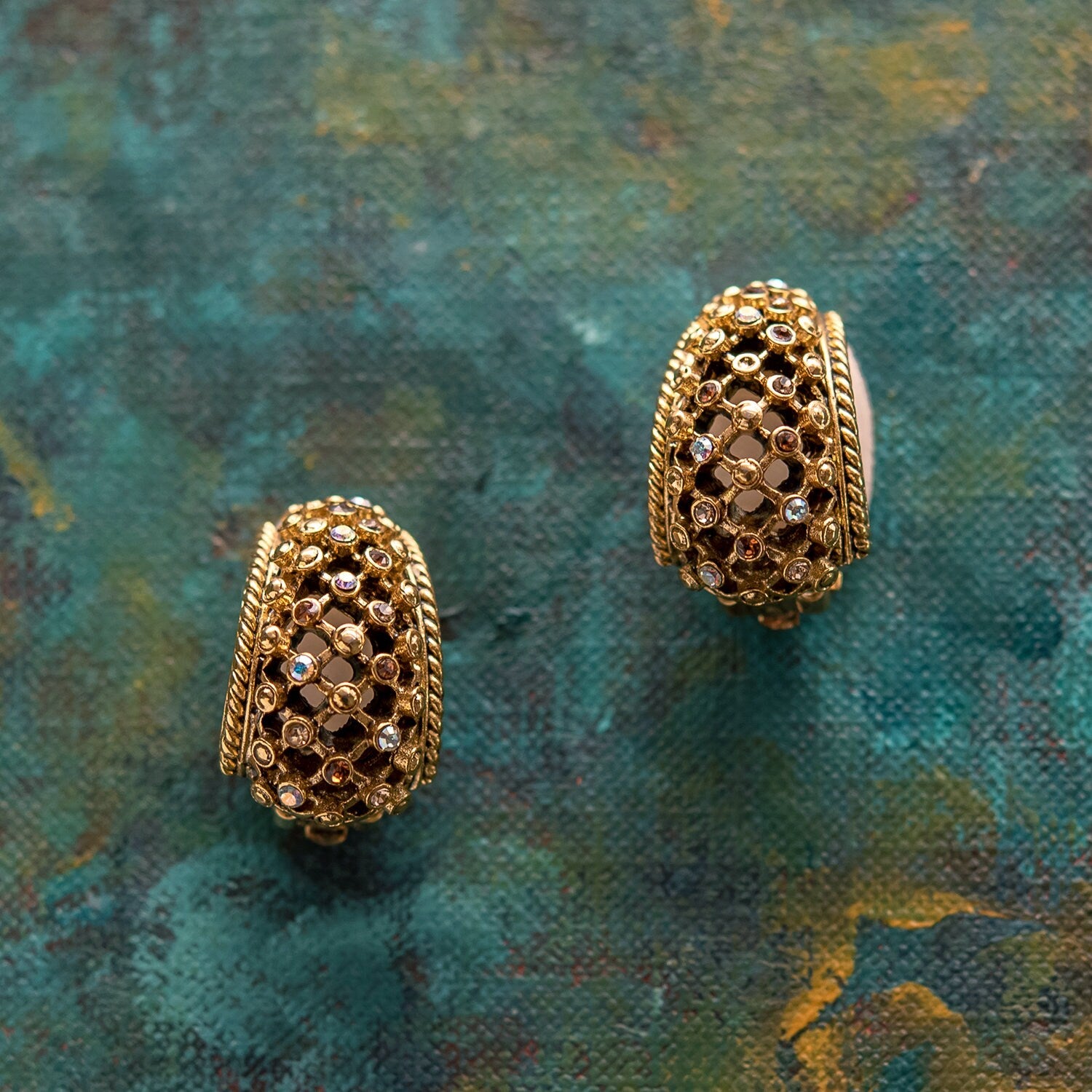 Clip Earrings Gold with Multi Crysstals Dome Earrings