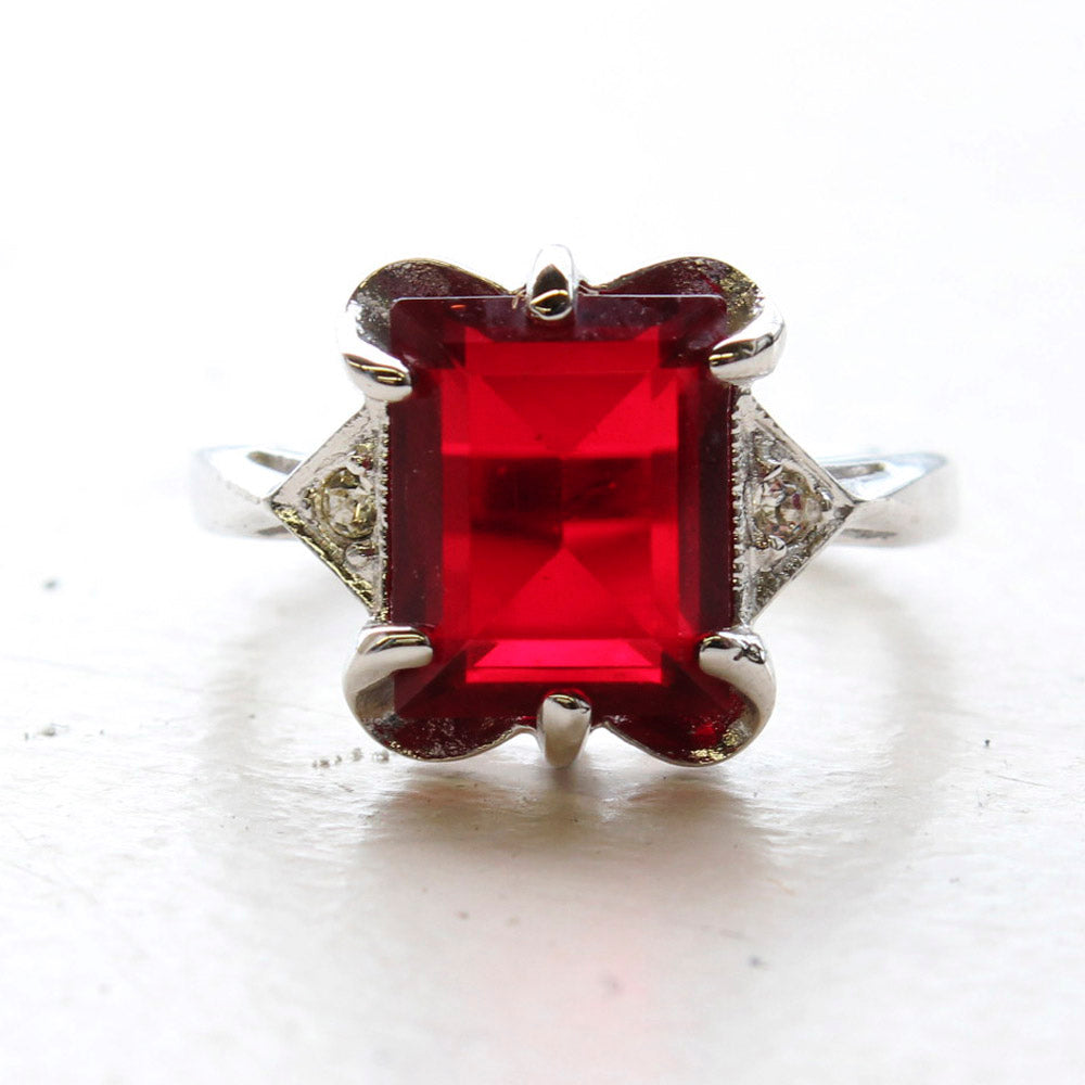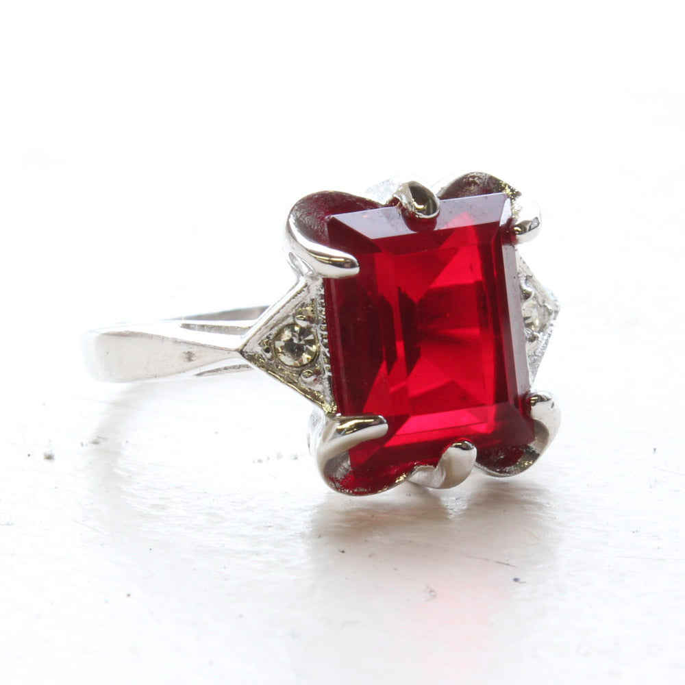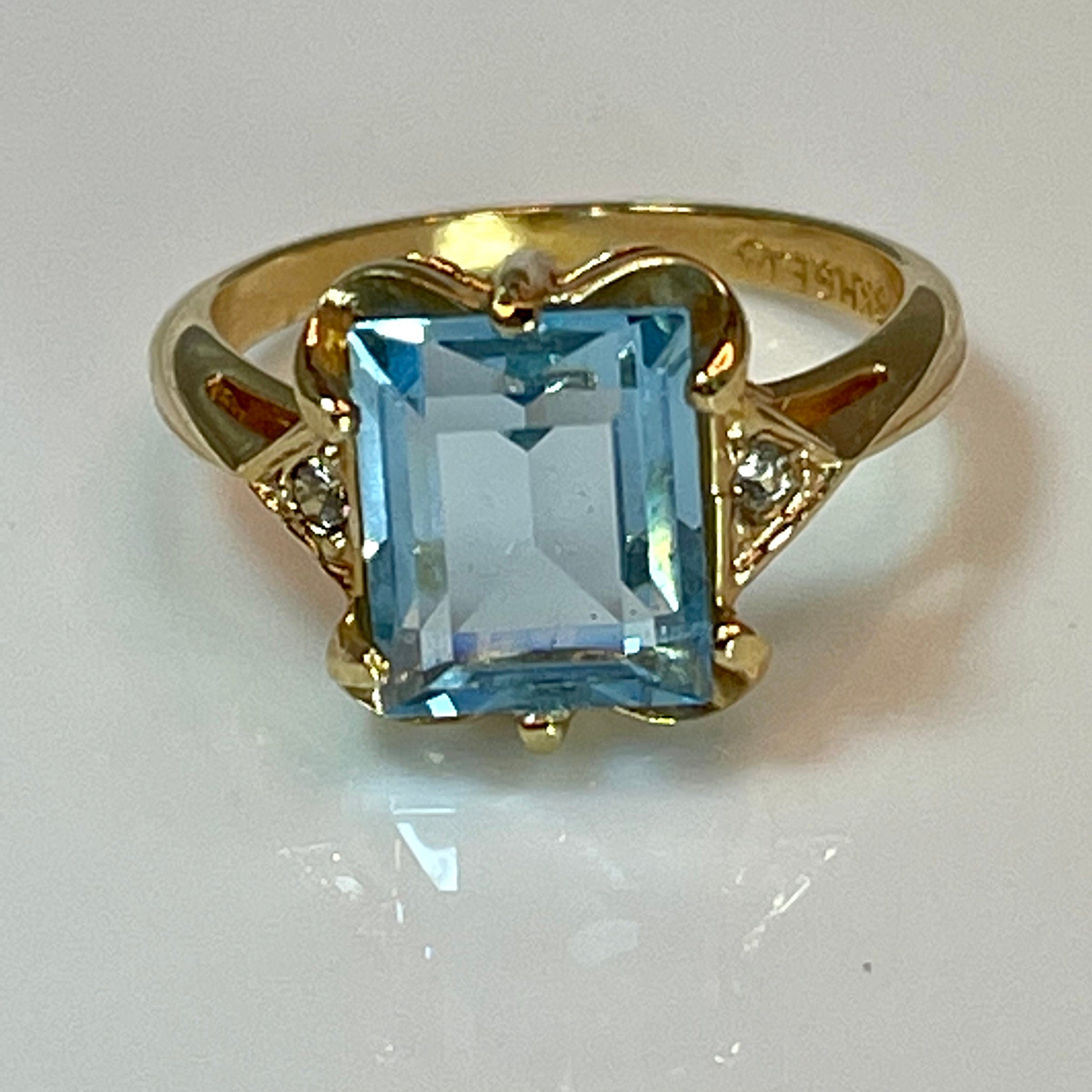 Vintage Ring Emerald Cut Blue Topaz Crystal 18kt Yellow Gold Eectroplated Ring December Birthstone