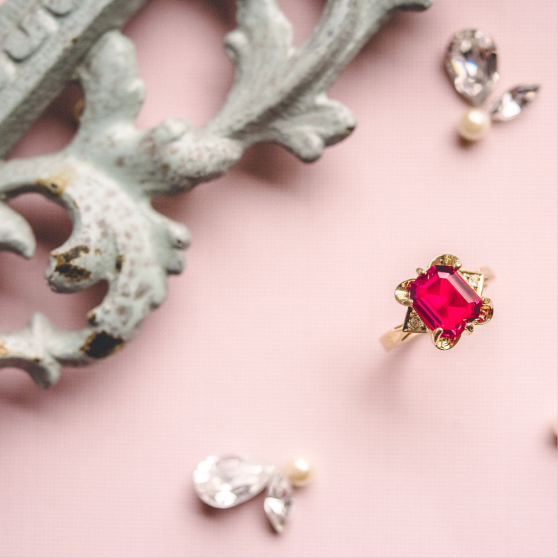 • Vintage Ring Emerald Cut Blue Topaz Crystal 18kt Yellow Gold Eectroplated Ring December Birthstone