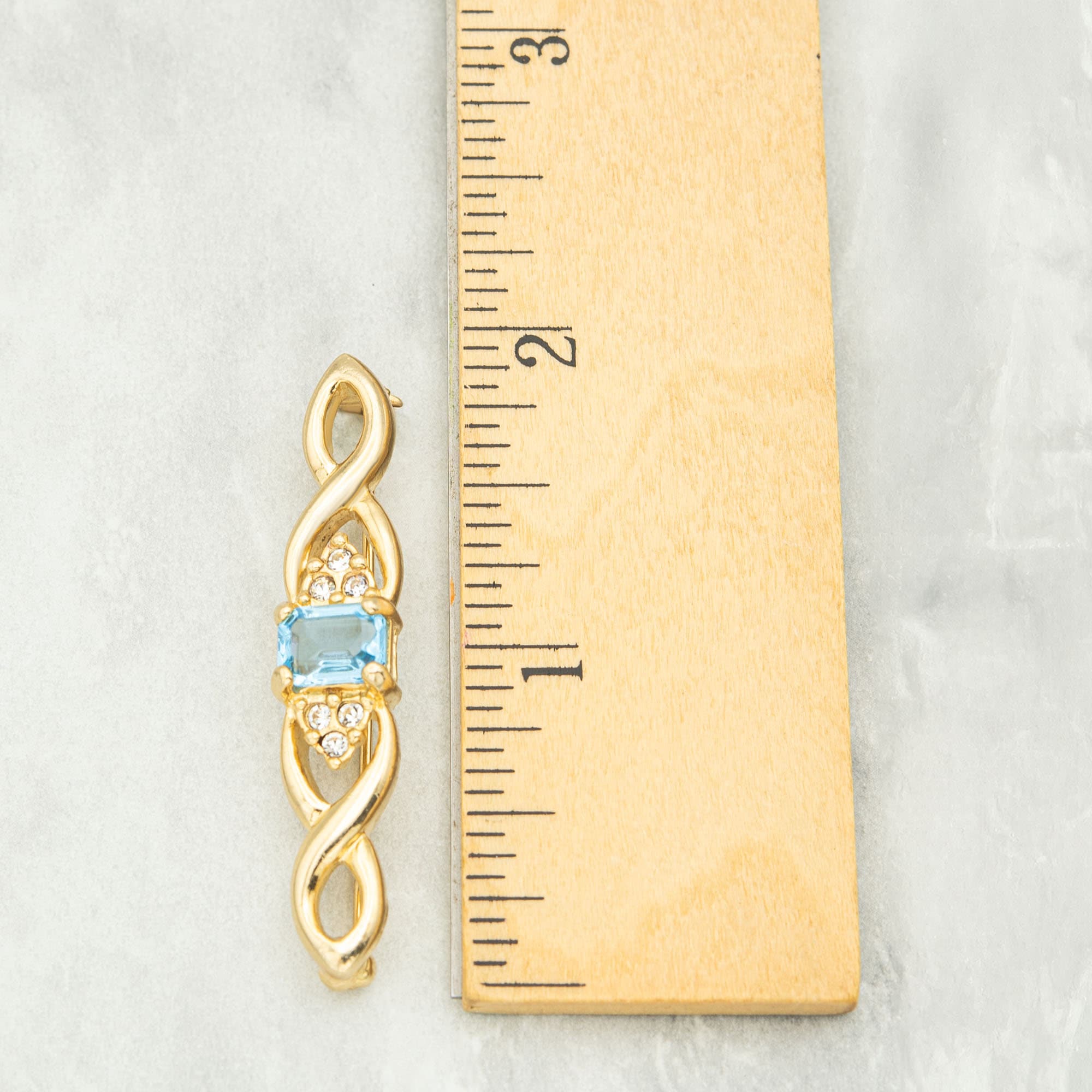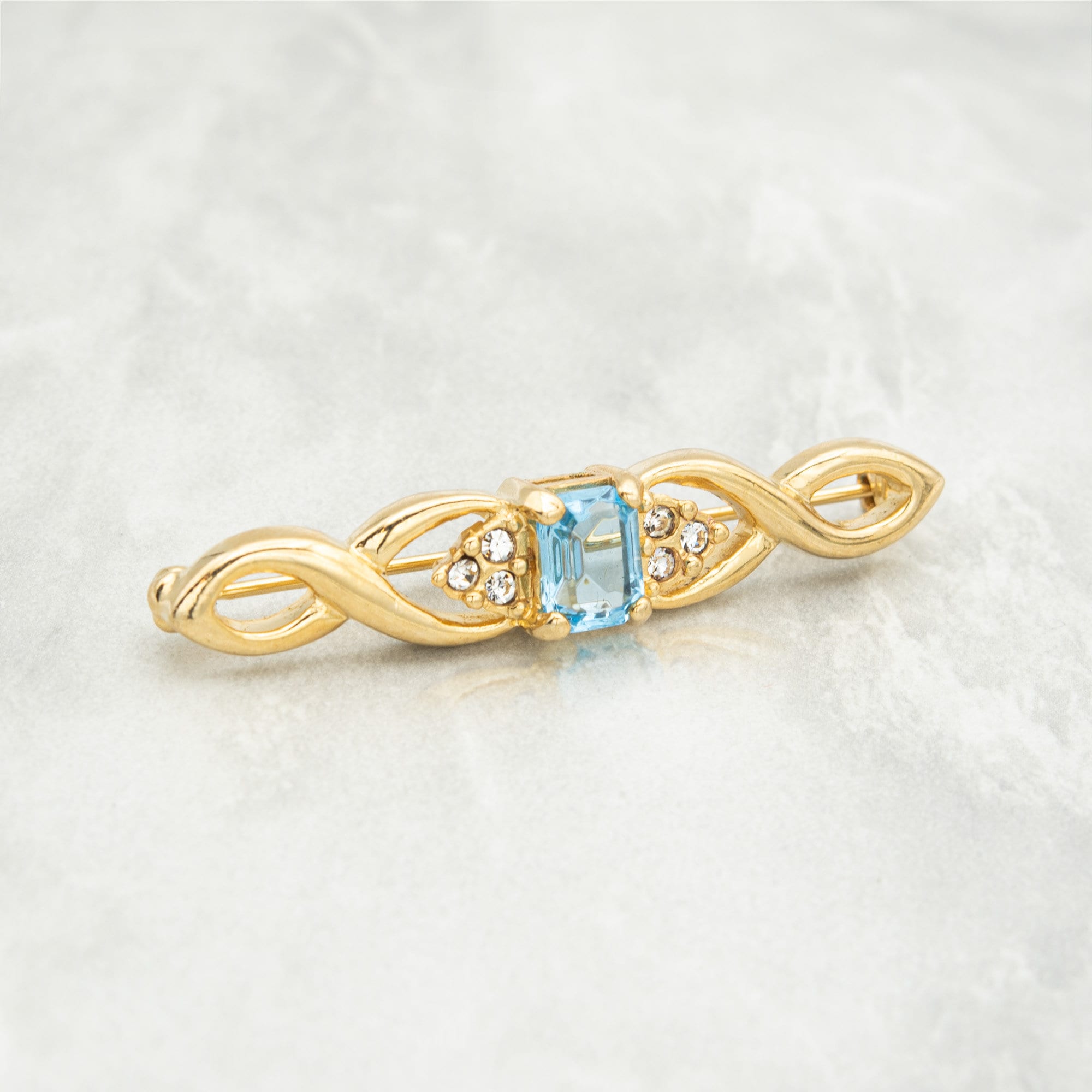 Vintage Brooch Pin Aquamarine, 18kt Gold Electroplated Antique Womans Jewelry P996-AYG