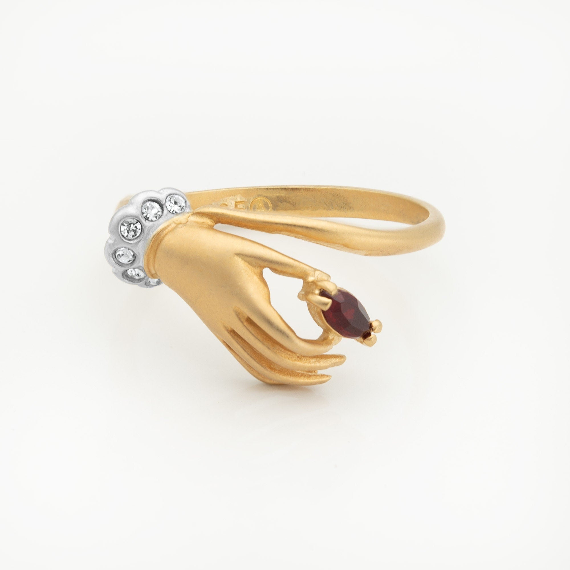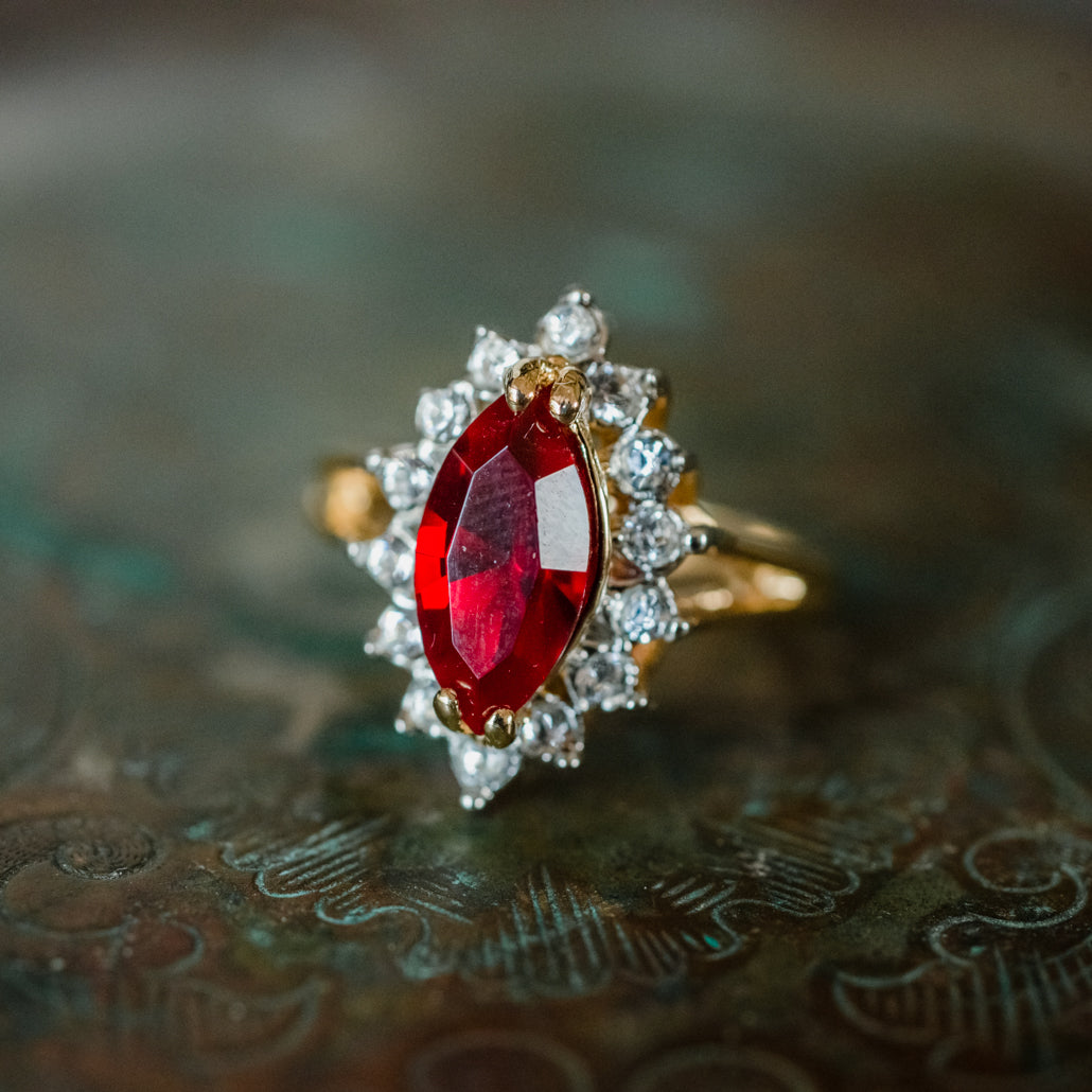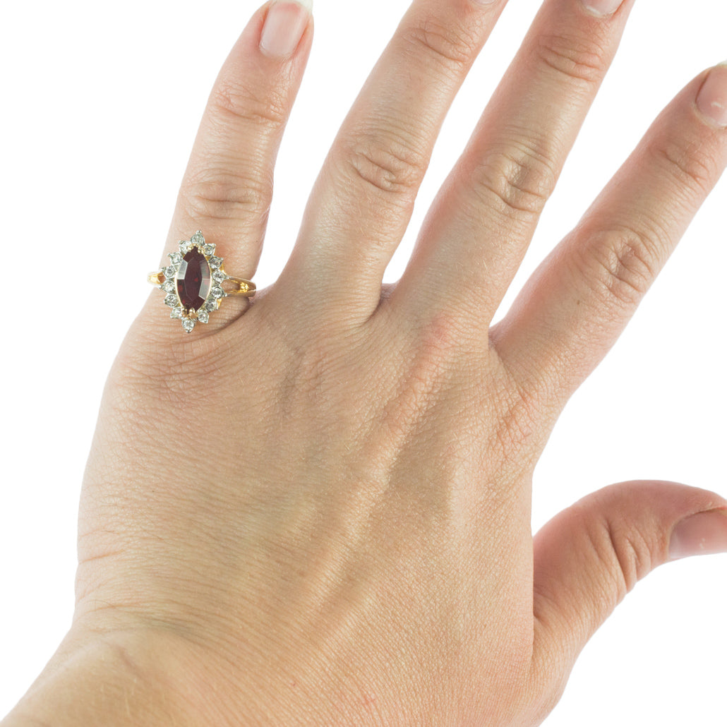 Vintage Austrian Crystal Cocktail Ring 18k Gold Electroplated Womans Jewelry Women's Vintage Estate Rings April Birthstone