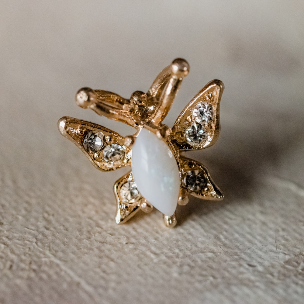Vintage Butterfly Pin Genuine Opal 18k Gold Electroplated Lapel Pin Womens Brooch