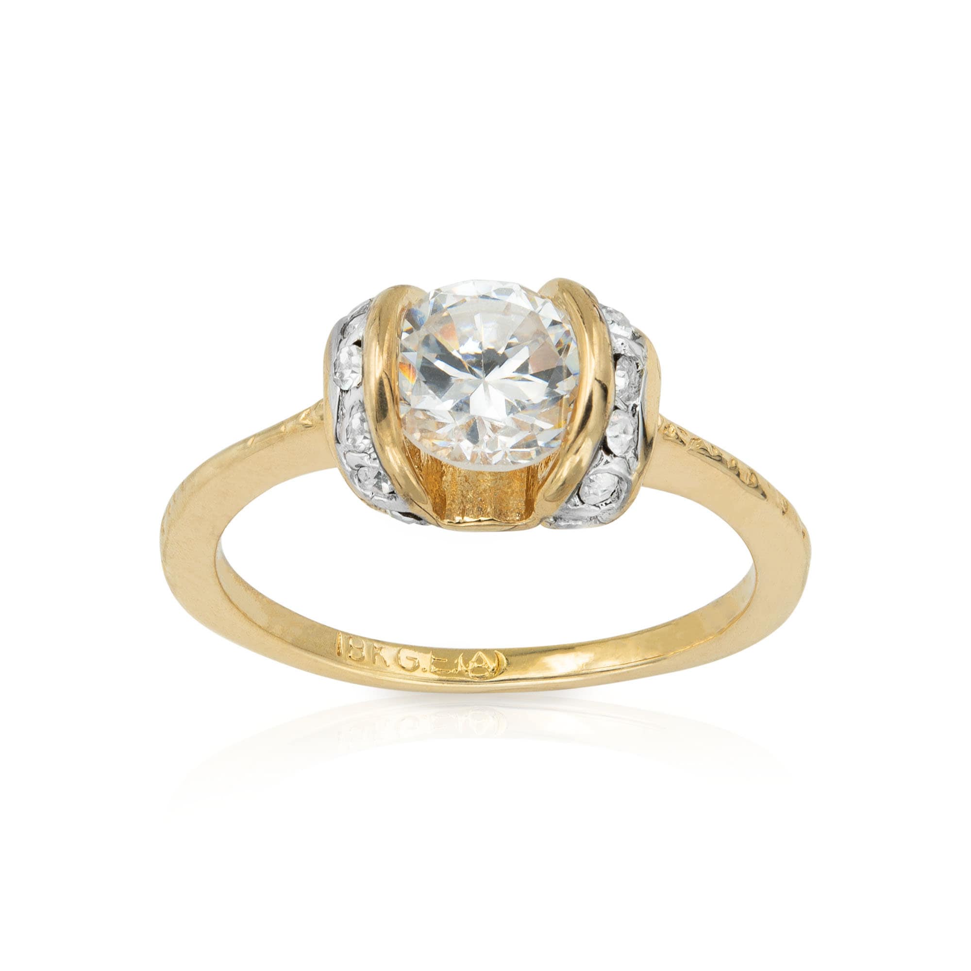 Vintage Ring Cubic Zirconia Solitaire Engagement Ring 18KT Gold Antique Womans Jewelry #R2715 Size: 9