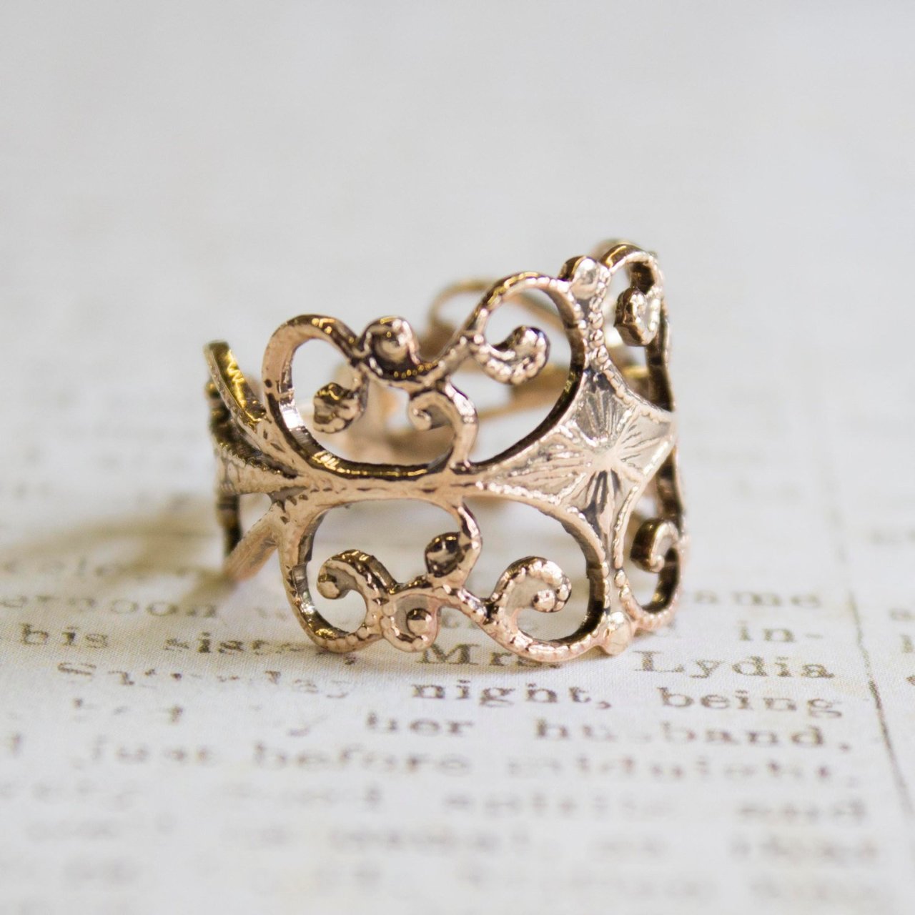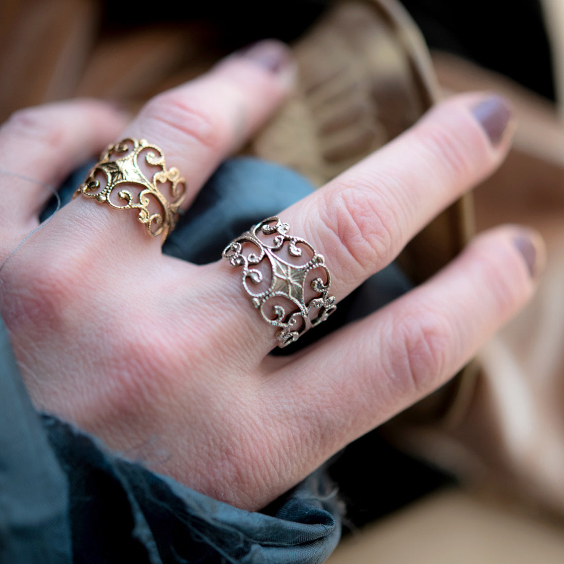 Vintage Ring Filigree Ring Antique 18k Gold Edwardian Style Womans Ornate Handmade Jewelry #R553 Size: 4
