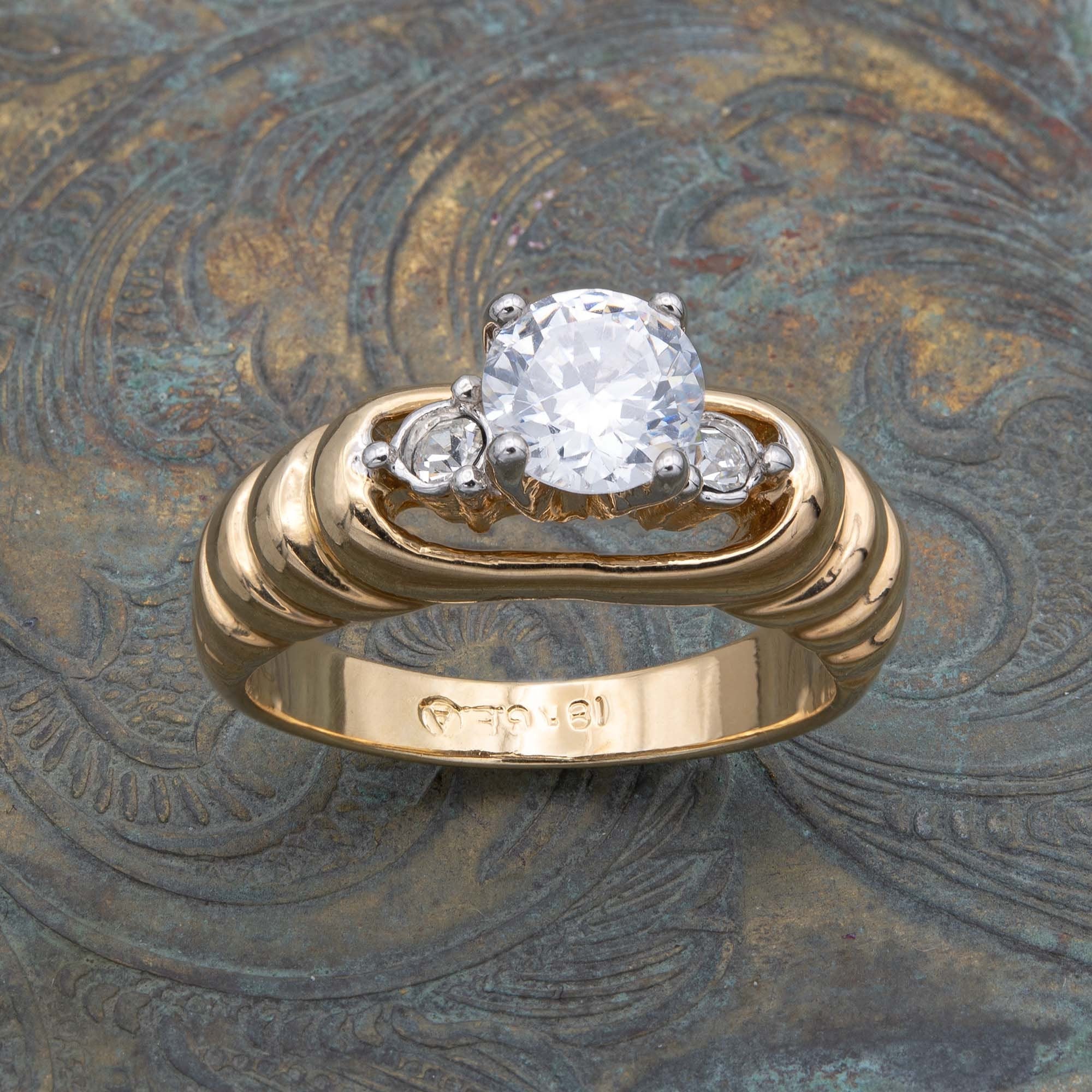 Vintage Ring Cubic Zirconia Solitaire Engagement Style Ring 18KT Gold Electroplated