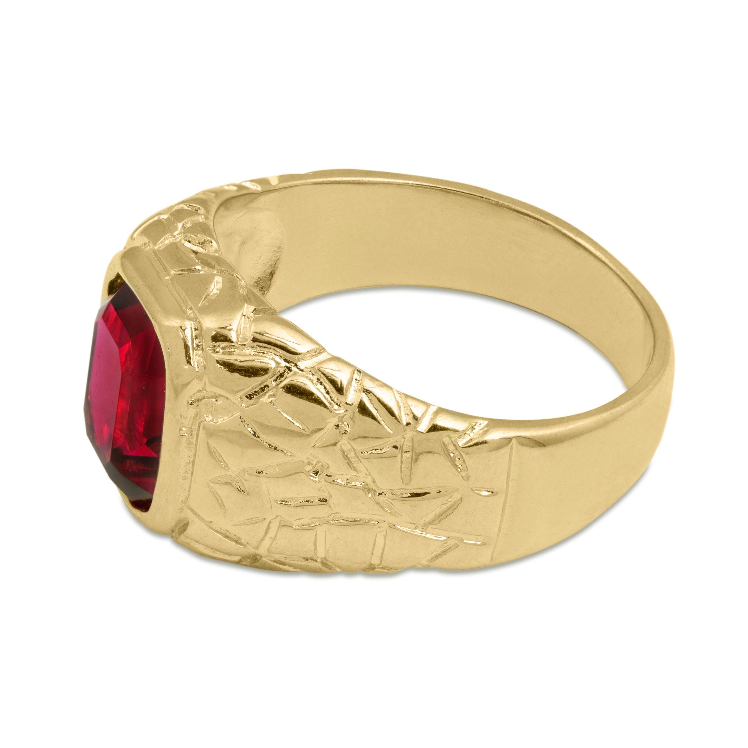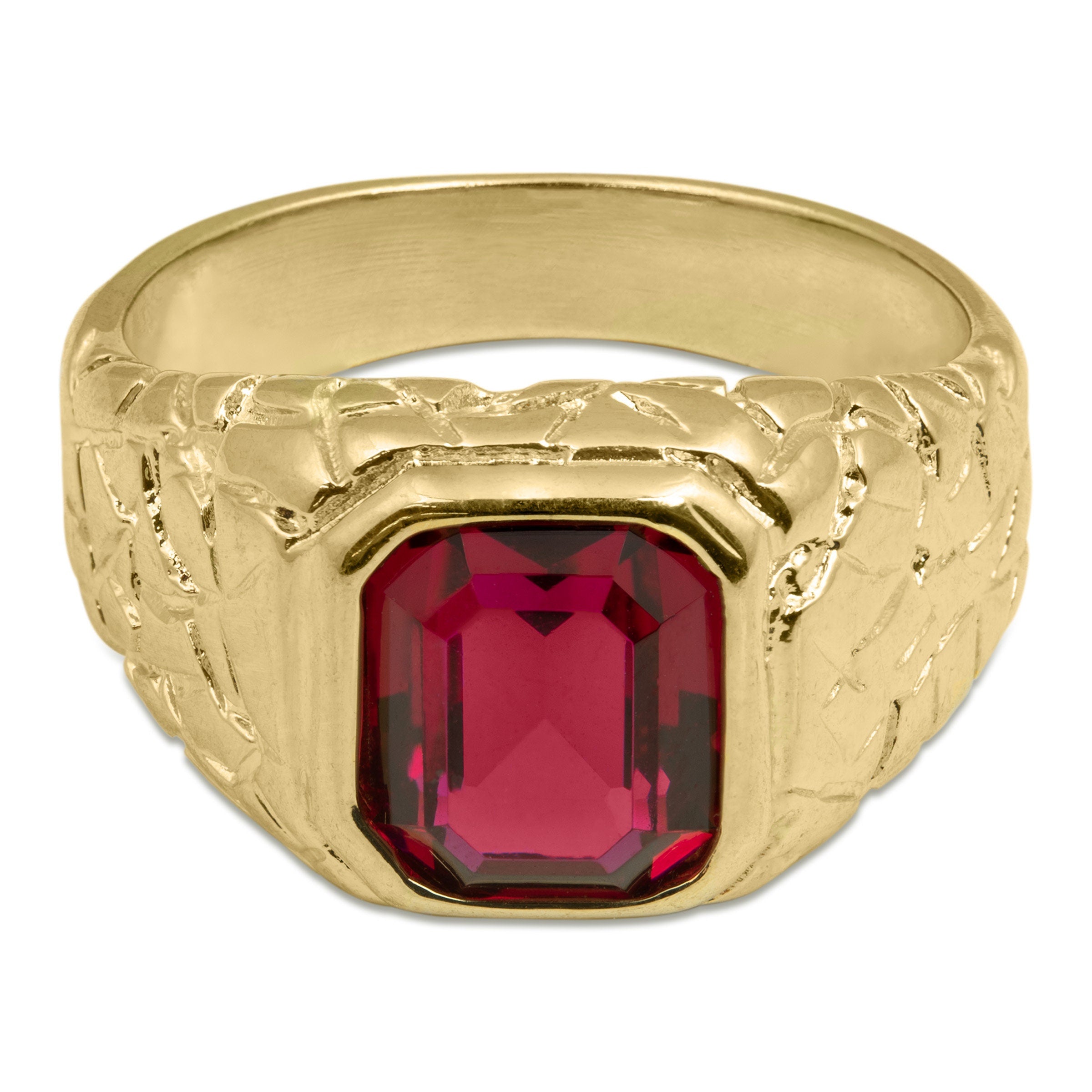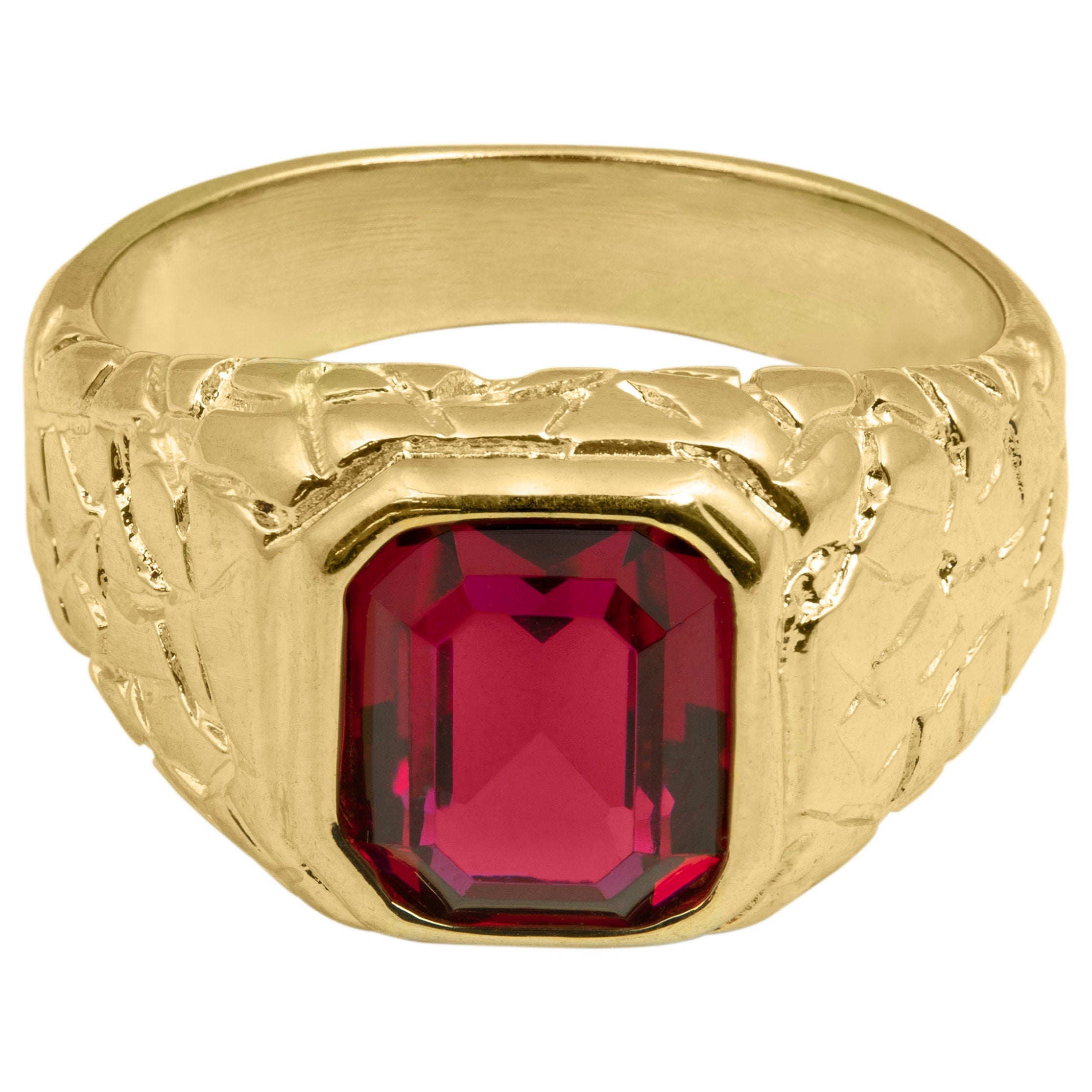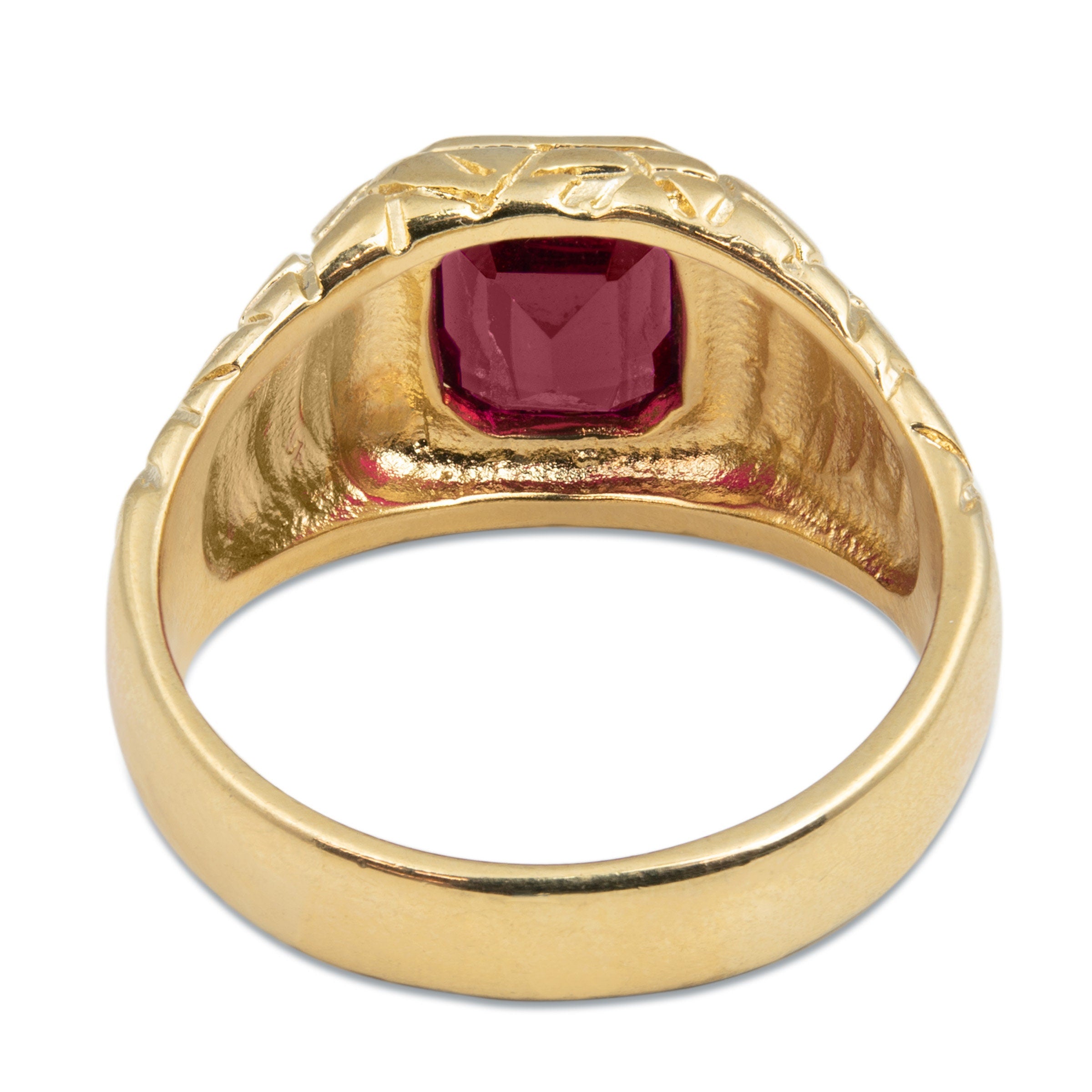 Vintage Ring 1980s Mens Ruby Crystal 18kt Gold Plated Antique for Men #R6004