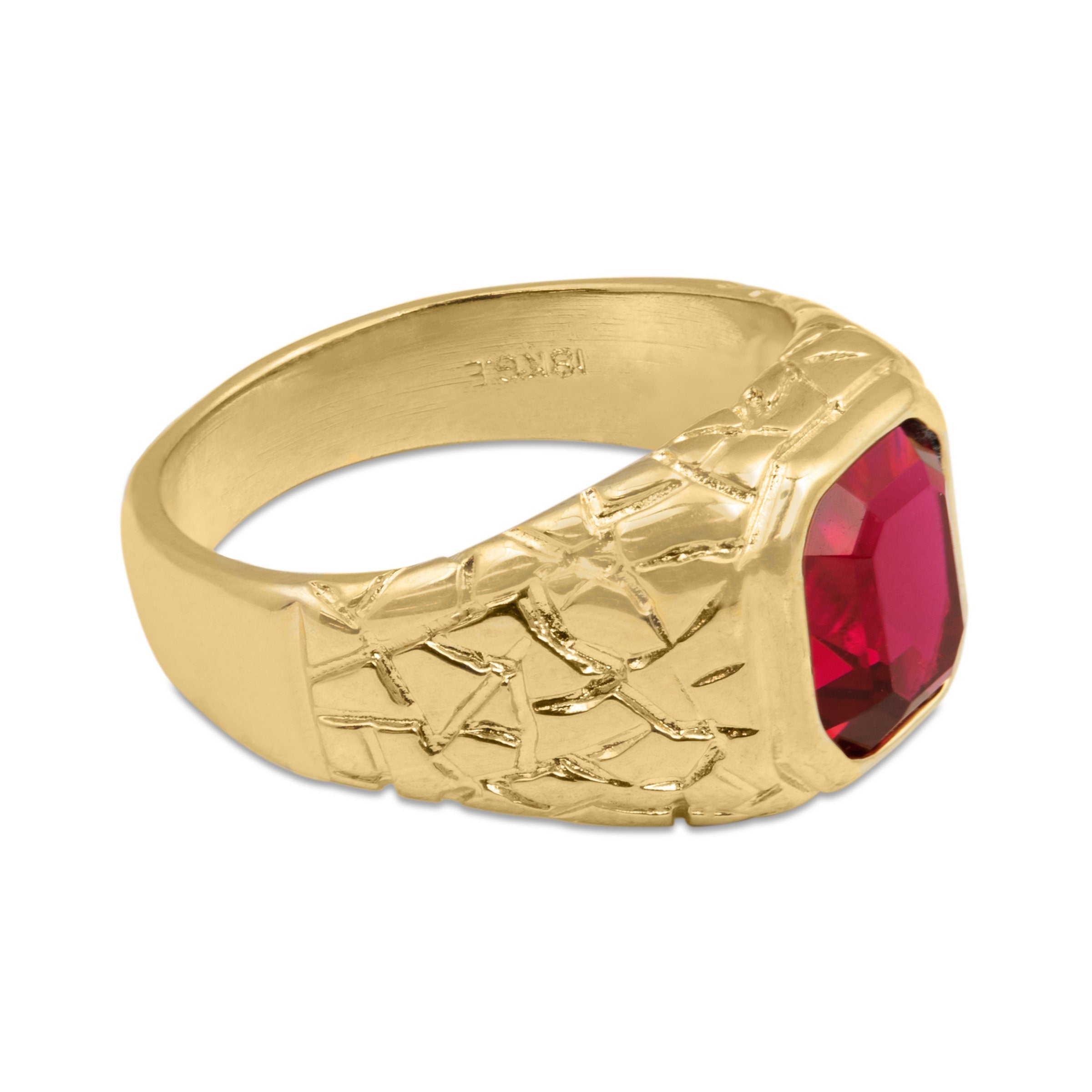 • Vintage Ring 1980s Mens Ruby Crystal 18kt Gold Plated Antique for Men #R6004