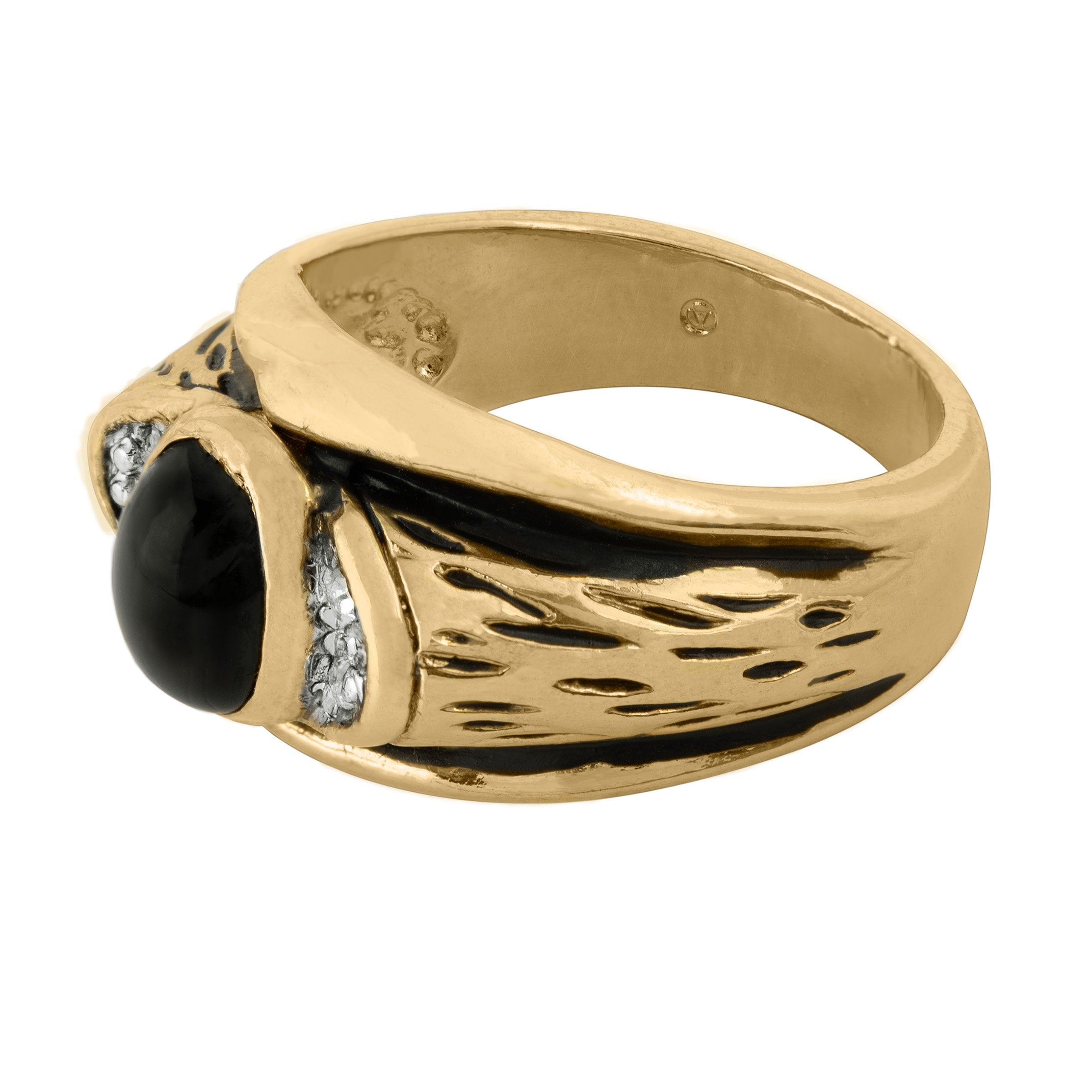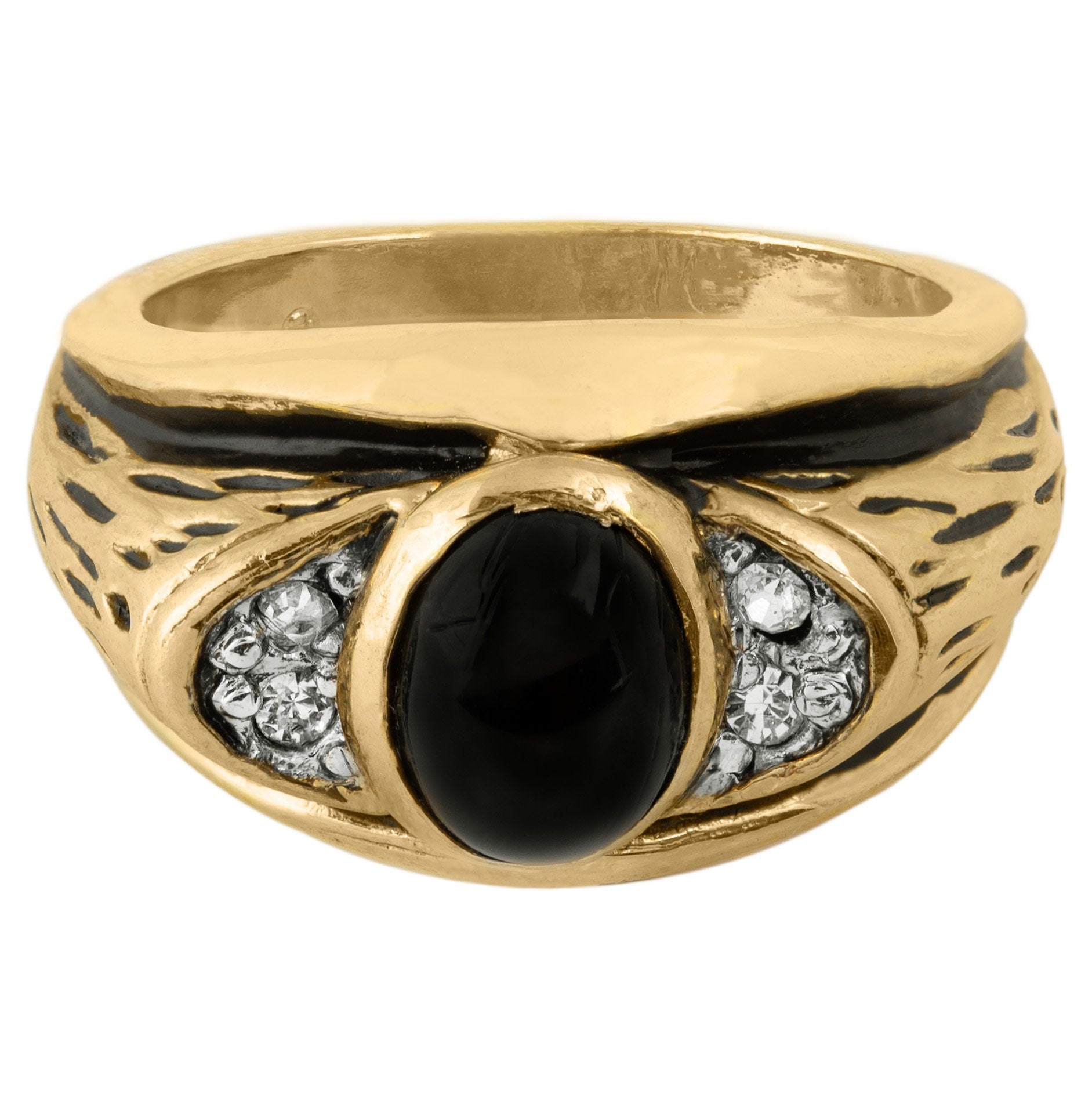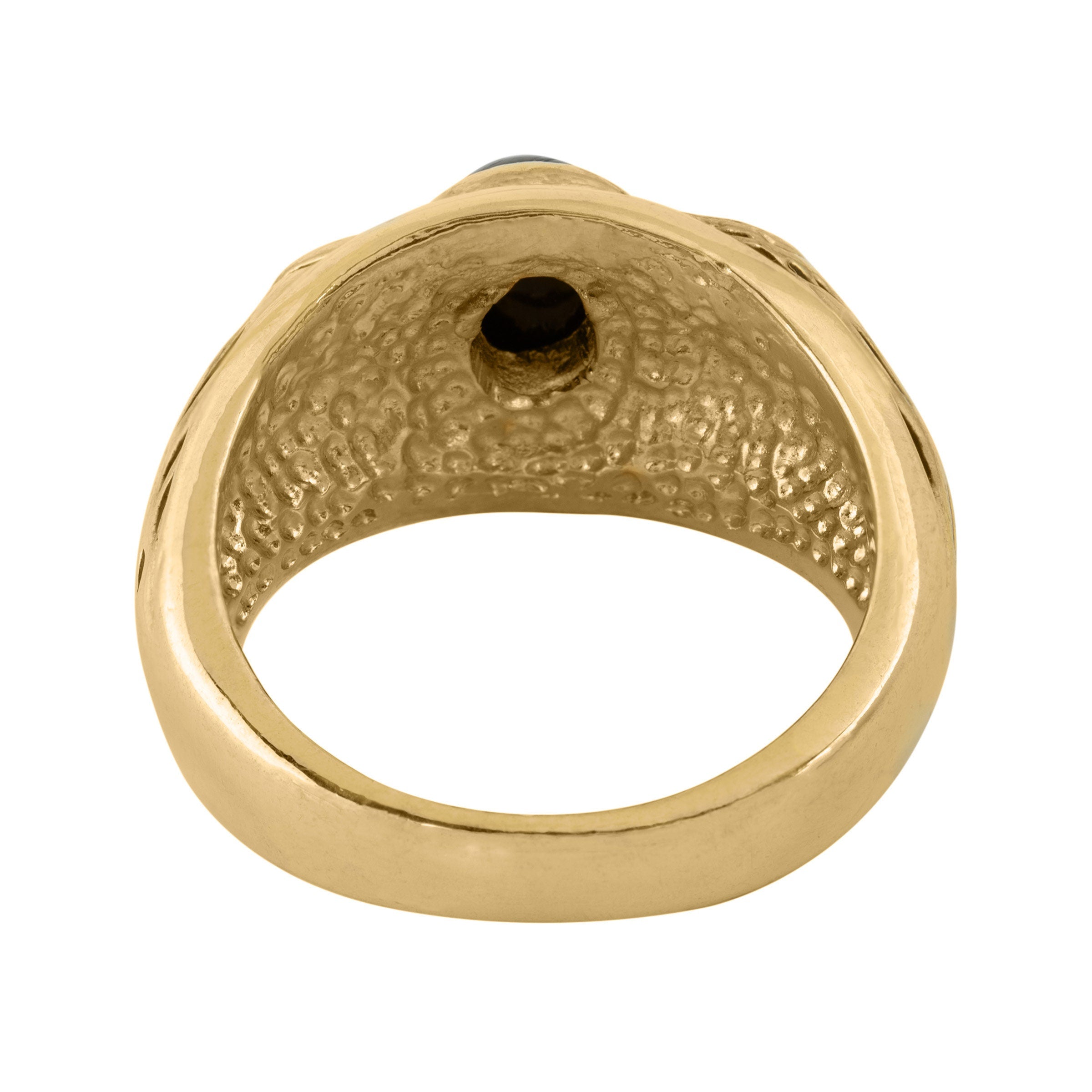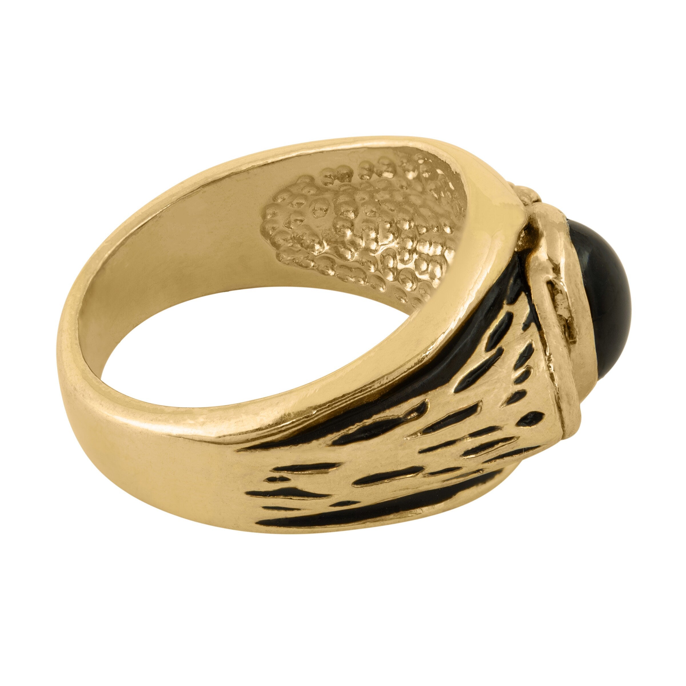 Men's Vintage 1980s Unisex Ring Made in Providence, RI, USA 18kt Antiqued Gold Plated Glass Onyx Stone Stamped - 18k HGE Awesome and unique ring! More Men's & Unisex Vintage Rings