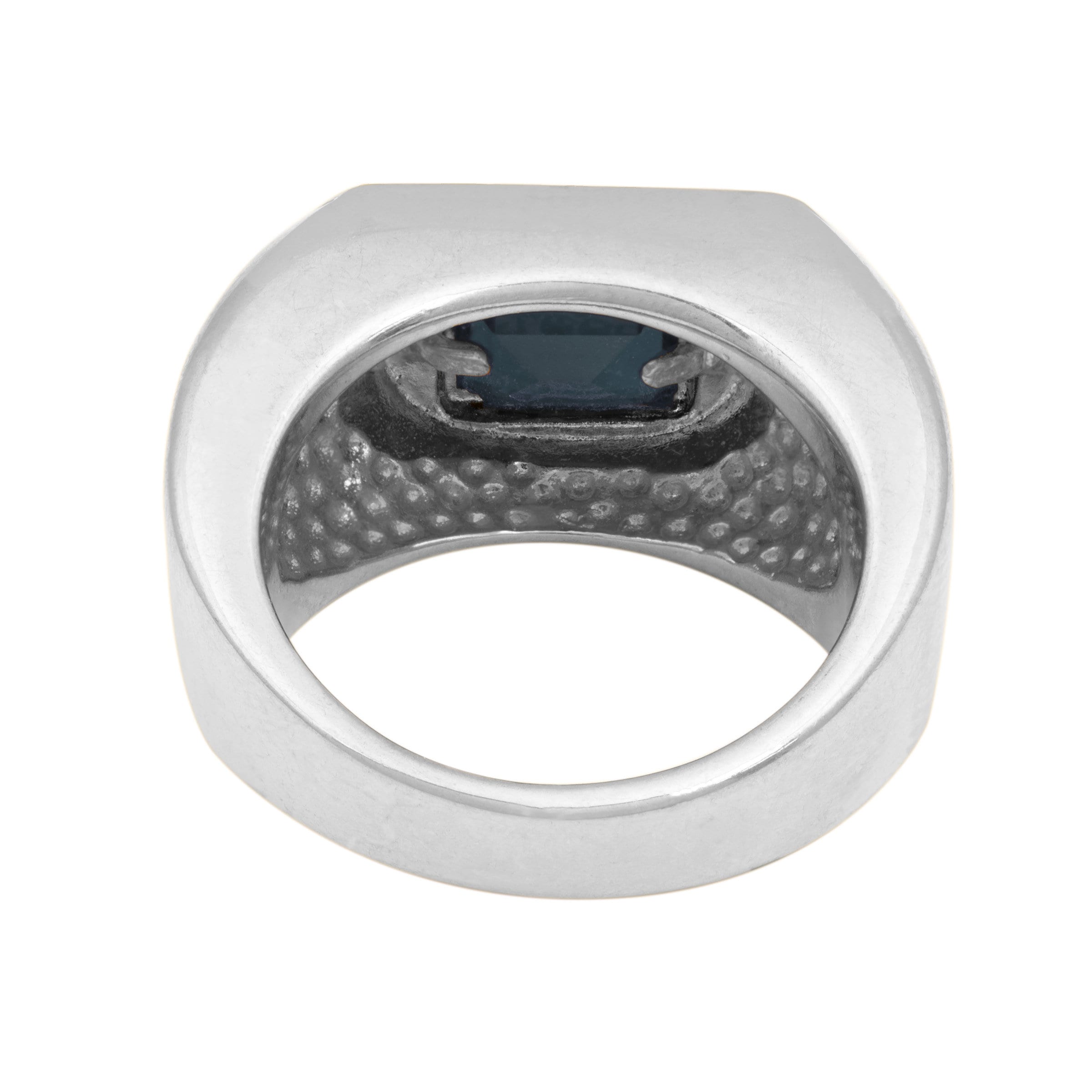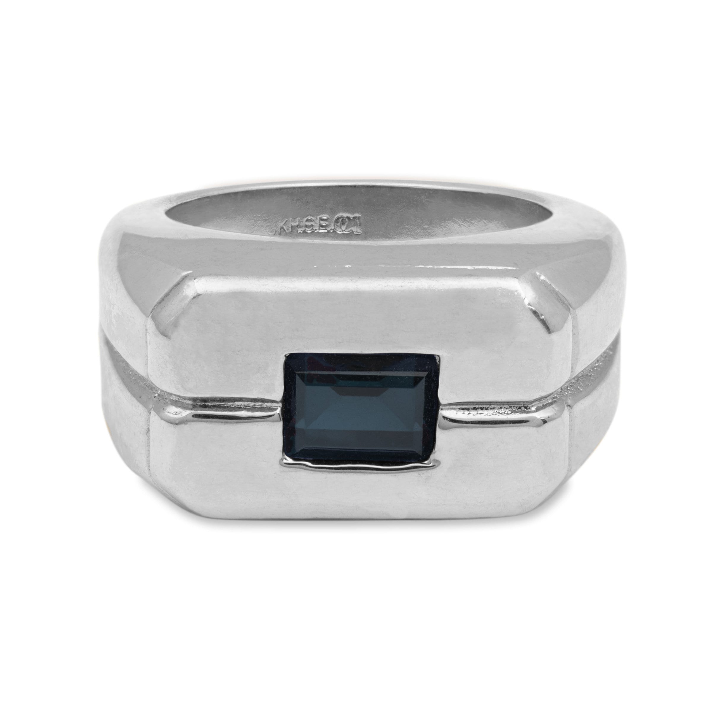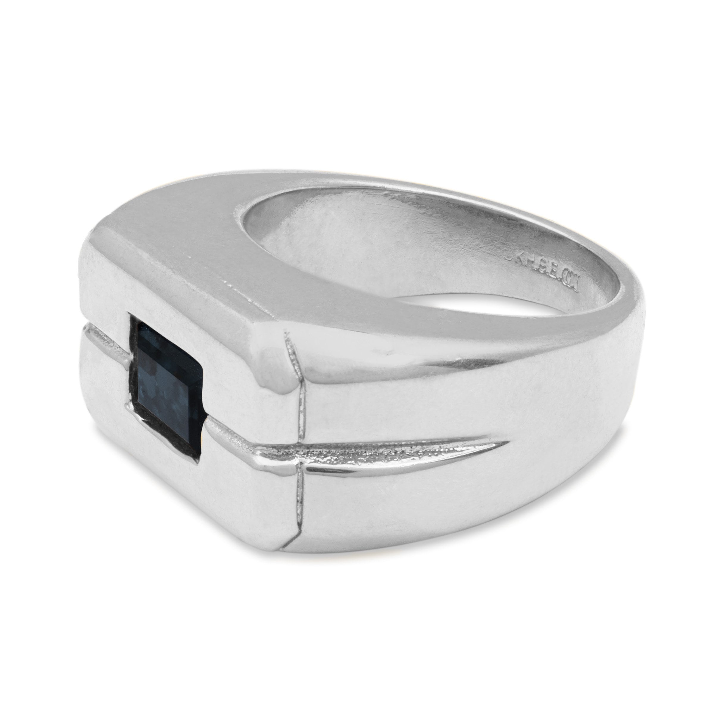 • Vintage Ring 1980s Mens Sapphire Crystal 18kt White Gold Silver Plated Antique Ring #R6002-SW