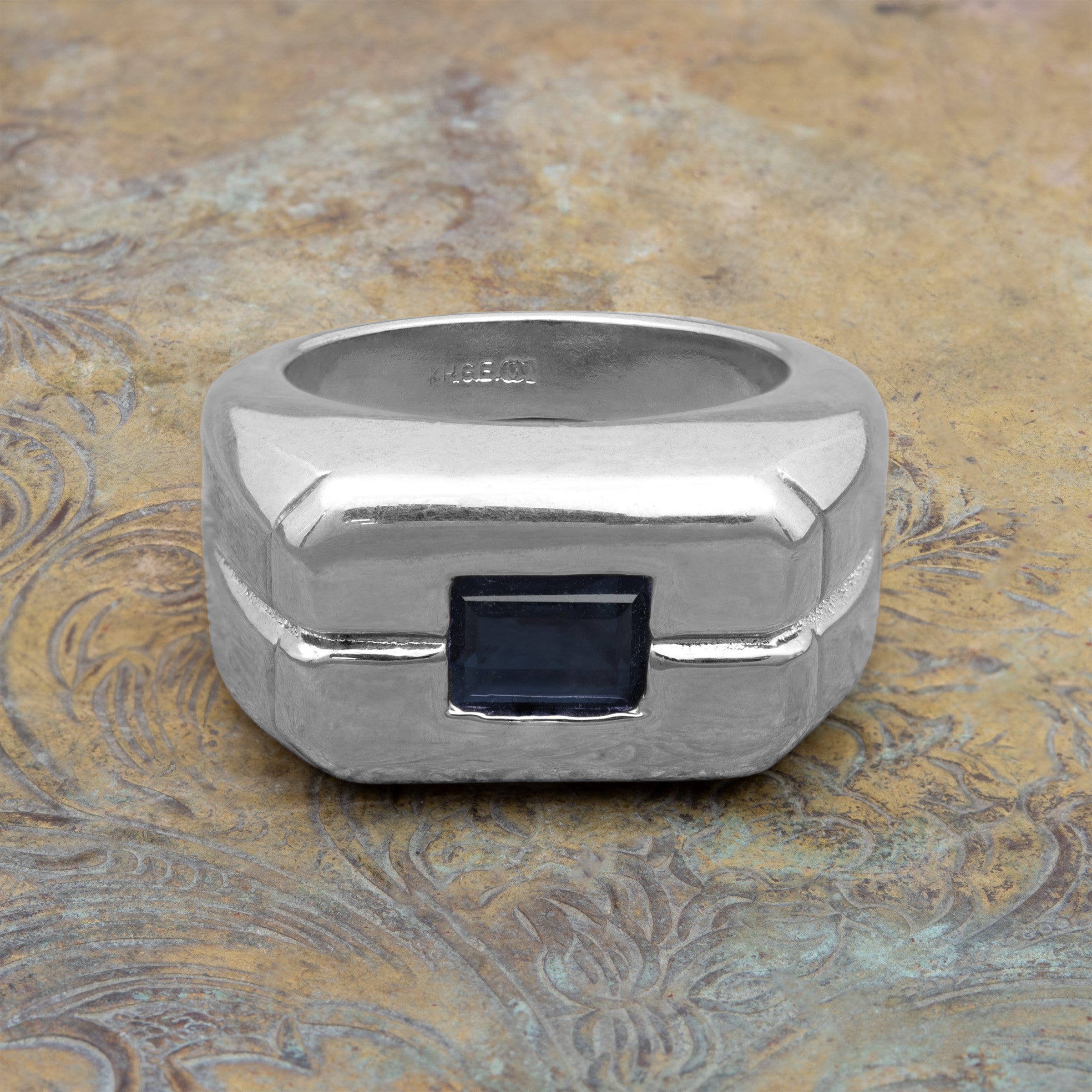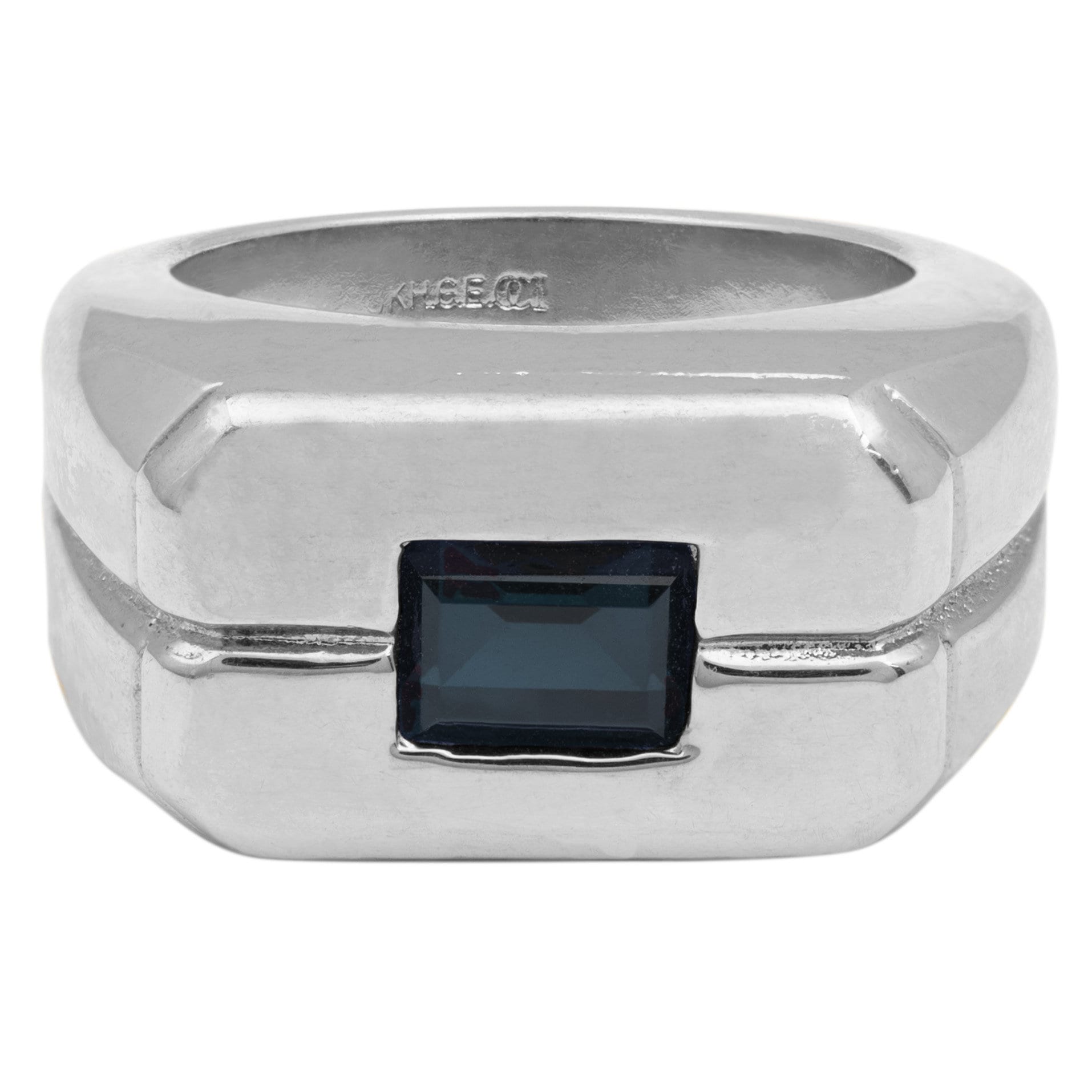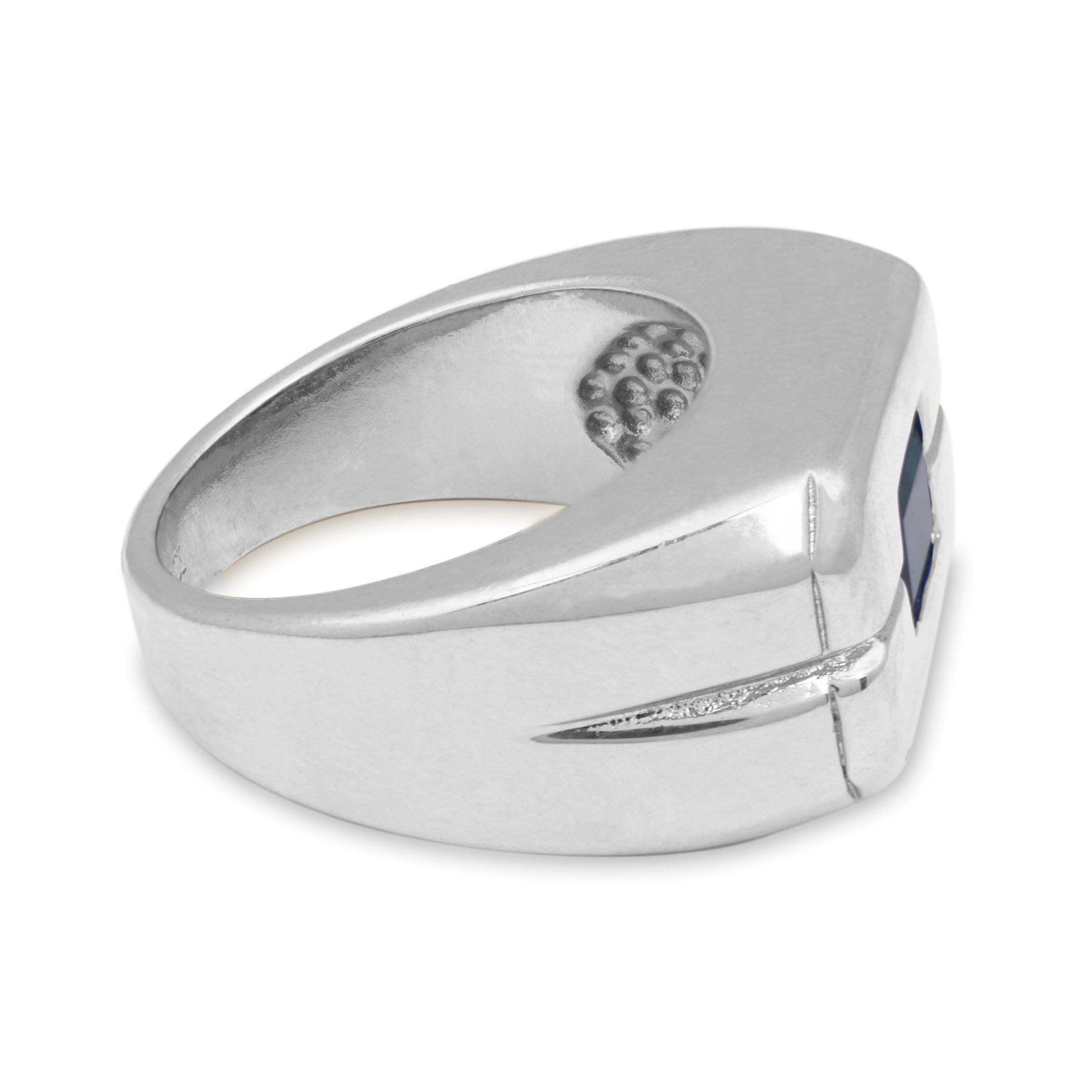 • Vintage Ring 1980s Mens Sapphire Crystal 18kt White Gold Silver Plated Antique Ring #R6002-SW