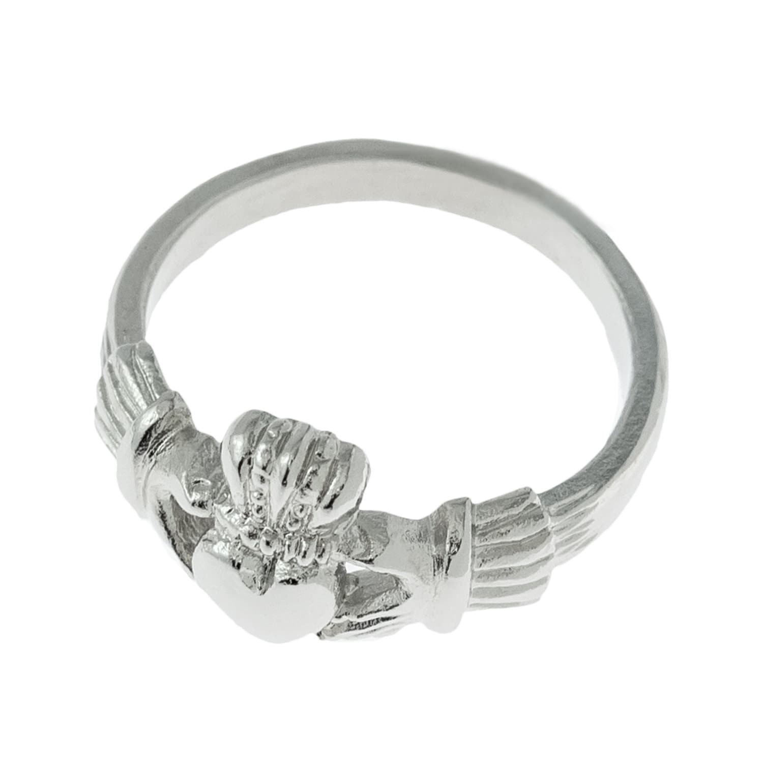 Vintage 1970s Irish Claddagh Ring Condition: Excellent (Never worn and with tags) Made in Providence, RI, USA 18k White Gold Plated Stamped - 18k HGE