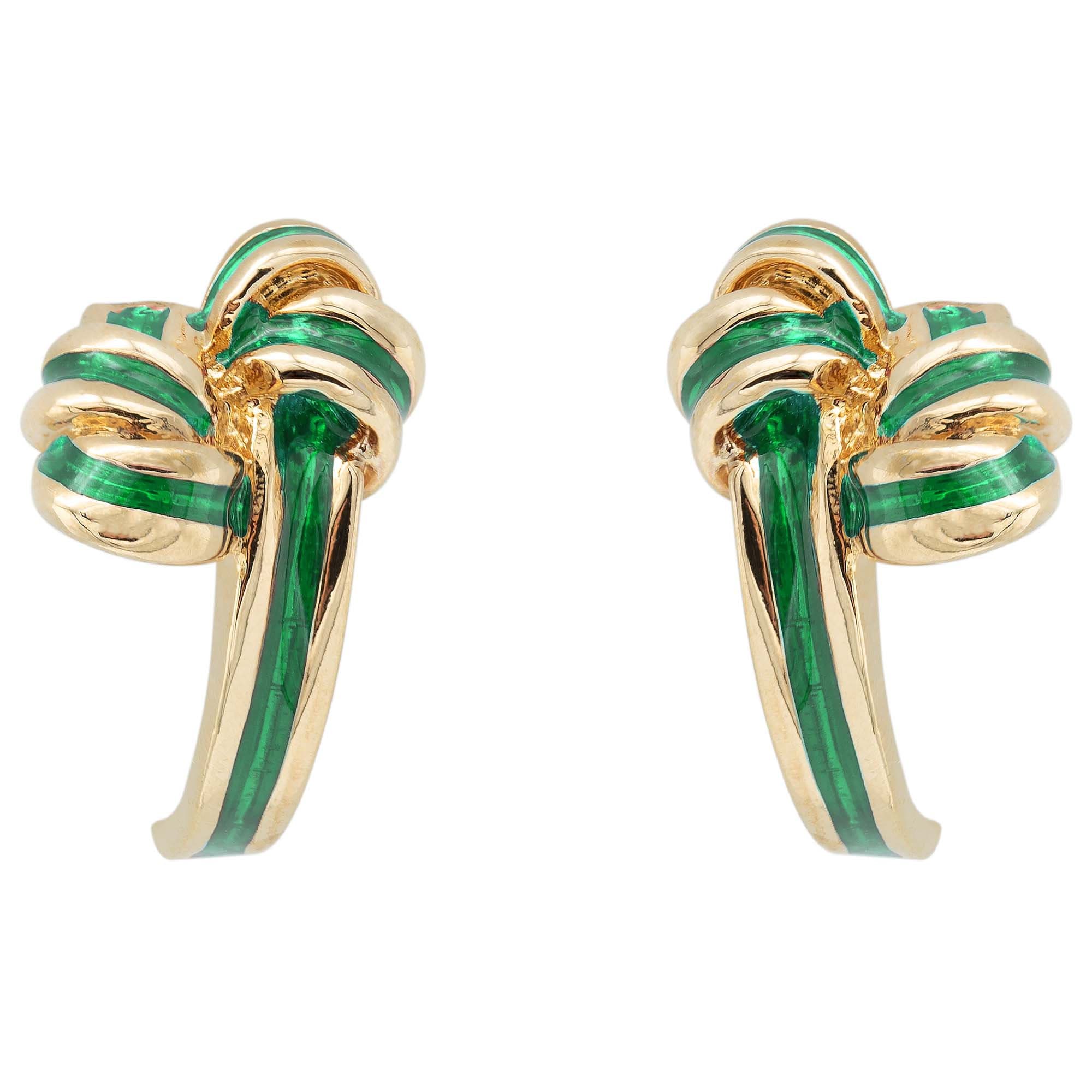 Vintage Mid Century Gold and Green Enamel Post Earrings Handmade Womans Earrings E4186-G - Limited Stock - Never Worn Vintage Mid Century Enamel Bow Design Post Earrings Condition - Excellent - Never worn or previously owned Gold Tone Post Earrings Gorgeous and excellent quality earrings! Measurements: Measure 1 Inch Long
