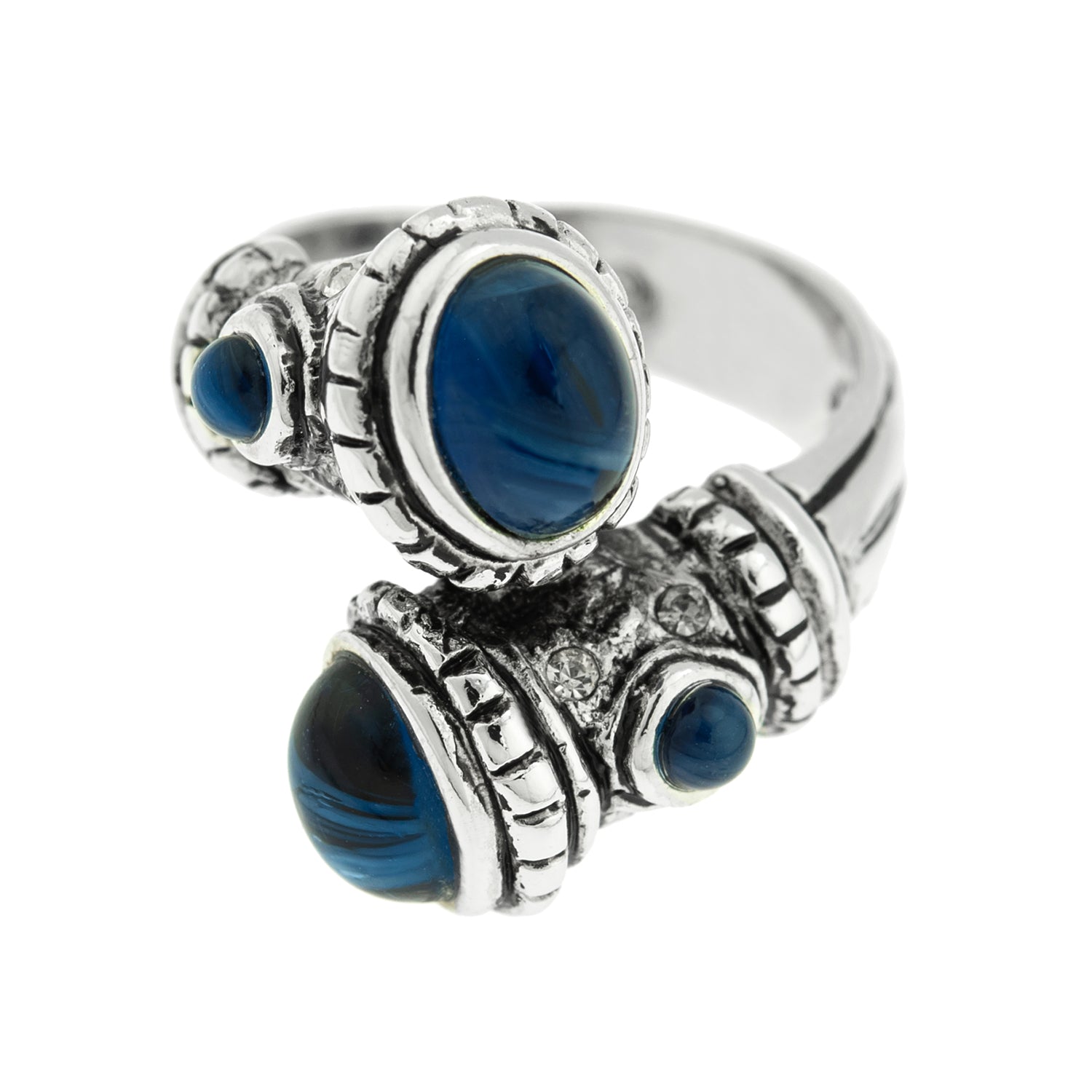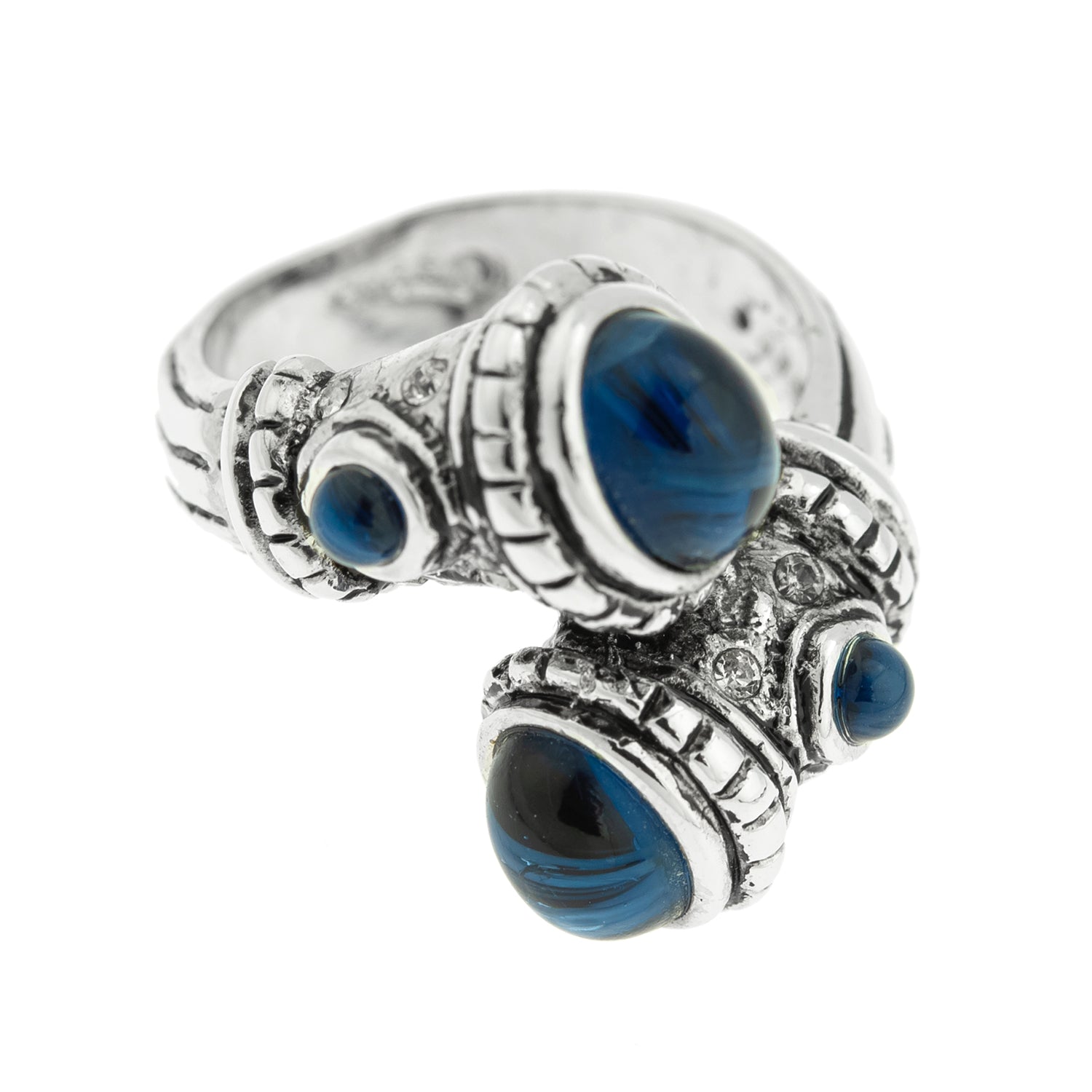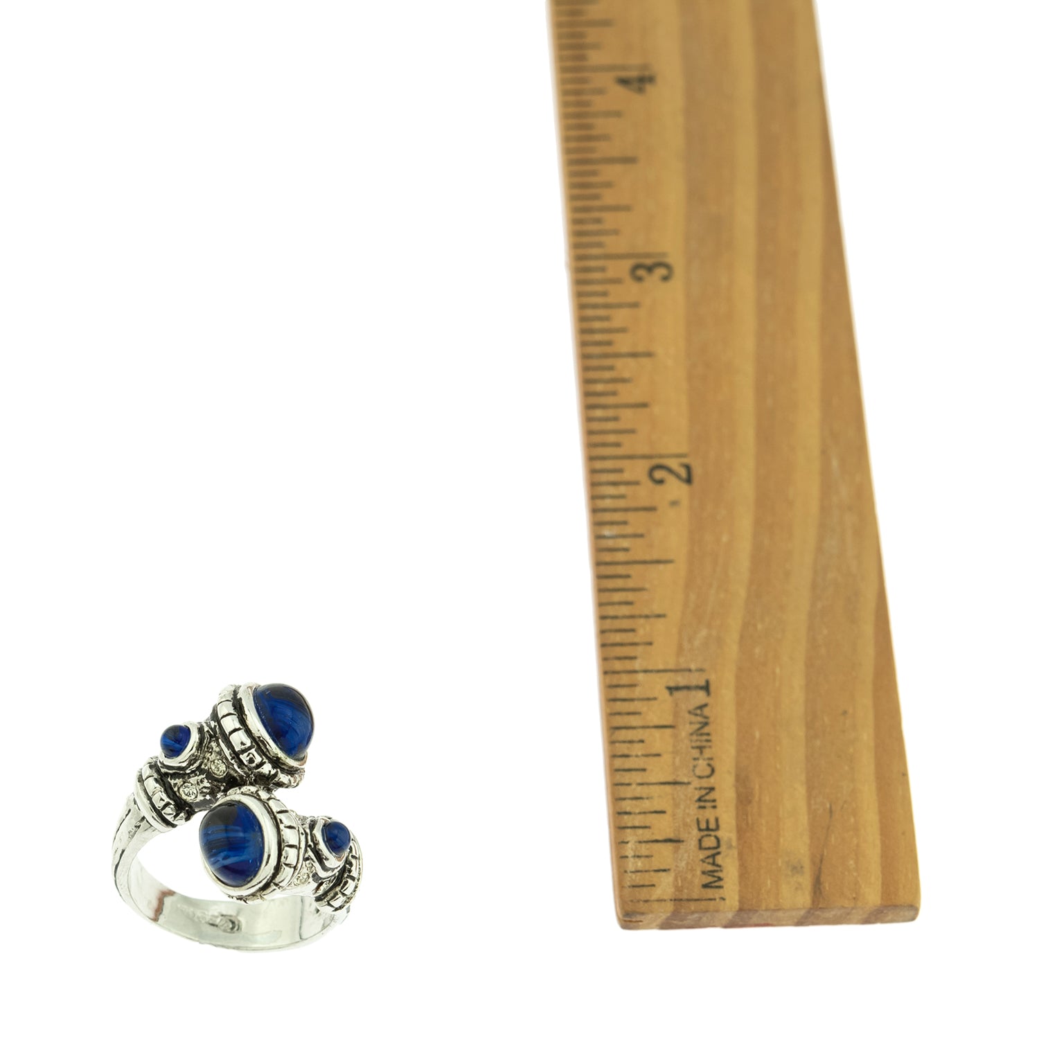 Vintage Ring 1990's Montana Sapphire Glass Cabochon Stones 18k White Gold Silver Plated #R3438 Size: 9
