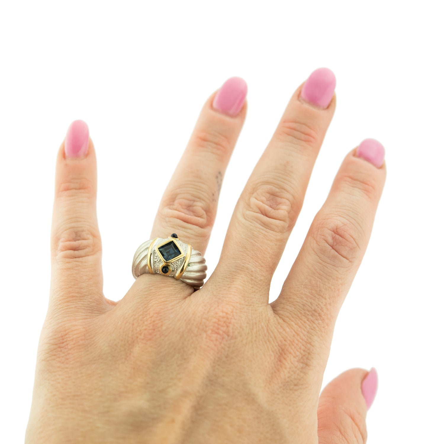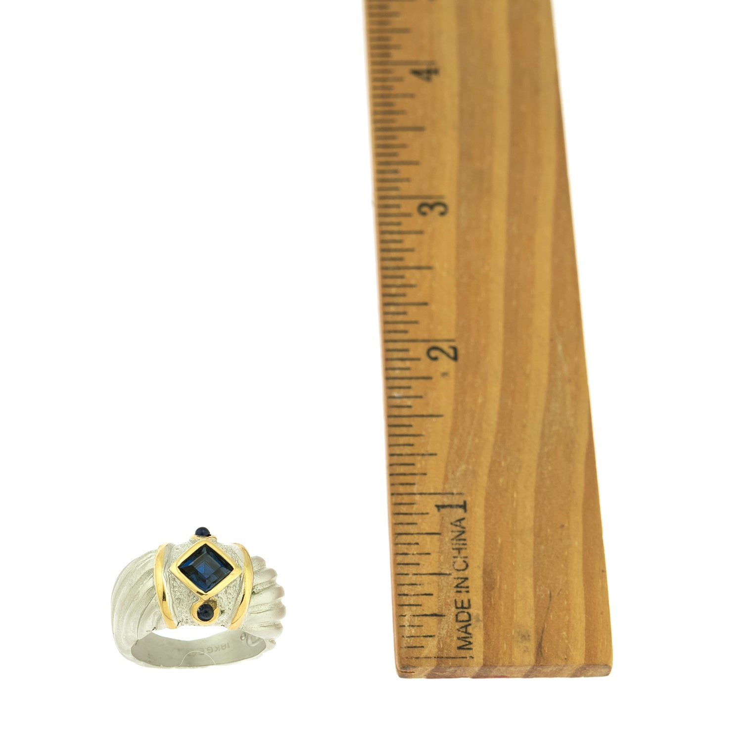 Vintage Ring 1970s Sapphire Austrian Crystal Ring 18k Brushed White Gold September Birthstone Antique #R3586 - Limited Stock - Never Worn Condition: Excellent (Never worn or owned) Vintage 1970s Ring Made in Providence, RI, USA Brushed White Gold 18k Electroplated Sapphire Austrian Crystal September Birthstone Color Stamped - 18k HGE