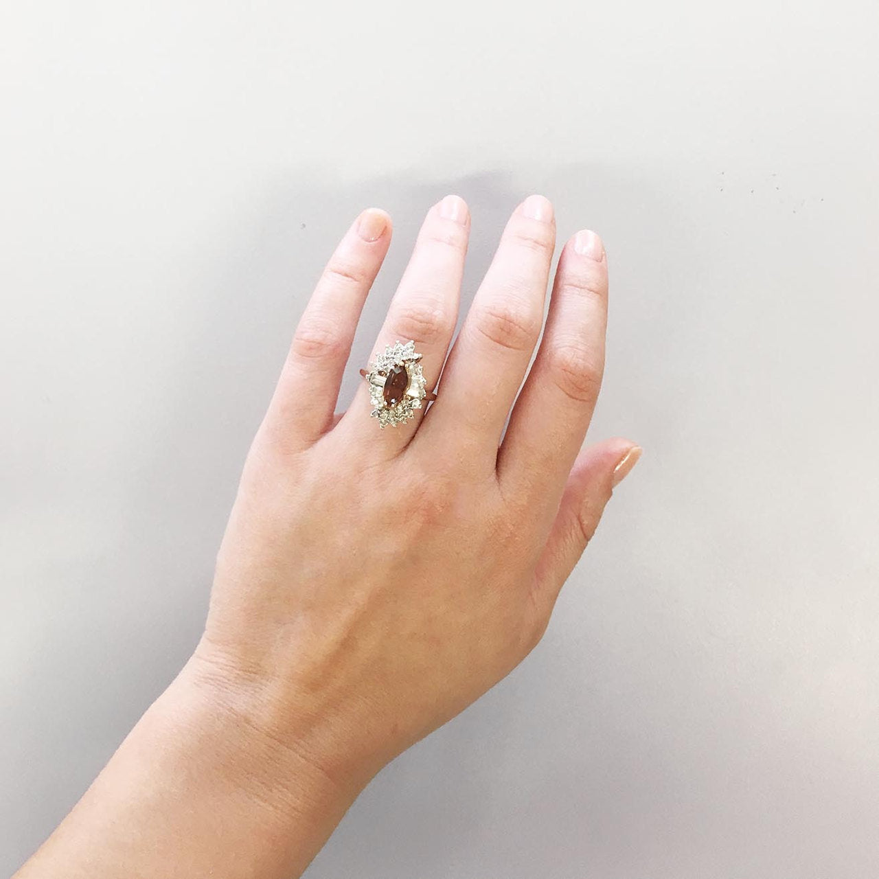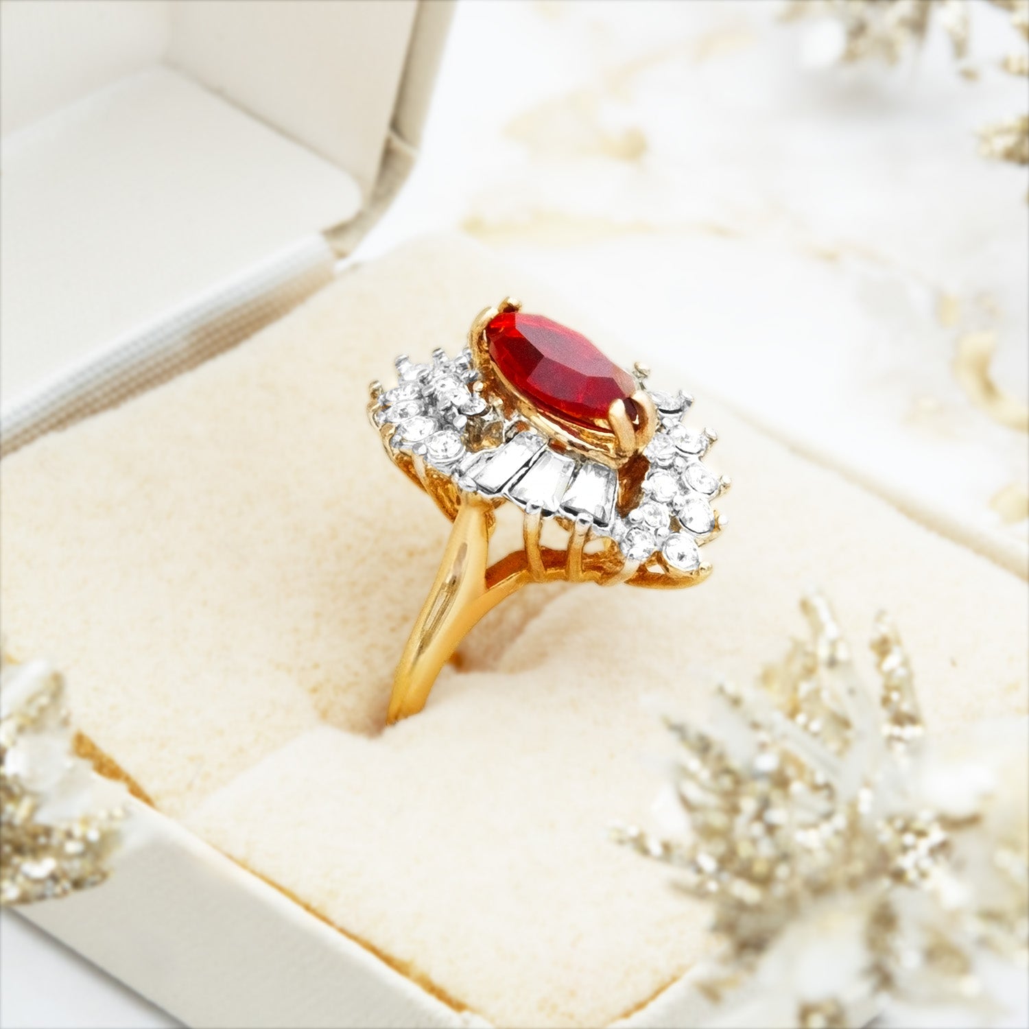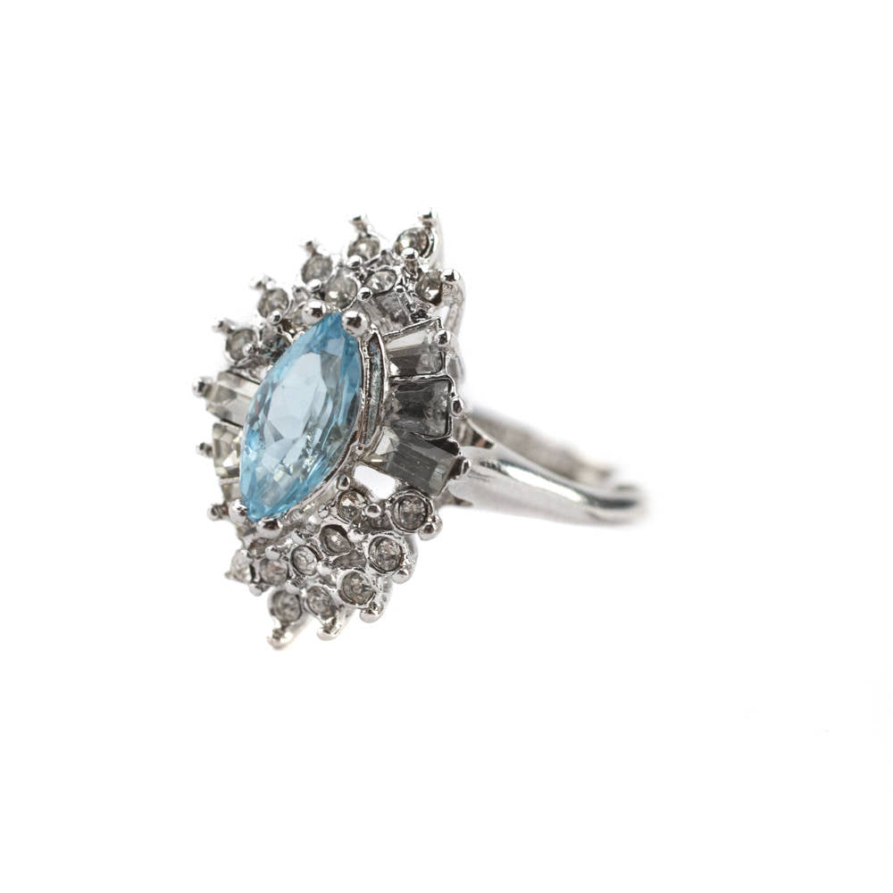 • Vintage 1970's Austrian Crystals 18k White Gold Electroplated Ring Made in USA