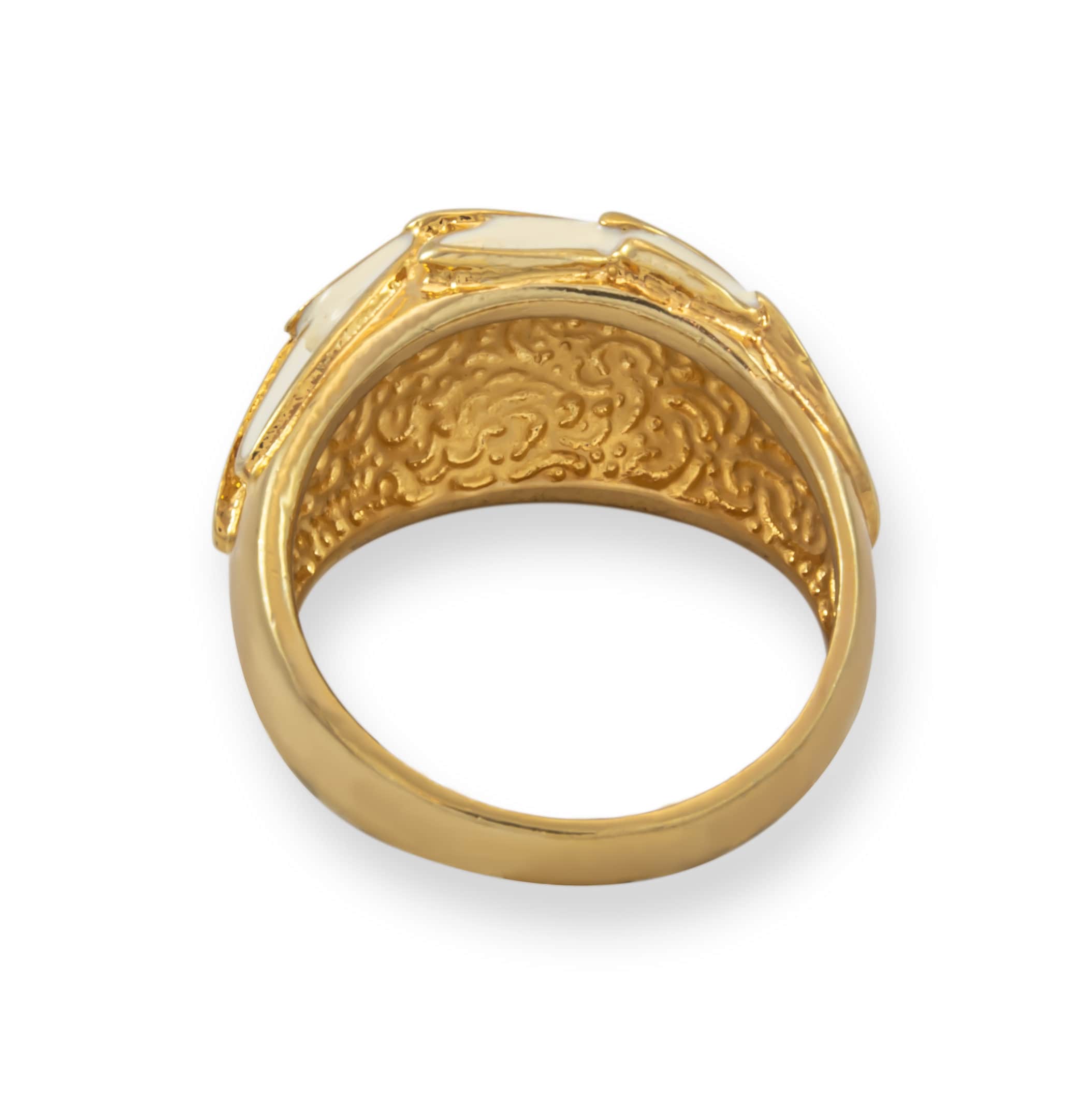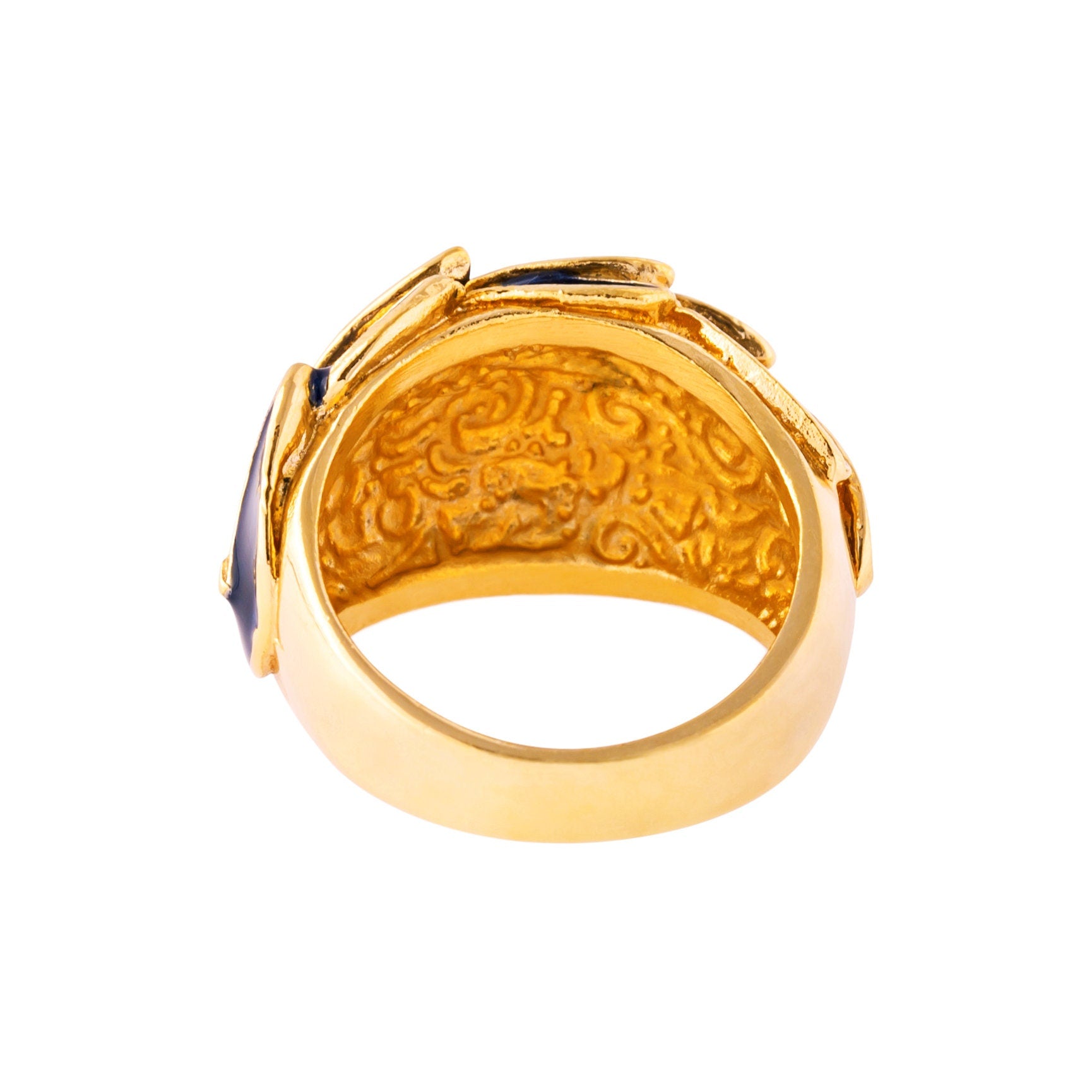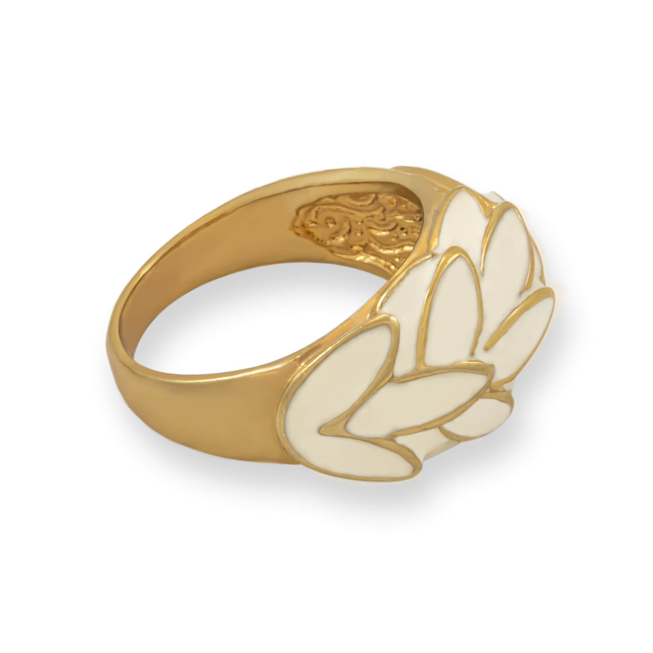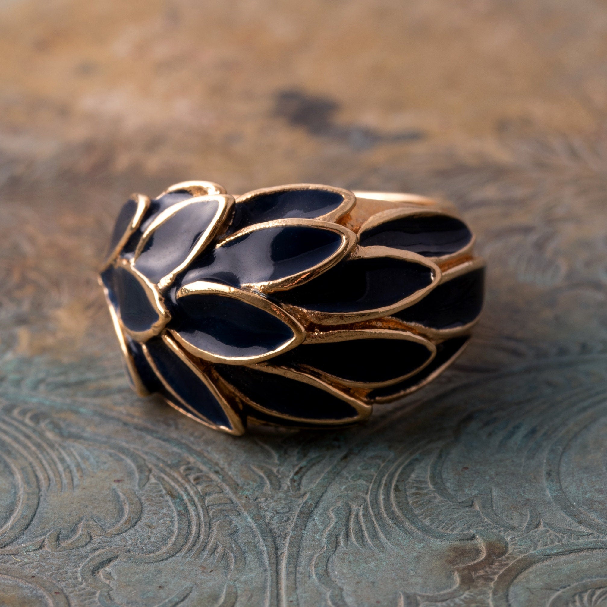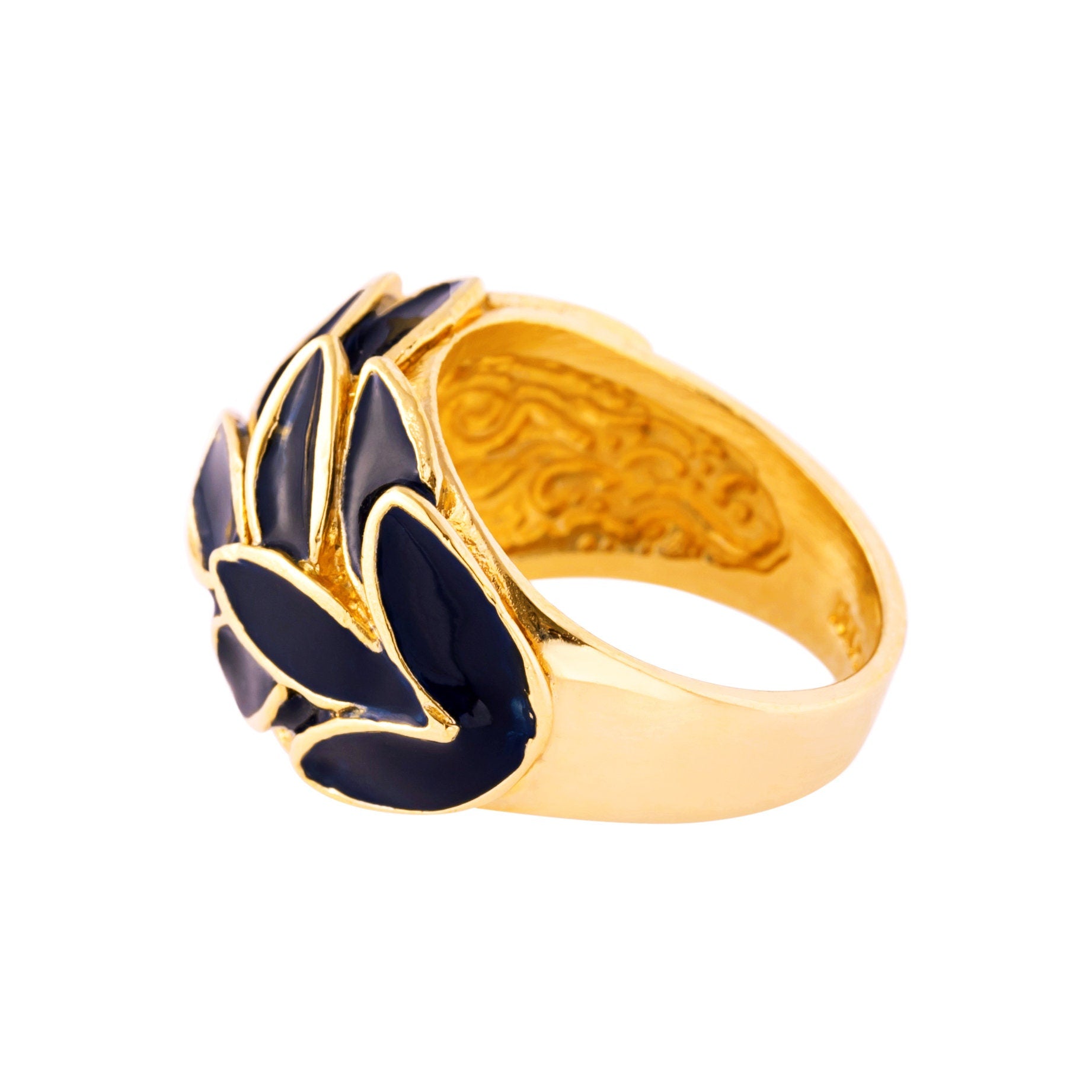 Vintage Ring 1970s Enamel Leaf Motif 18k Gold Ring #R1933