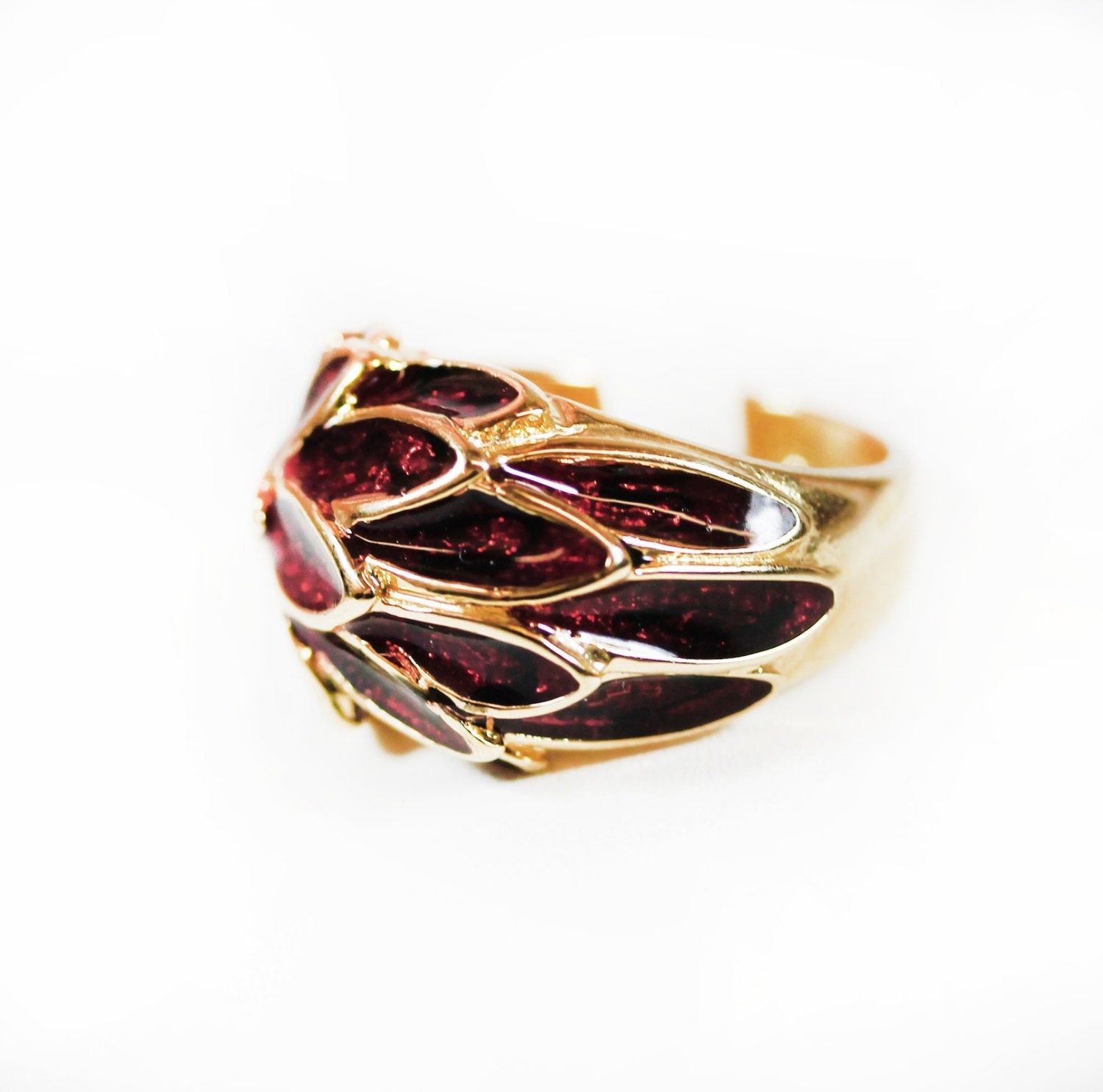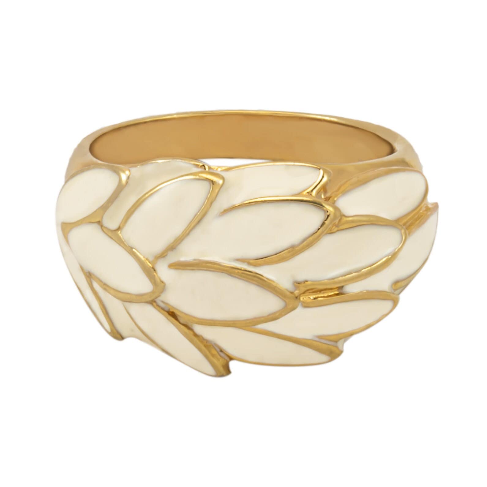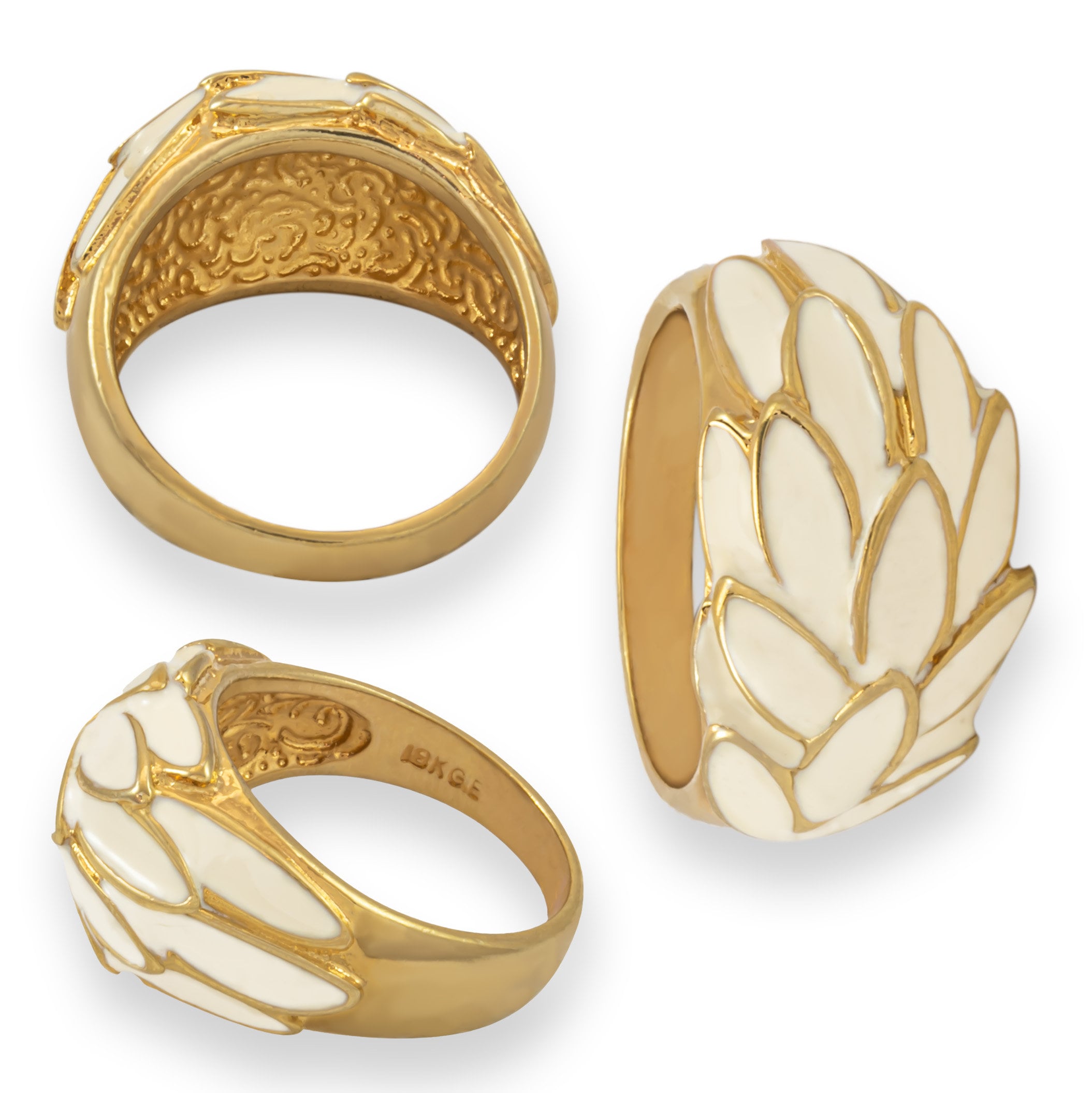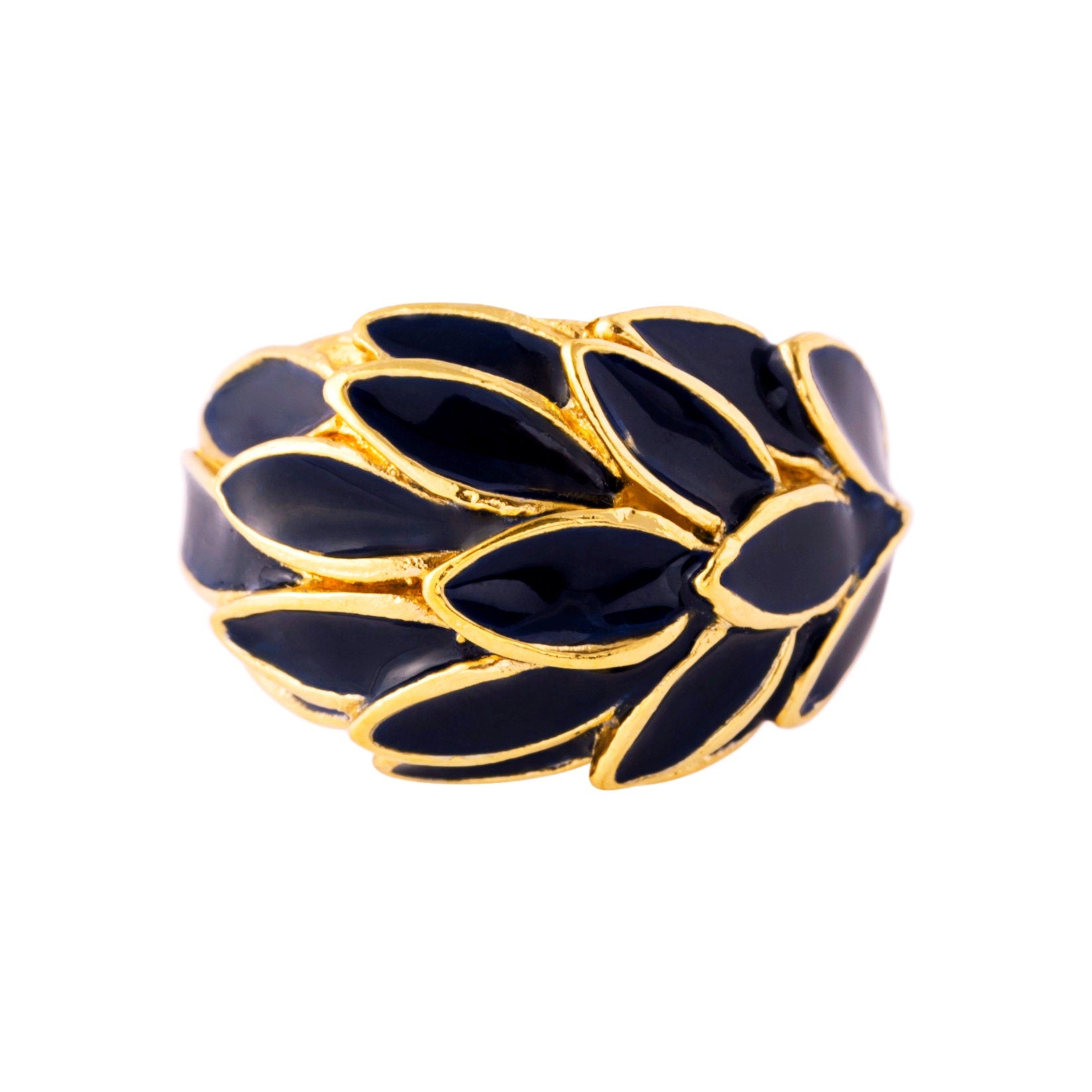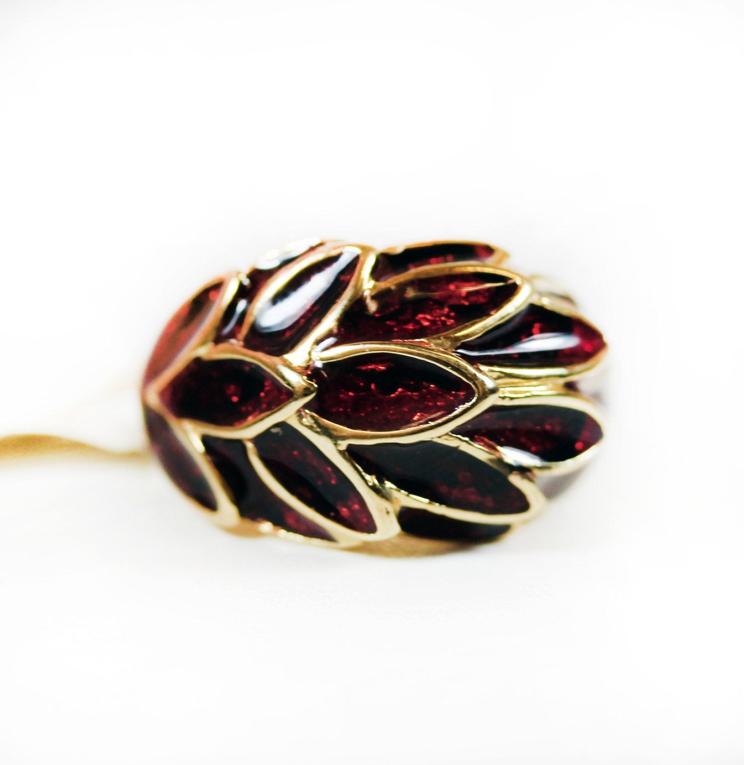 Vintage Ring 1970s Enamel Leaf Motif 18k Gold Electroplated Ring #R1933 Condition: Excellent (Never worn and with tags) Vintage 1970s Ring Made in Providence, RI, USA 18k Gold Electroplated Hand Painted Enamel Leaf Motif Stamped - 18k HGE