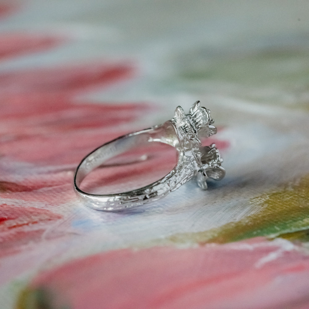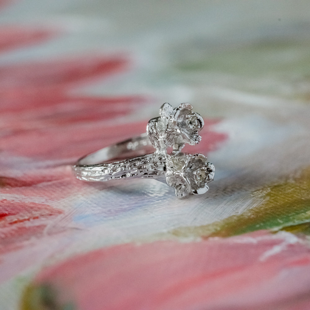 Vintage Ring 1970's Double Rose Ring Swaroski Crystals 18k White Gold Silver R276 Size: 8