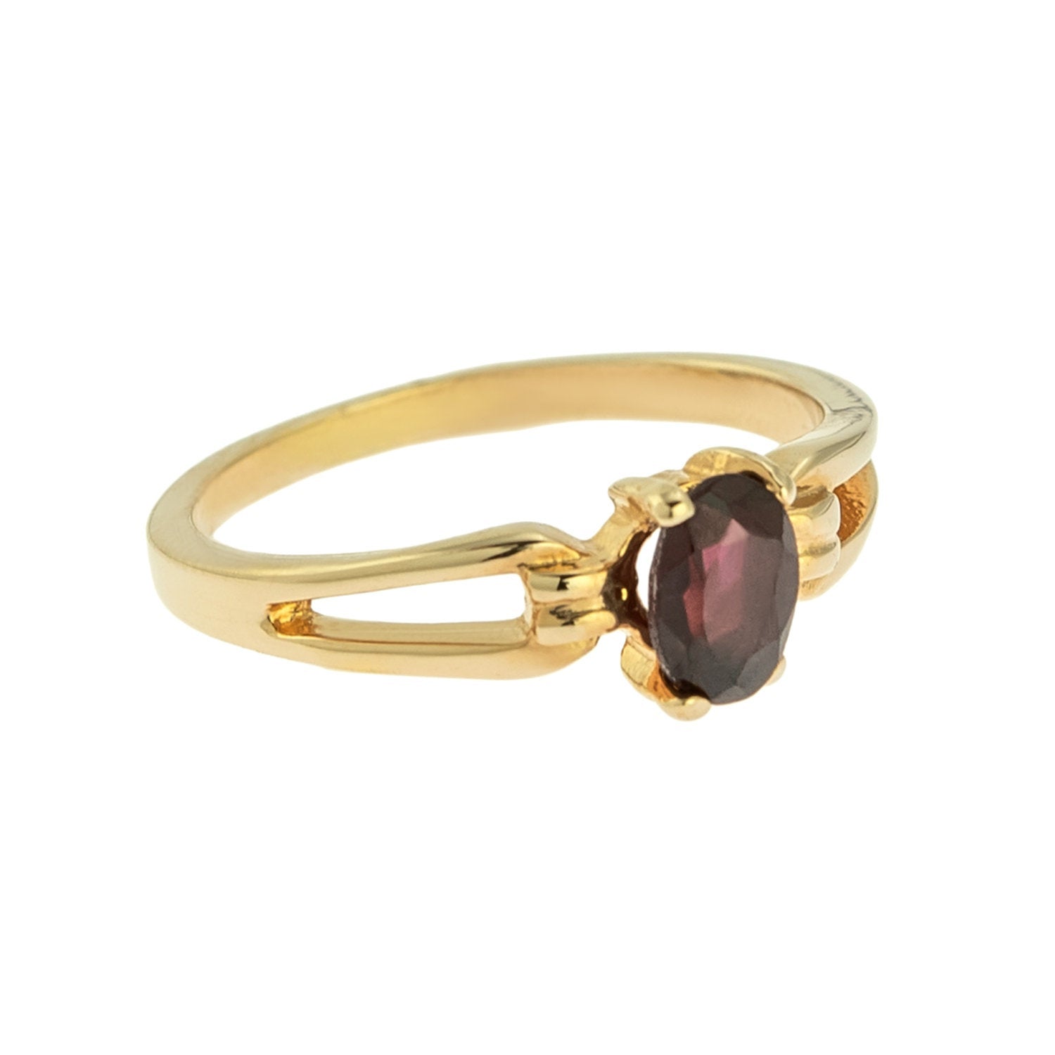 Vintage 1970's Genuine Garnet 18k Yellow Gold Electroplated Birthstone Ring Made in USA Size: 4
