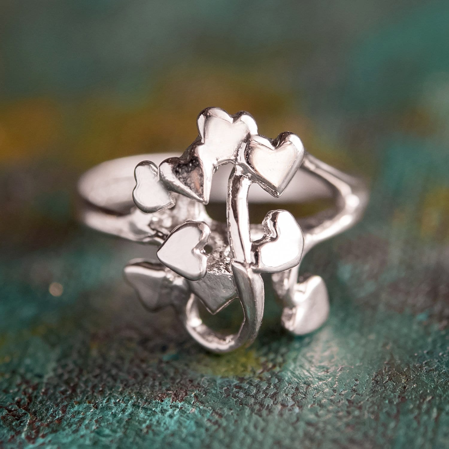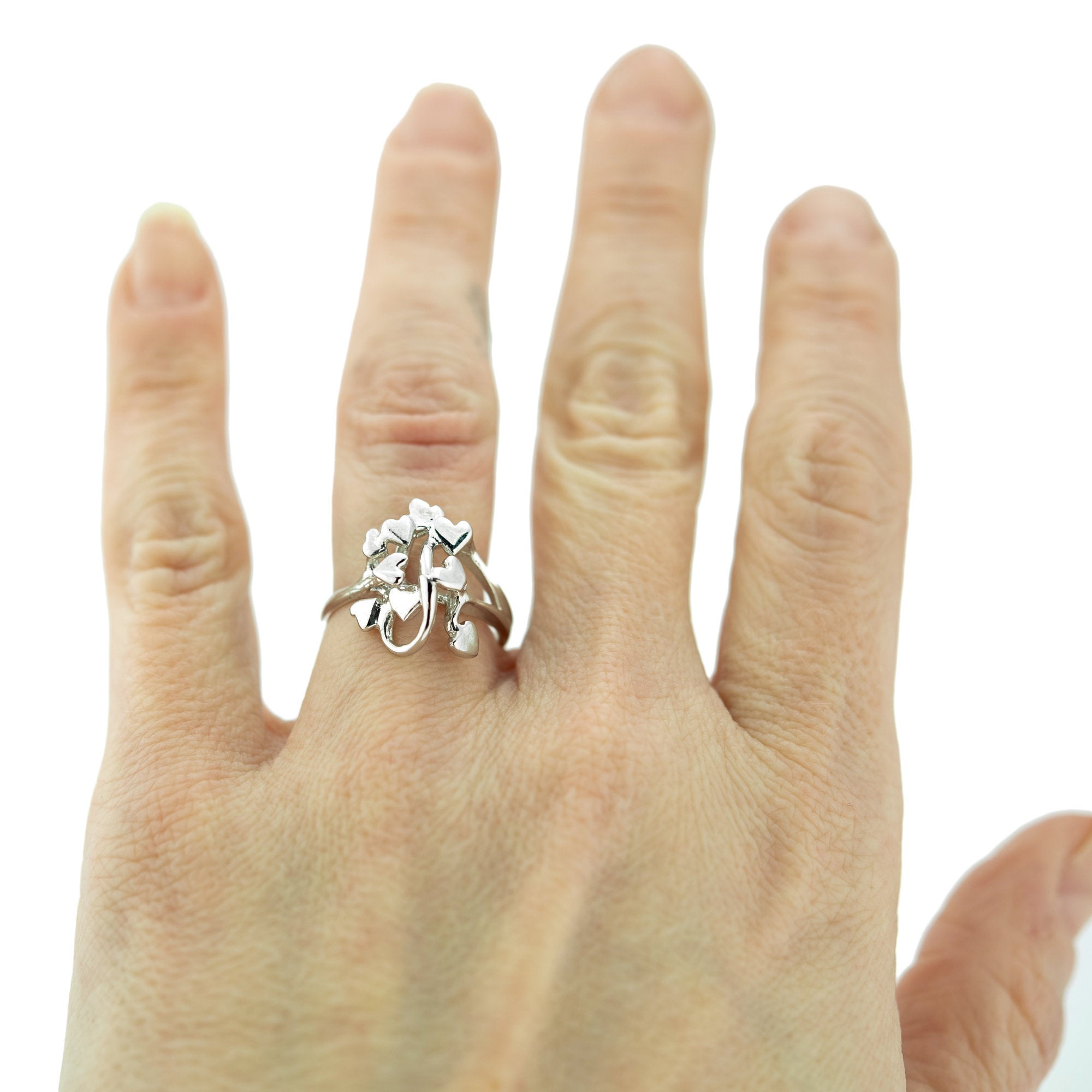 Heart Cluster Ring 18k White Gold Electroplated Made in Providence, RI, USA Stamped - 18k HGE