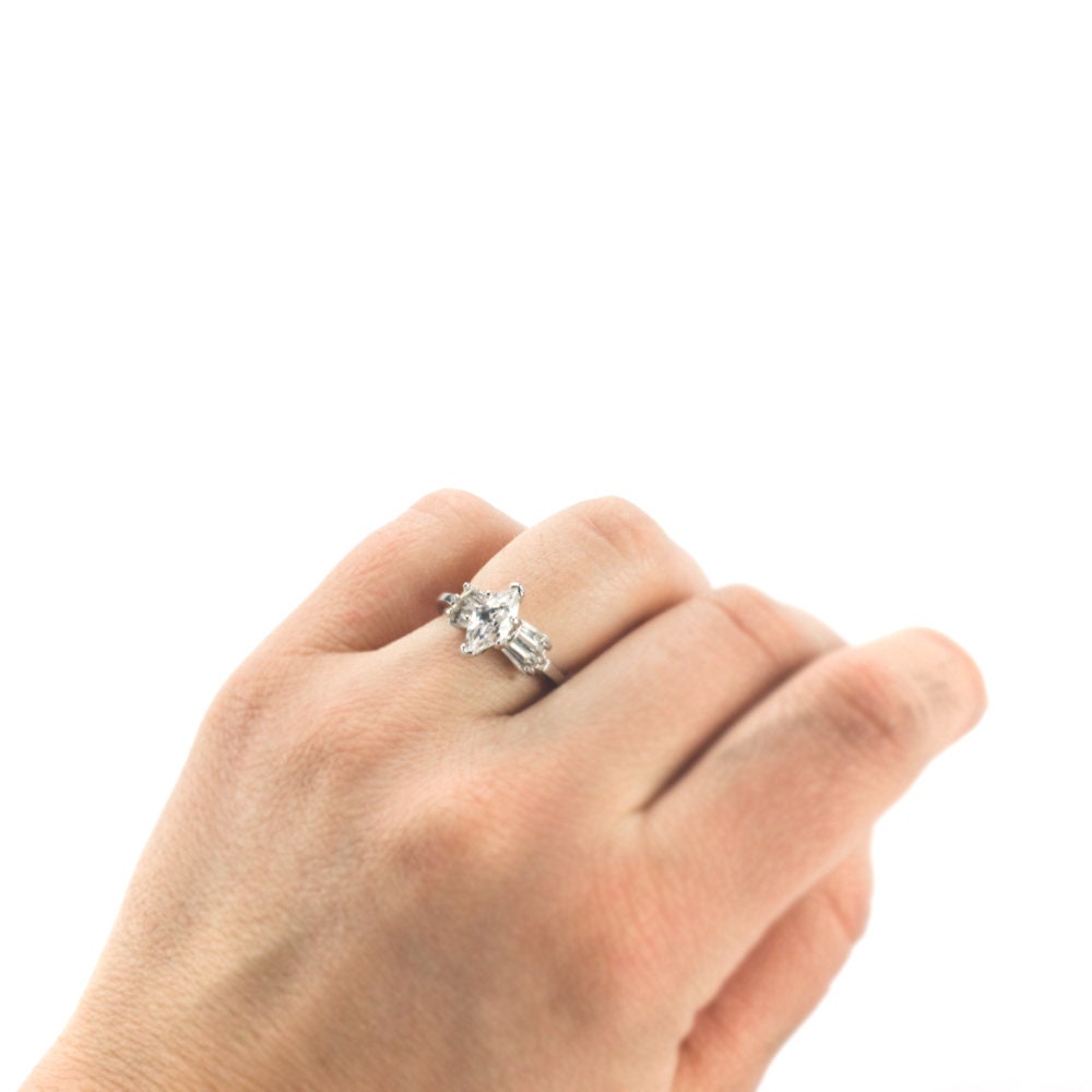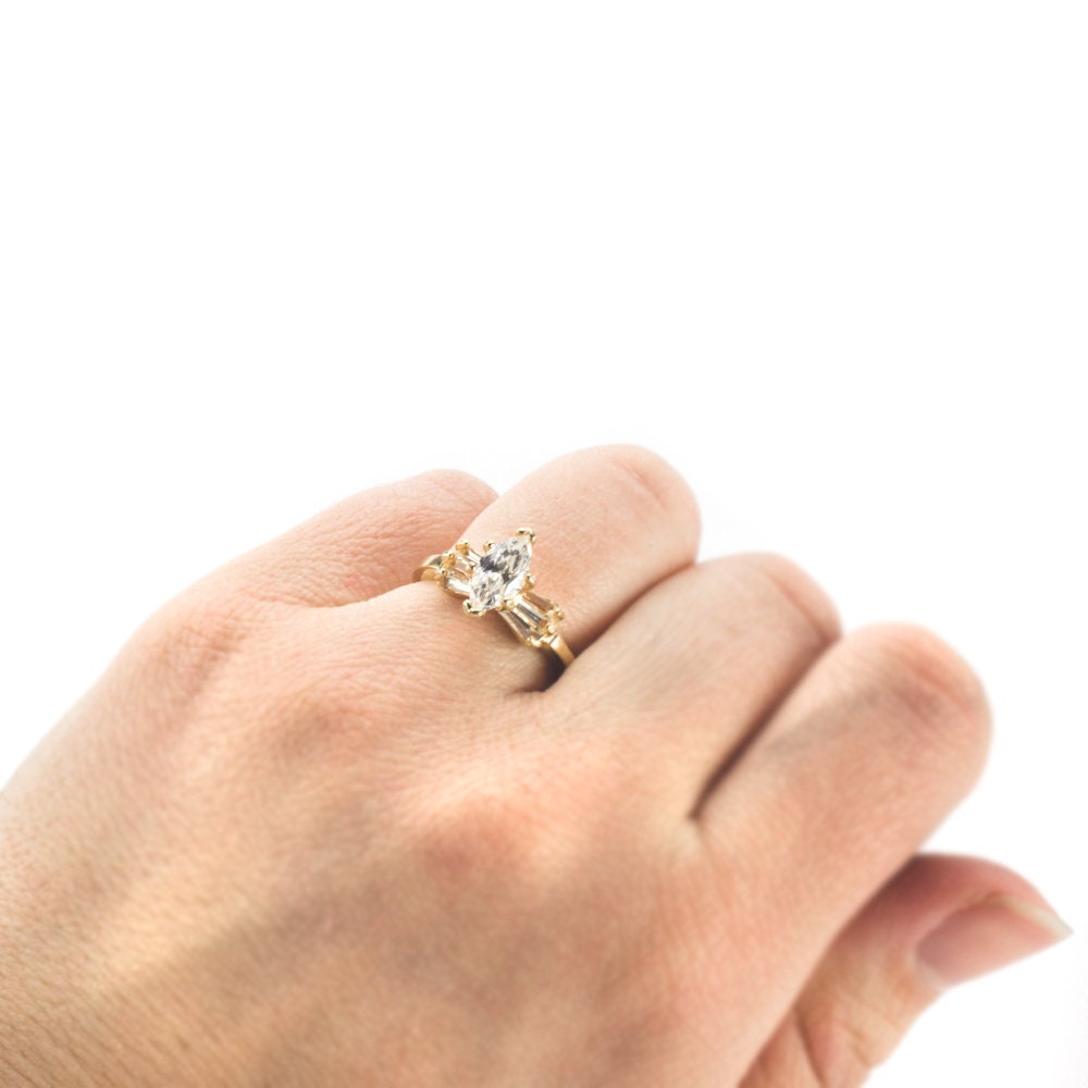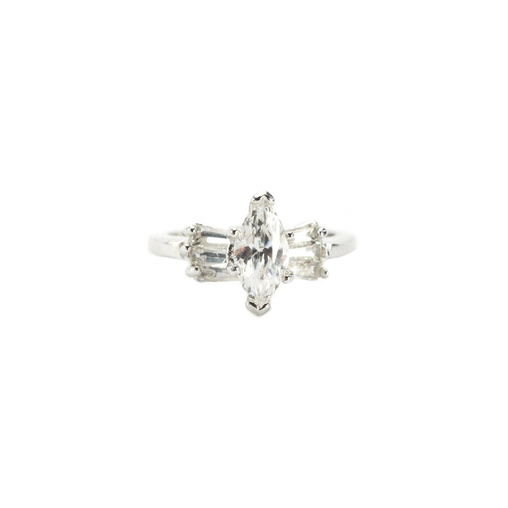 Vintage Ring 1980s 18k Gold Plated Marquis Shaped Cubic Zirconia Engagement Ring Womans Antique #R3078