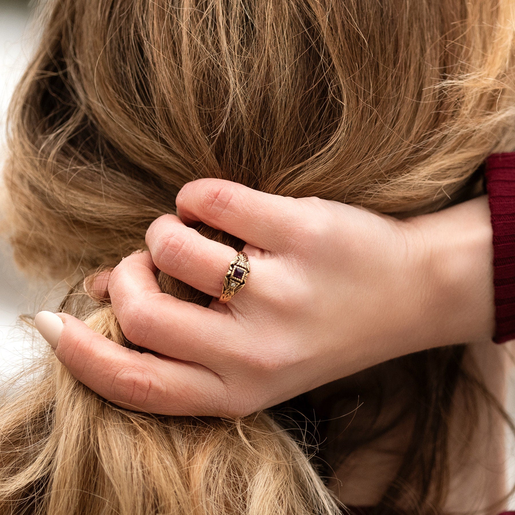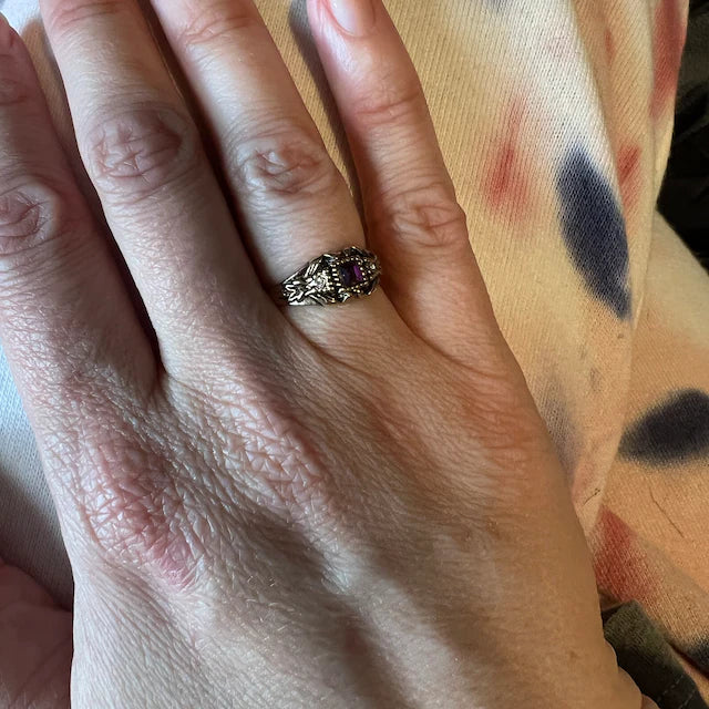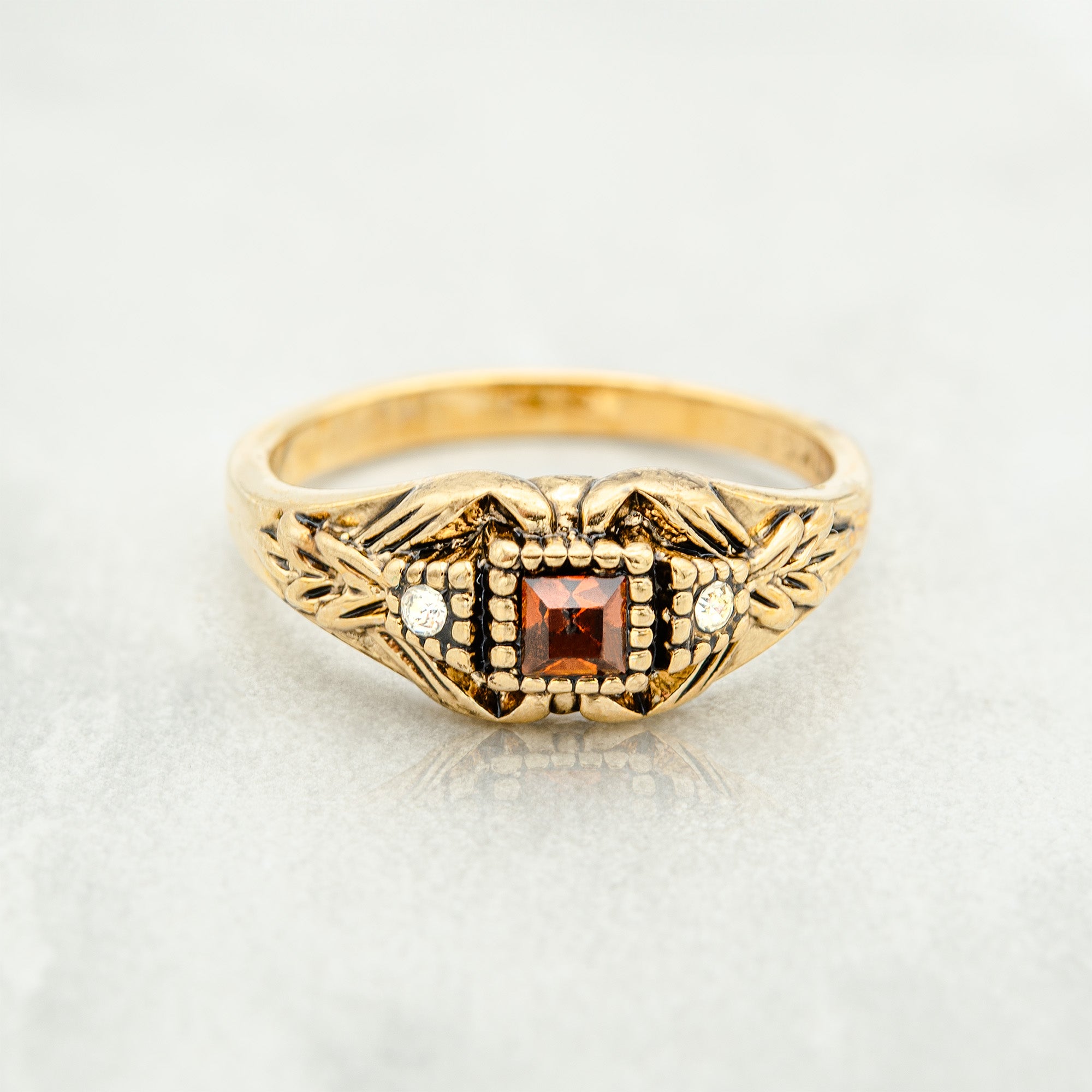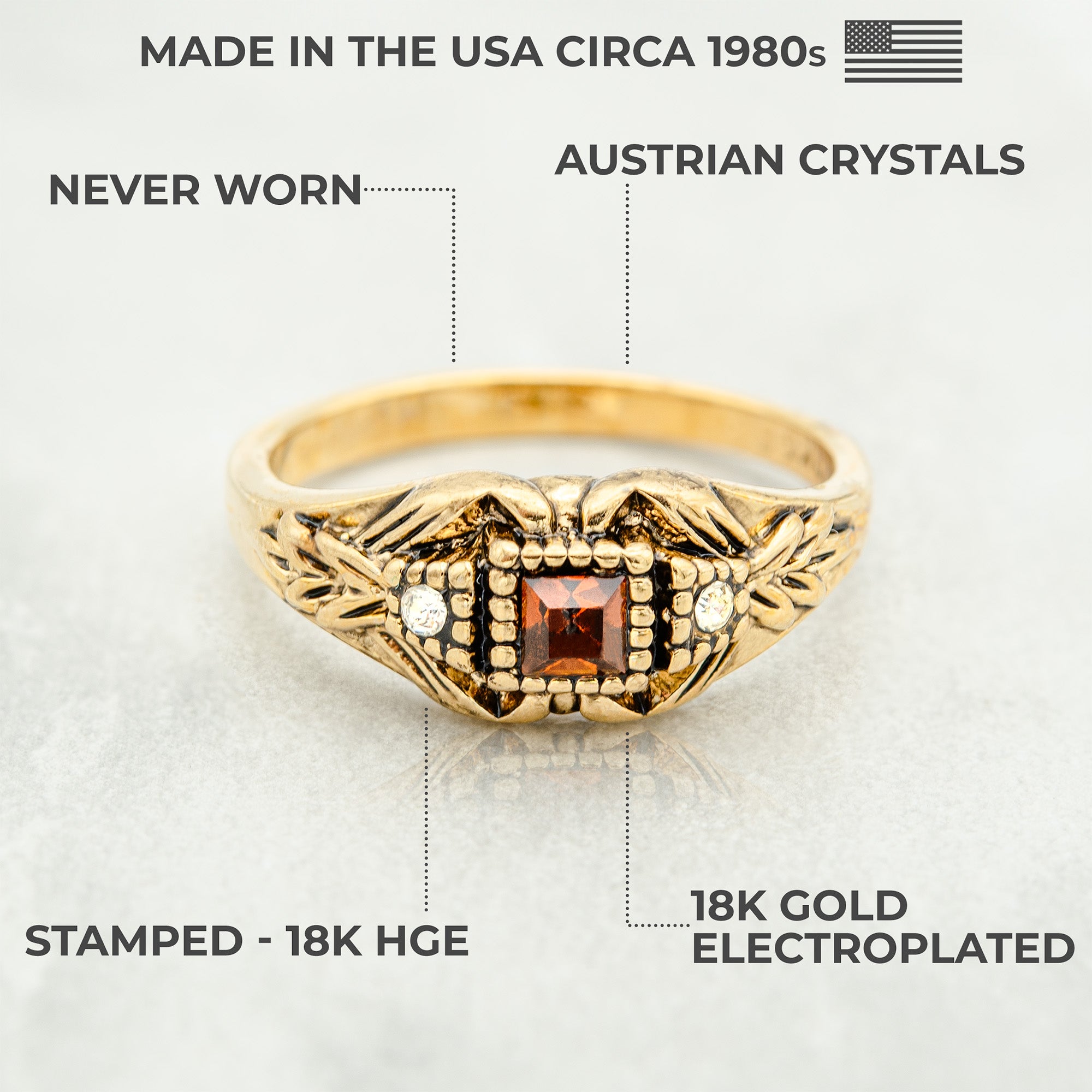 Vintage 1980's Ring Austrian Crystal 18k Antique YellwoWhite Gold Electroplated Made in the USA
