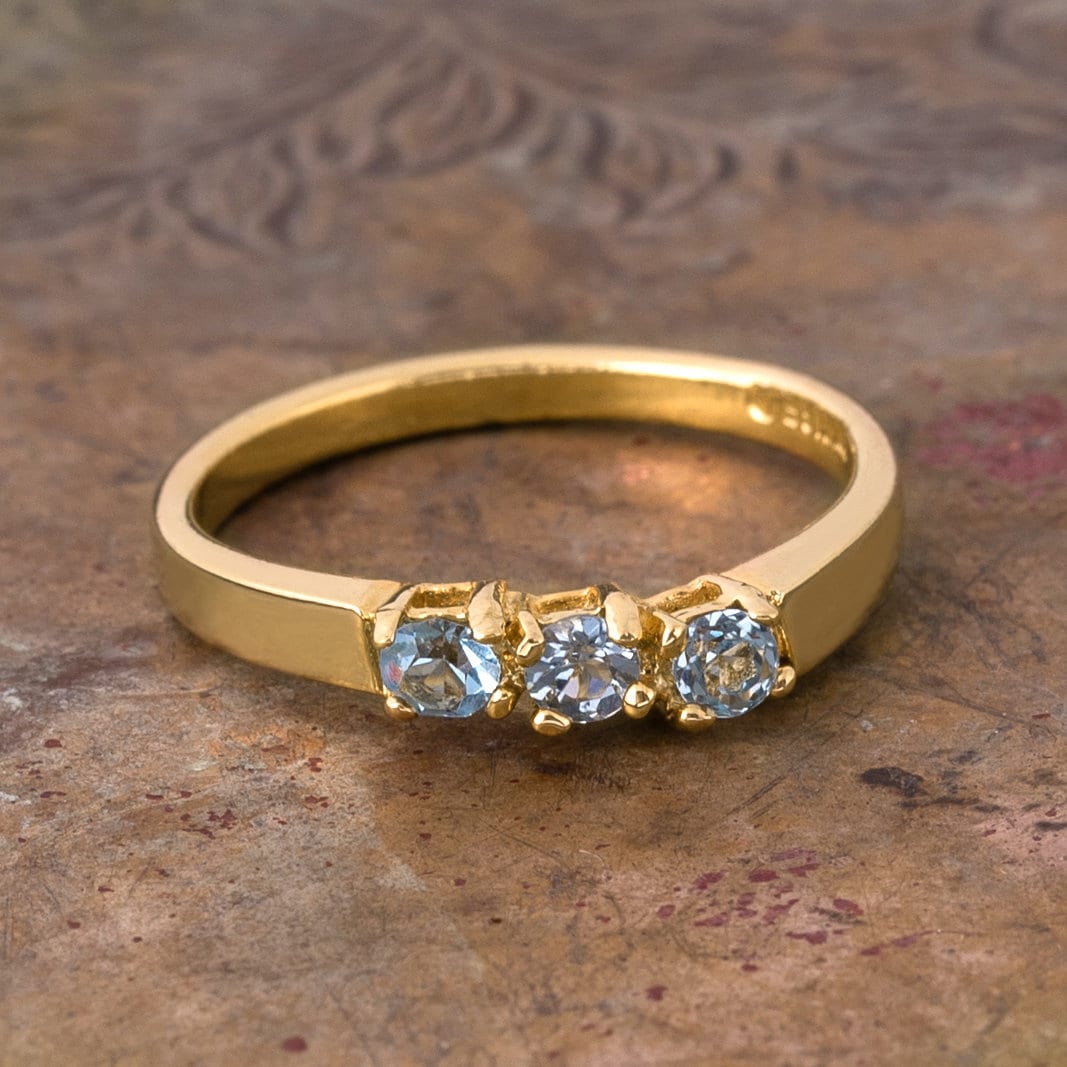 Vintage Ring Aquamarine Swarovski Crystal Ring 18k Gold Filigree Antique Womans Handmade Jewelry #R942 - Limited Stock - Never Worn Condition is Excellent - Never worn or owned Ring Made approx. 1970s Made in Providence, Rhode Island, USA Round Cut Aquamarine Austrian Crystals 18k Gold Electroplated Stamped - 18k HGE March's Birthstone Color