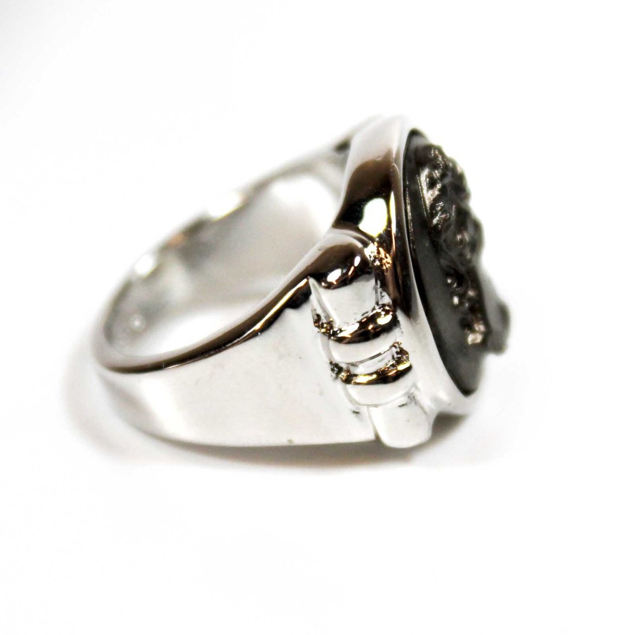 Condition: Excellent (Never worn or owned) Vintage Cameo Ring Made in Providence, RI, USA Rhodium Plated Black Oxidized Cameo Cameo Measures 15.8mm diameter Stamped - 18k HGE Gorgeous and unique handcrafted ring. View the rest of our Vintage Cameo Collection: