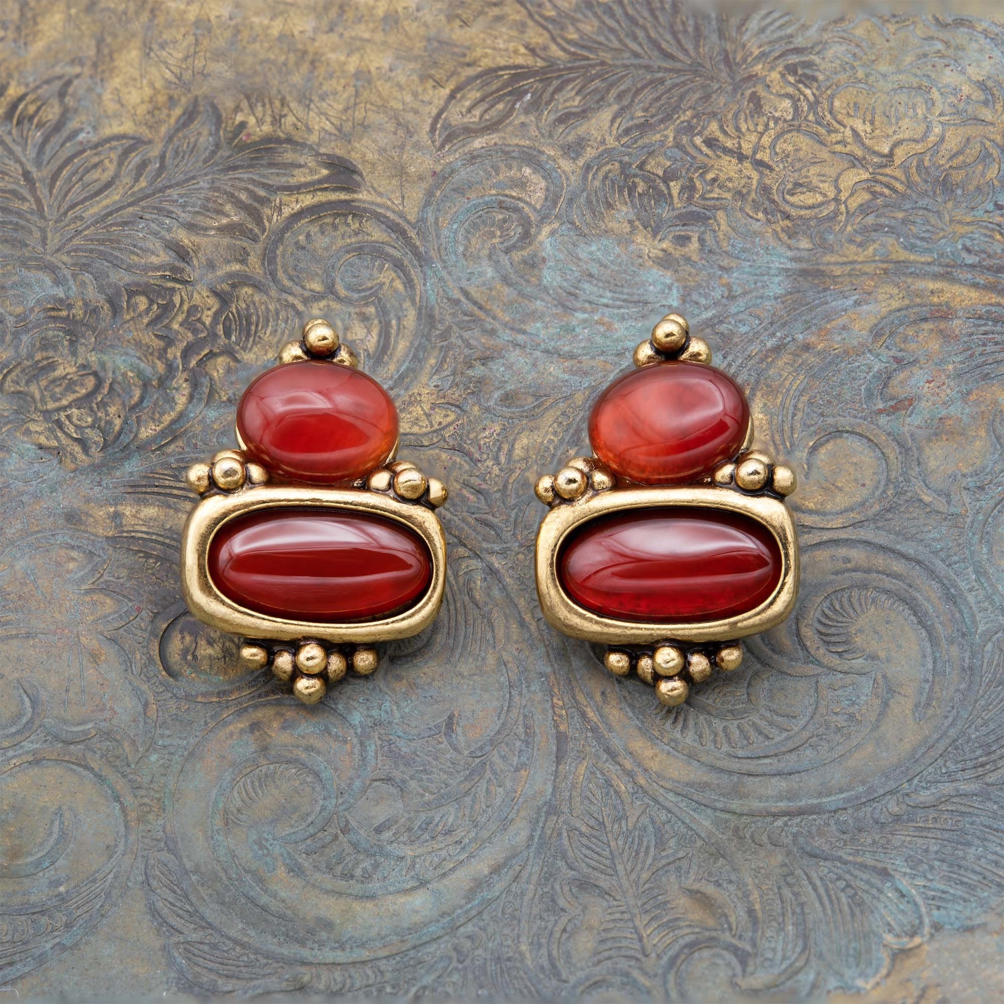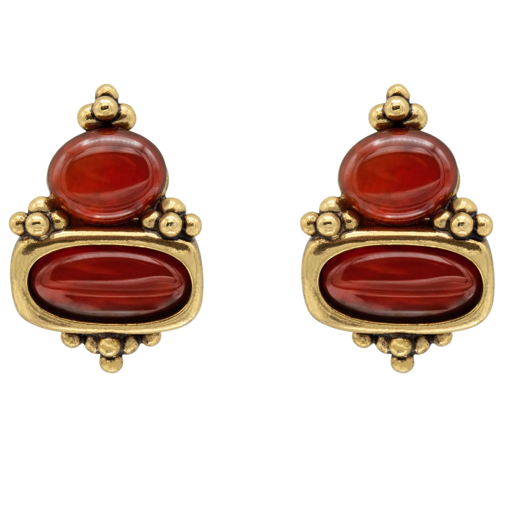 • Vintage Earrings Oscar de la Renta Clip Earrings Gold with Carnelian Stones OSE-134-C