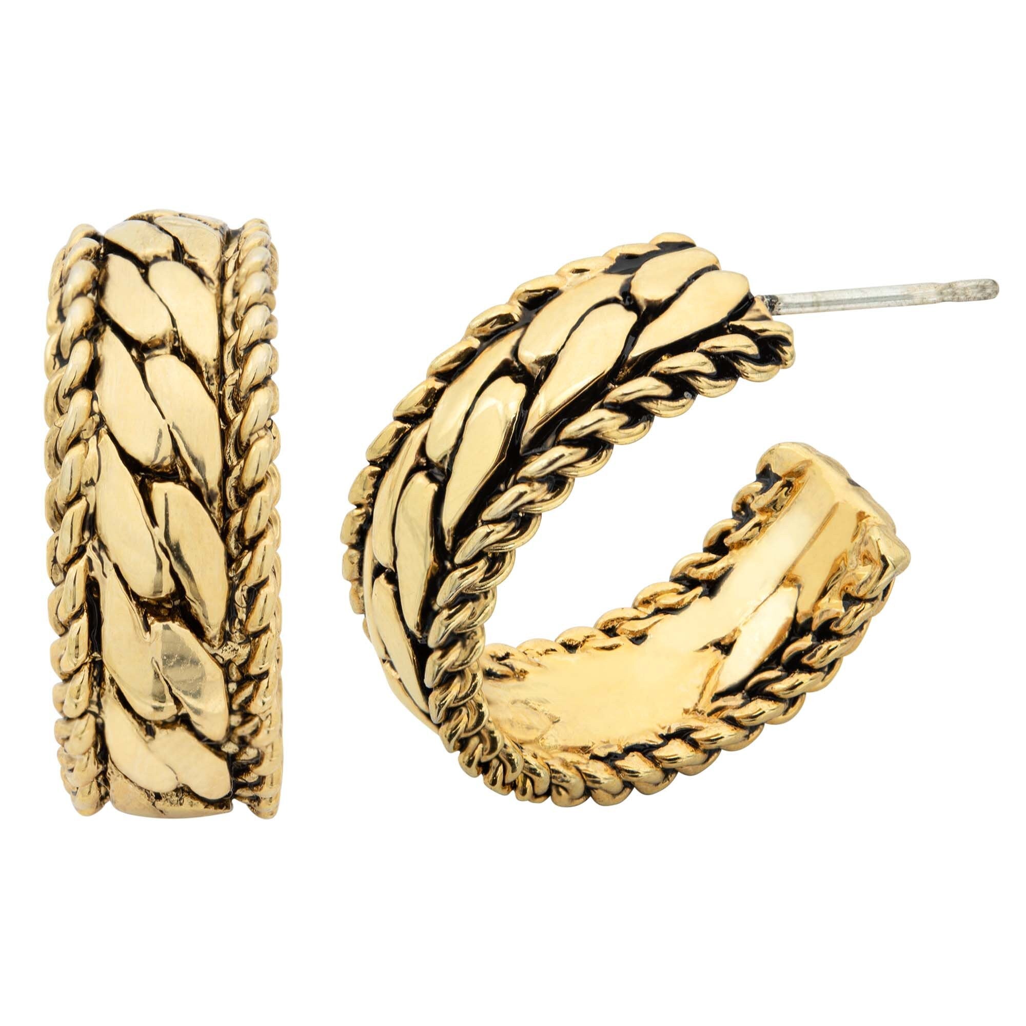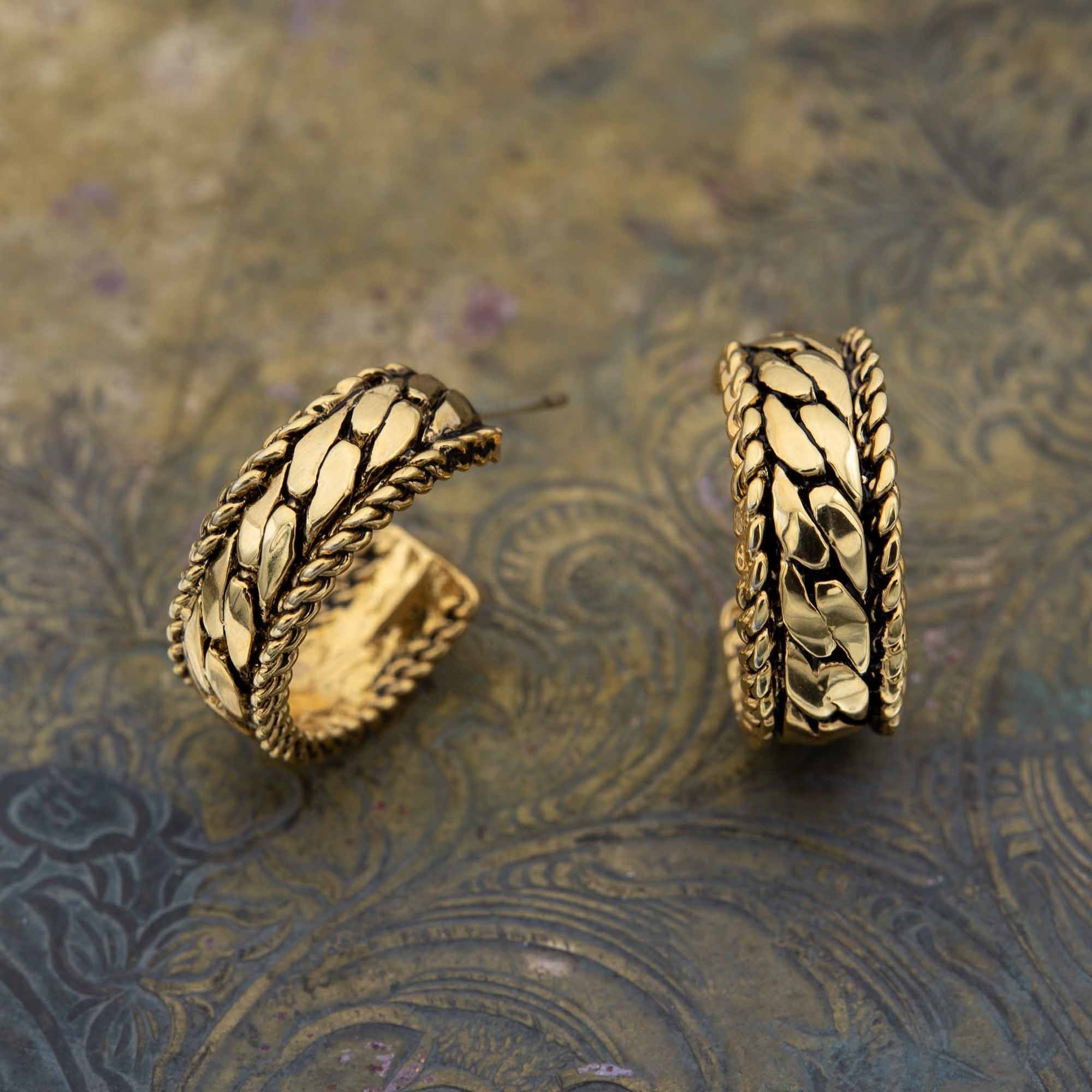 Vintage Earrings Signed Oscar De La Renta Thick Antiqued Gold Tone Hoops Earrings Rope Design #OSE-26033-C