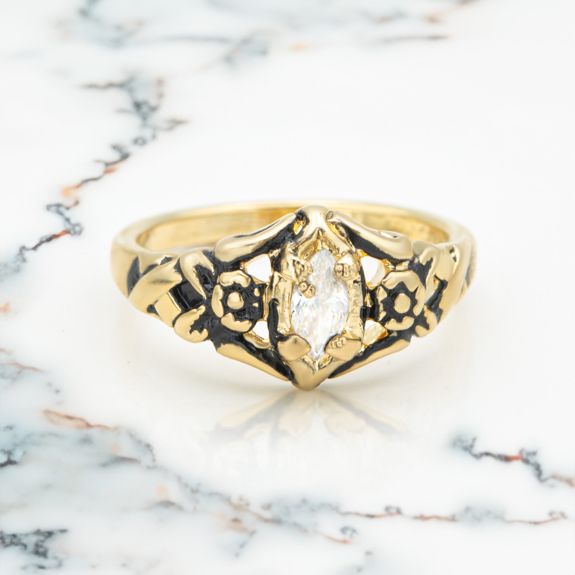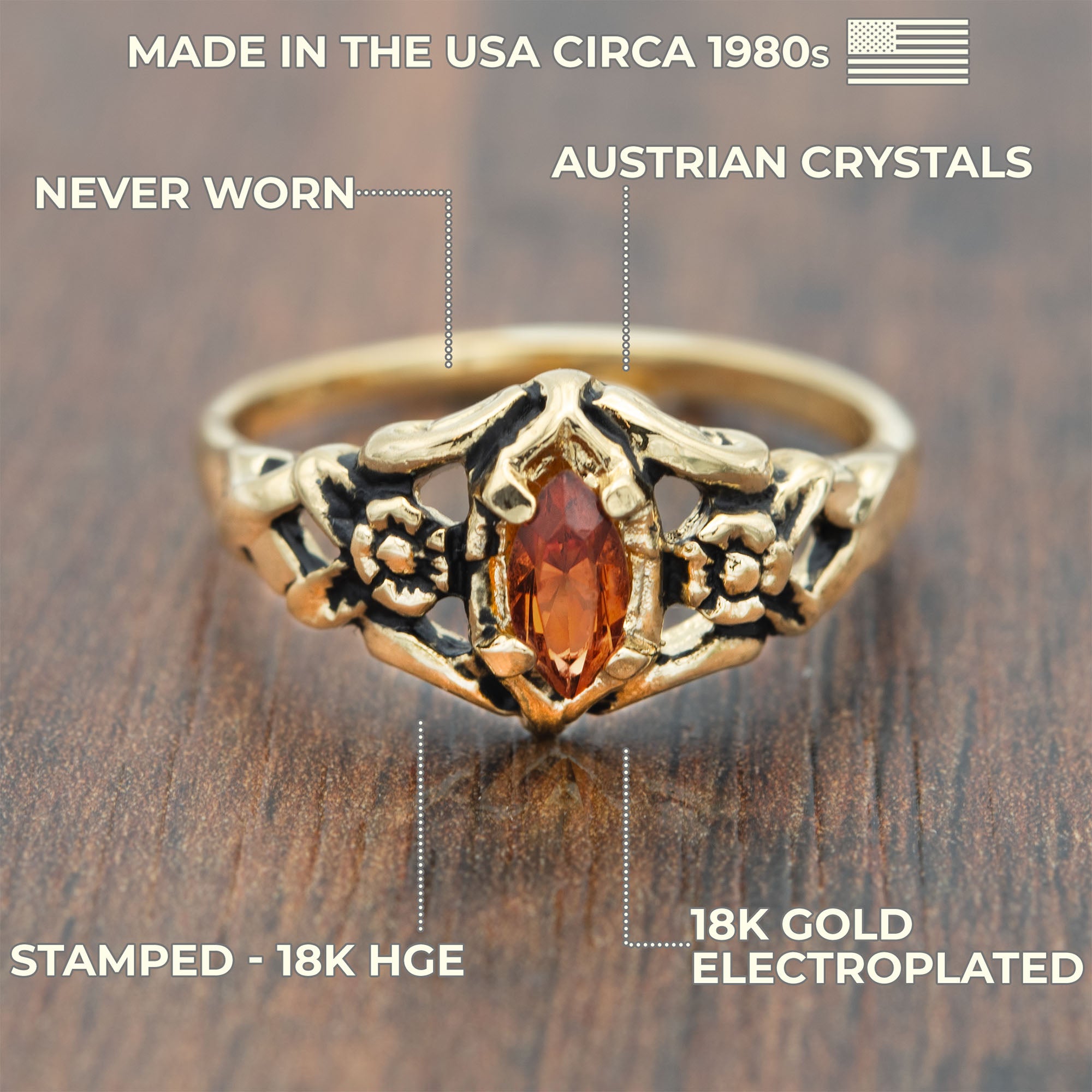 • Vintage Austrian Crystal or Cubic Zirconia Stone Ring 18k Gold Electroplated Made in the USA