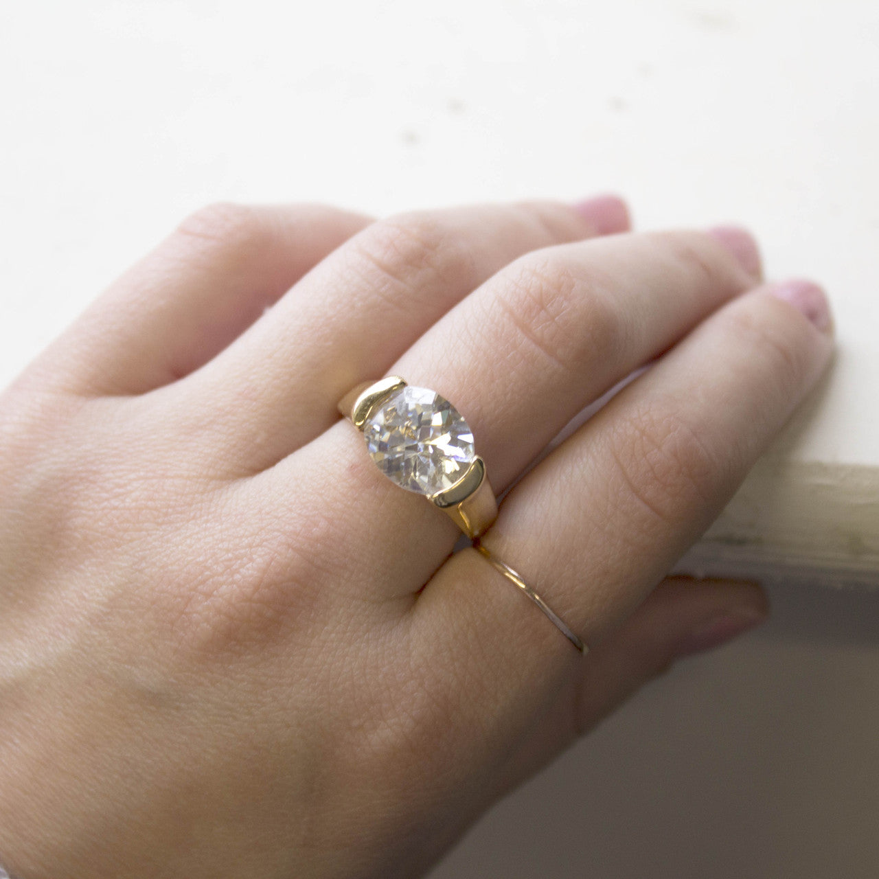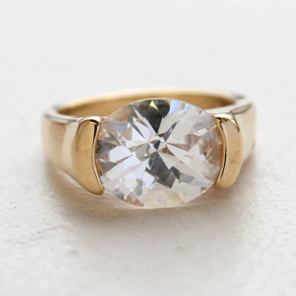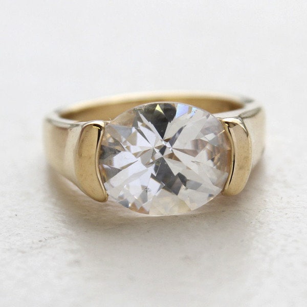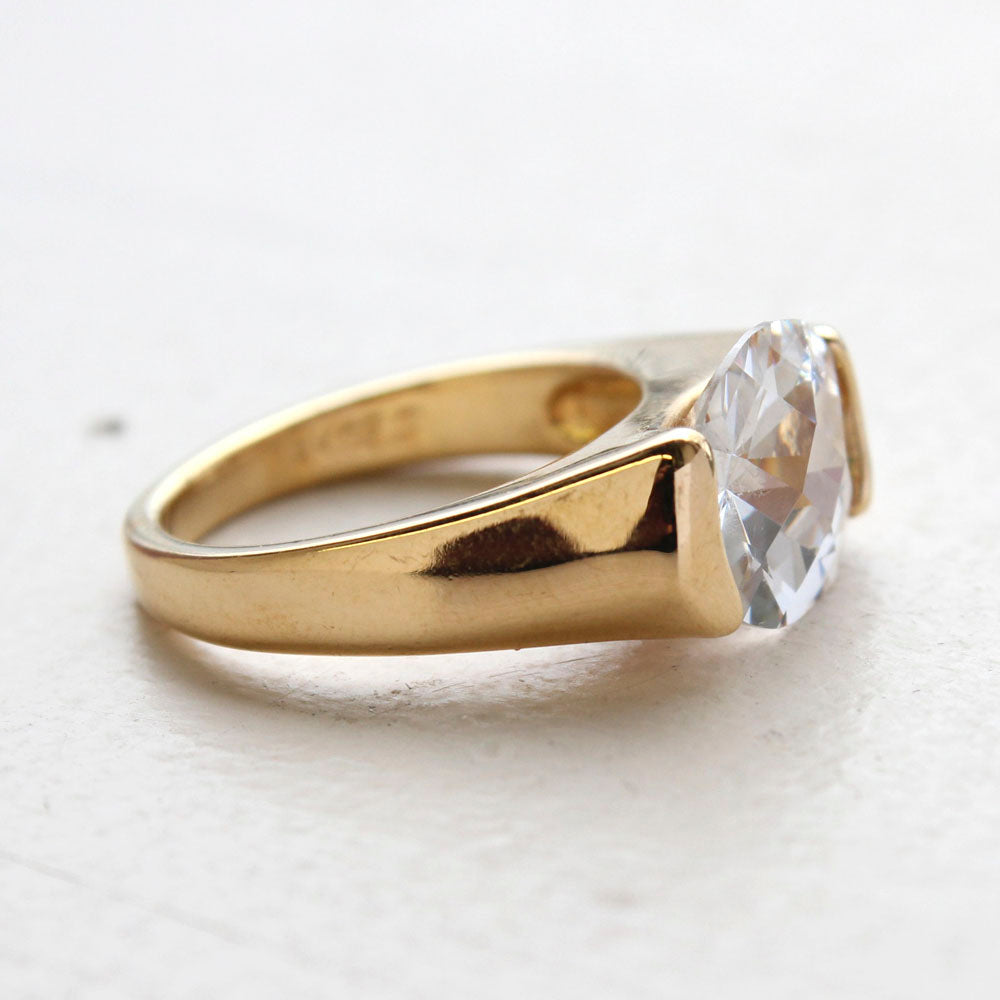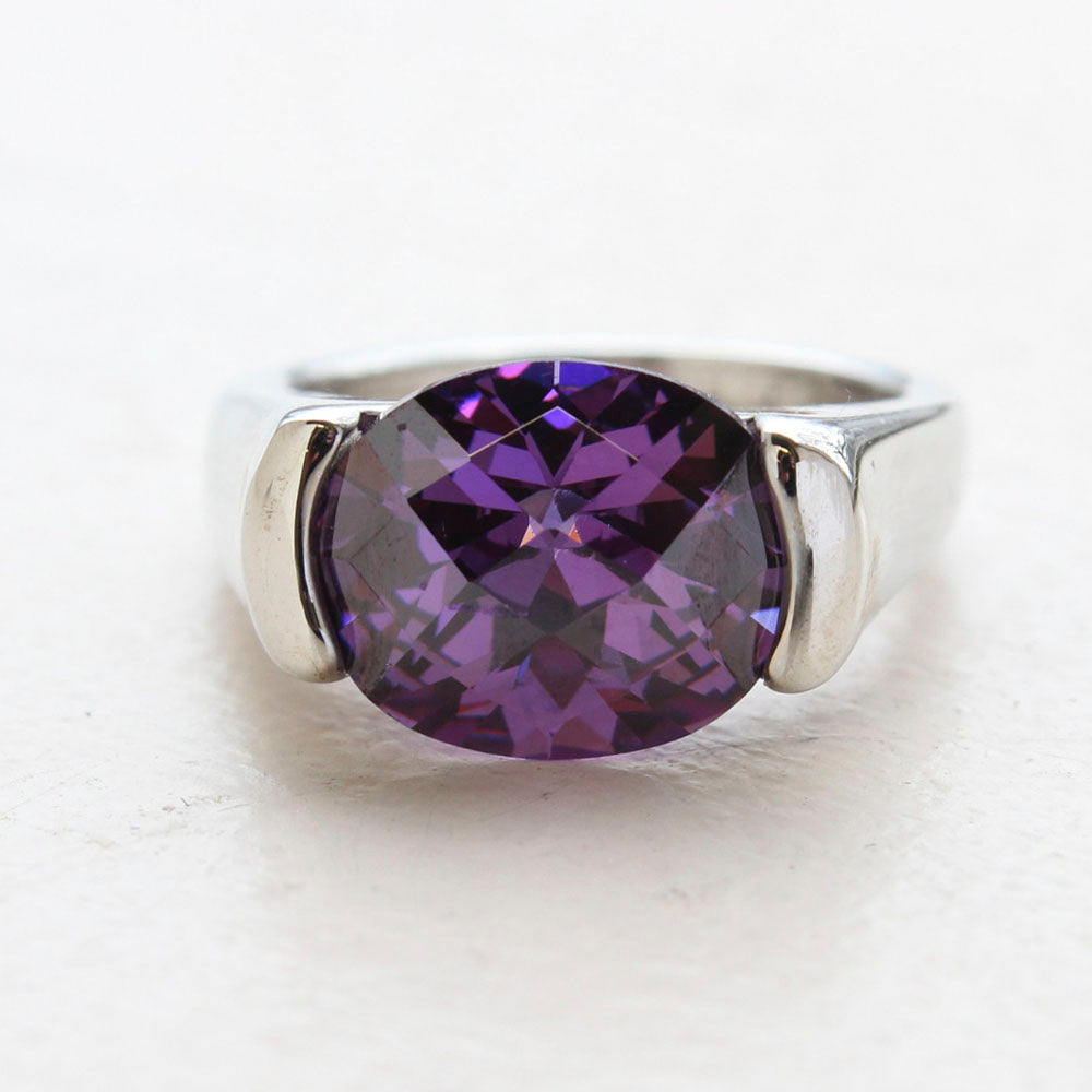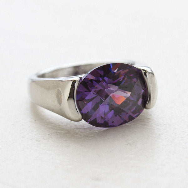 Vintage Ring Amethyst Swarovski Crystal Ring 18k White Gold Silver R4668