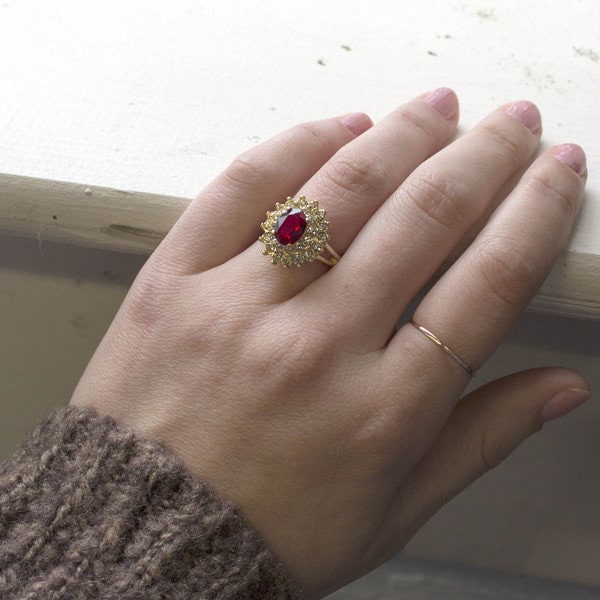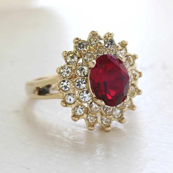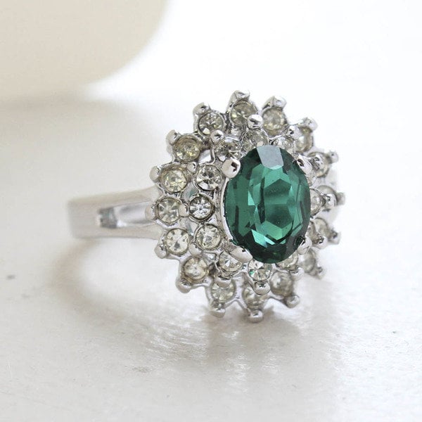 Vintage Ring Austrian Crystal Cocktail Ring 18k White or Yellow Gold  Antique Womans Jewelry - Limited Stock - Never Worn Austrian Crystal