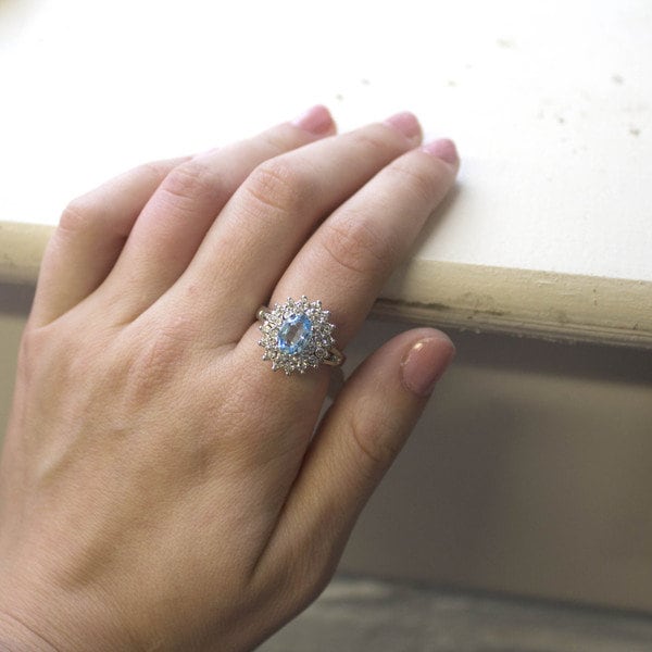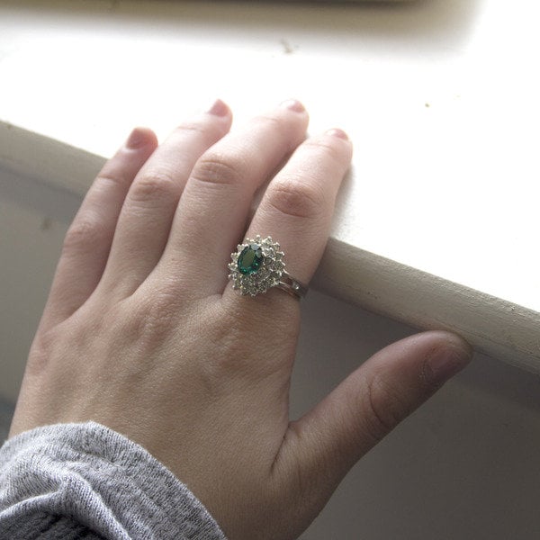 Vintage Ring Austrian Crystal Cocktail Ring 18k White Gold R1352 Antique Womans Jewelry