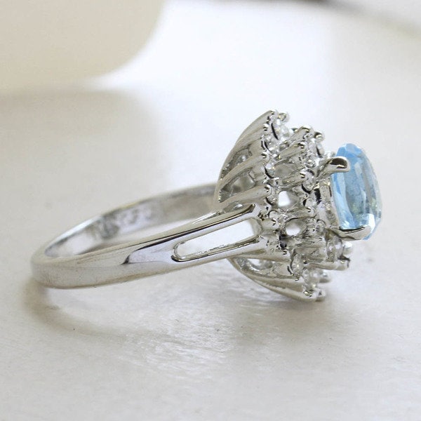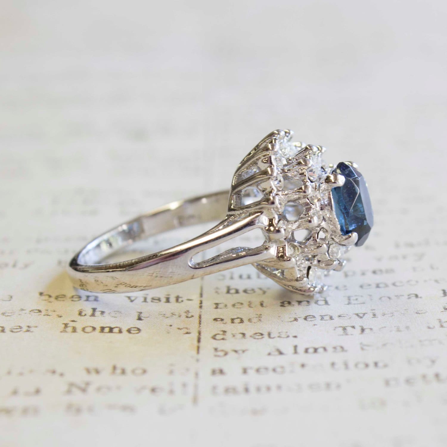 • Vintage Ring Austrian Crystal Cocktail Ring 18k White Gold R1352 Antique Womans Jewelry