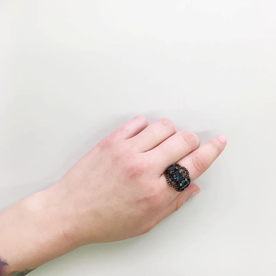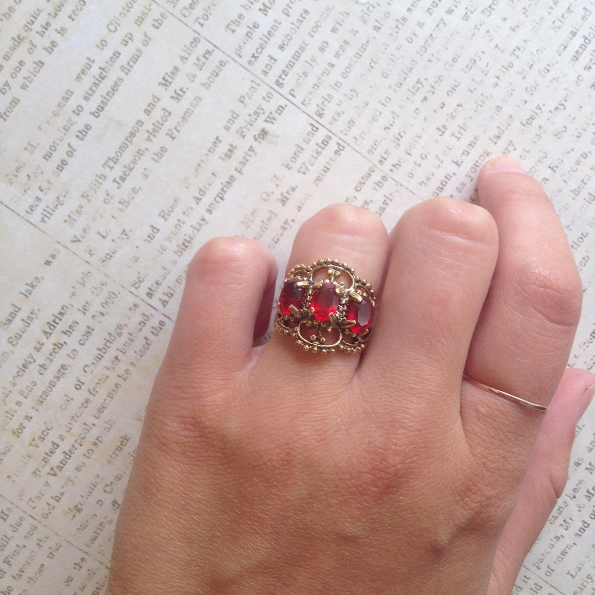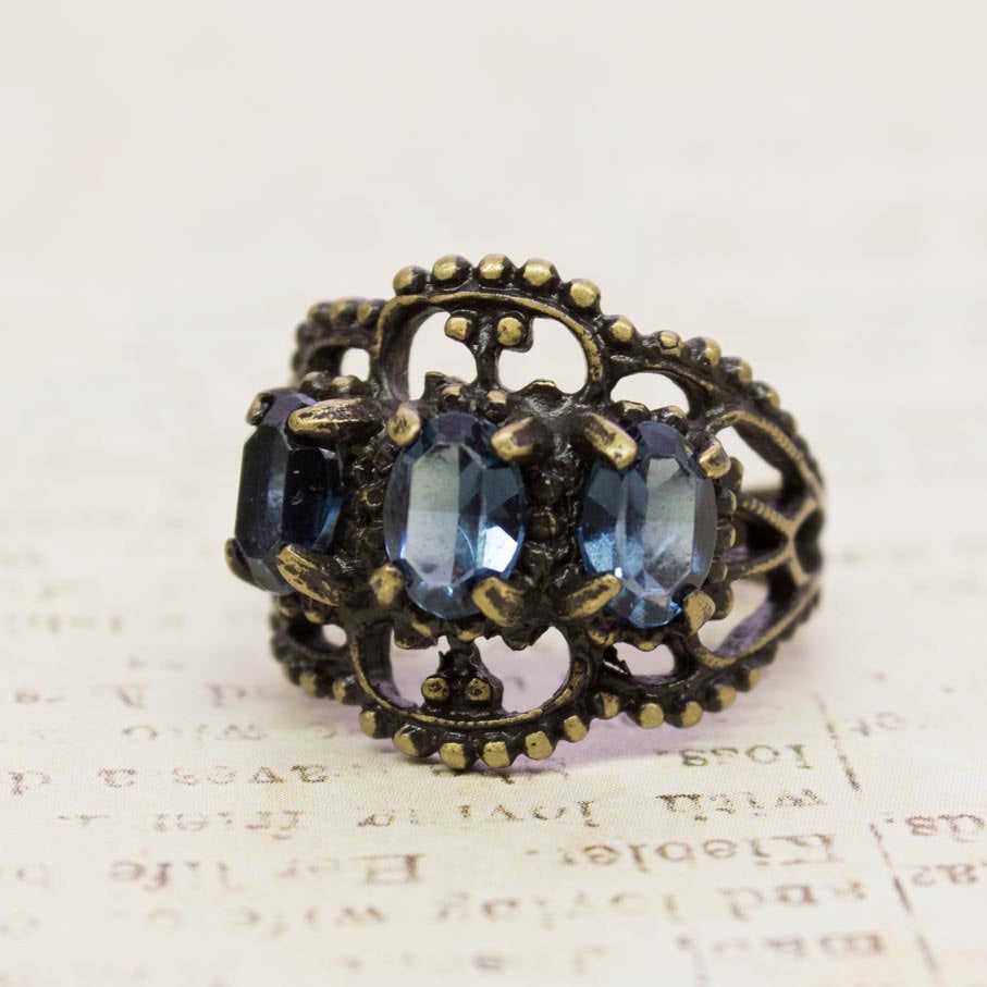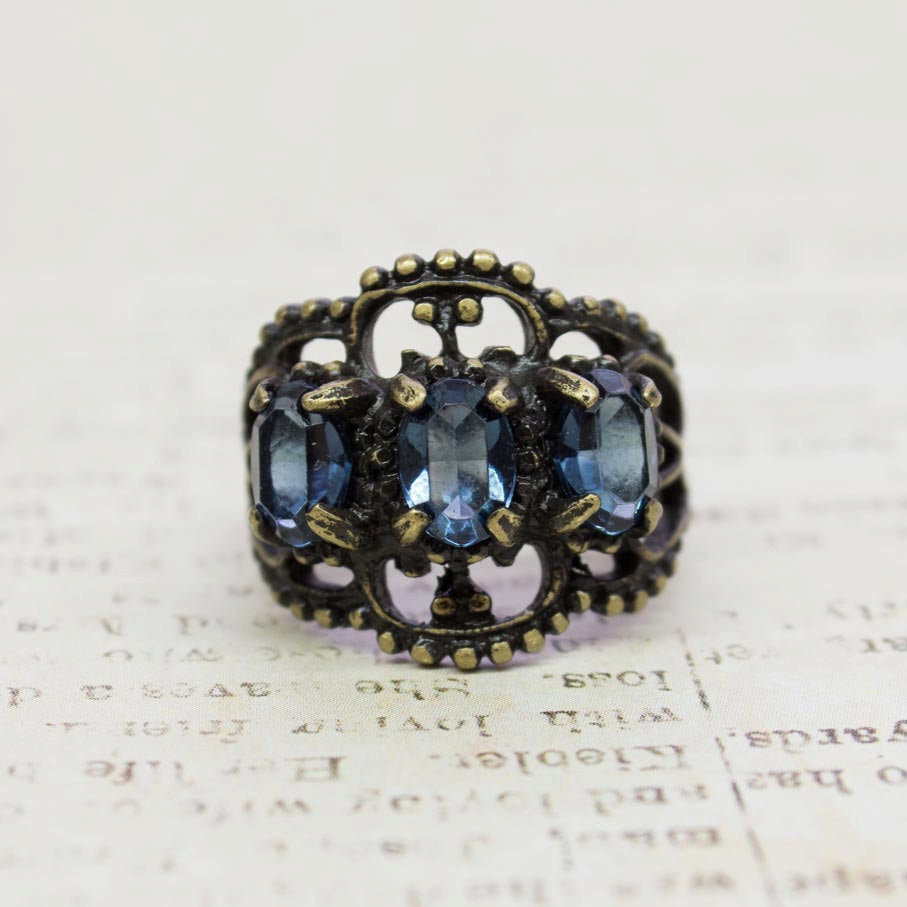 Vintage Ring, select from Genuine stone or Austrian Crystal Cocktail Ring Antiqued 18k Yellow Gold Electroplated