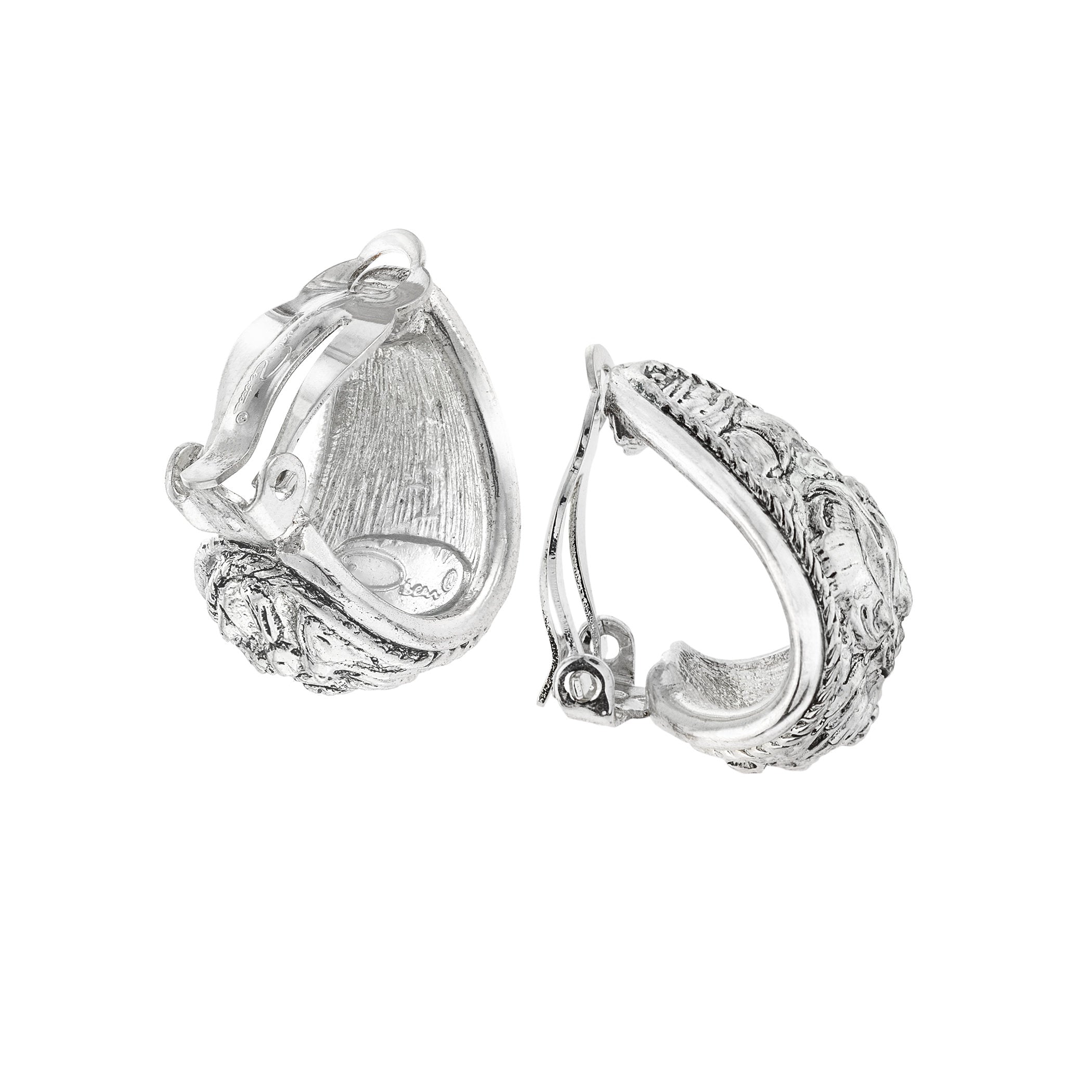 Add a touch of timeless elegance to your collection with these Vintage Oscar de la Renta Clip Earrings. Featuring an antique white gold-tone swirl design, these stunning earrings measure 1" and are crafted with the iconic attention to detail Oscar de la Renta is known for. Perfect for any occasion, these classic clip-on earrings exude sophistication and charm.