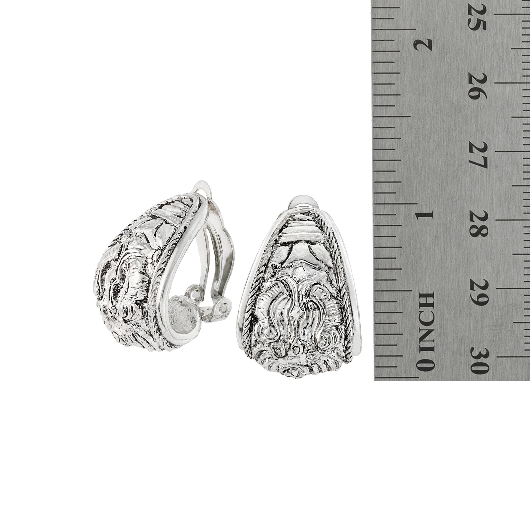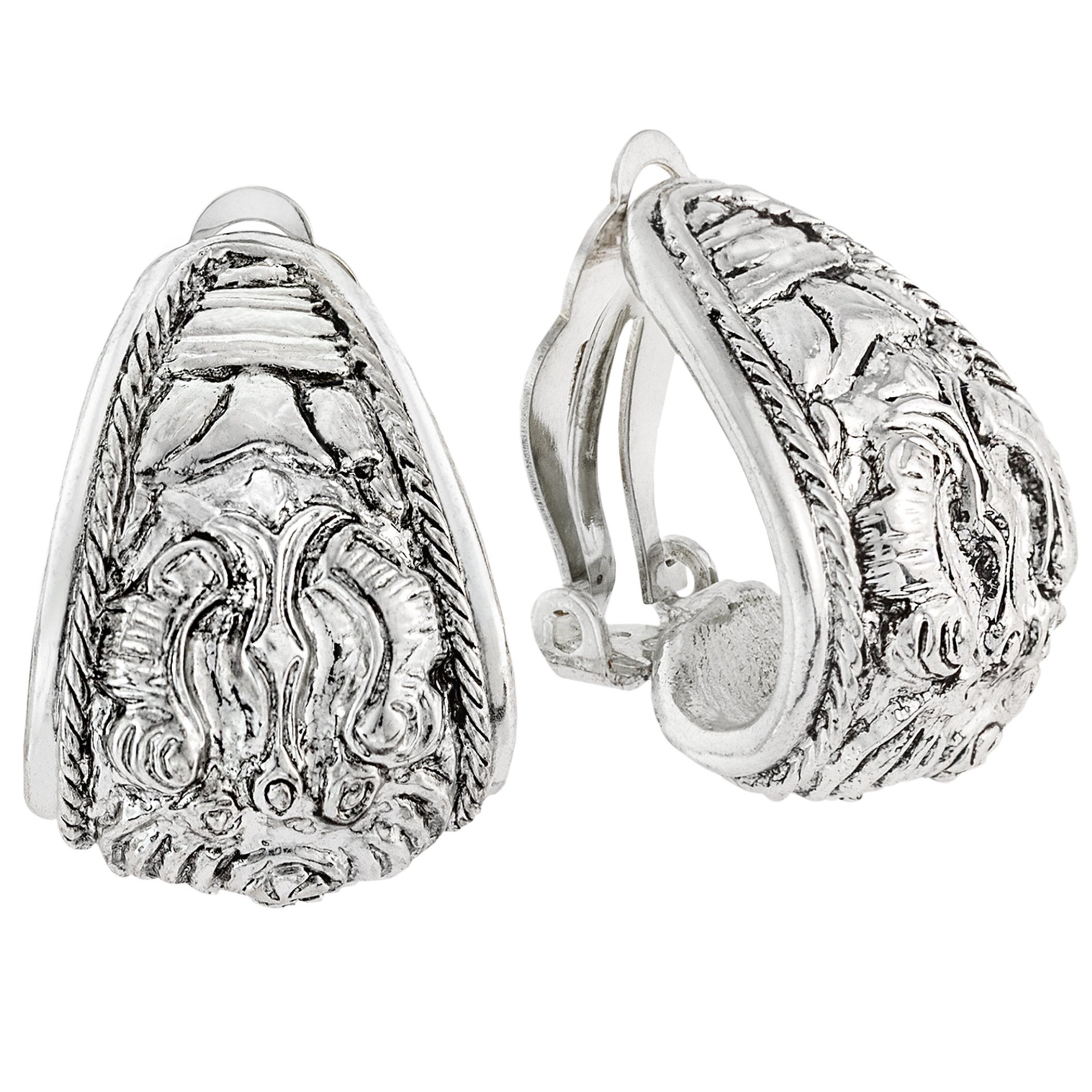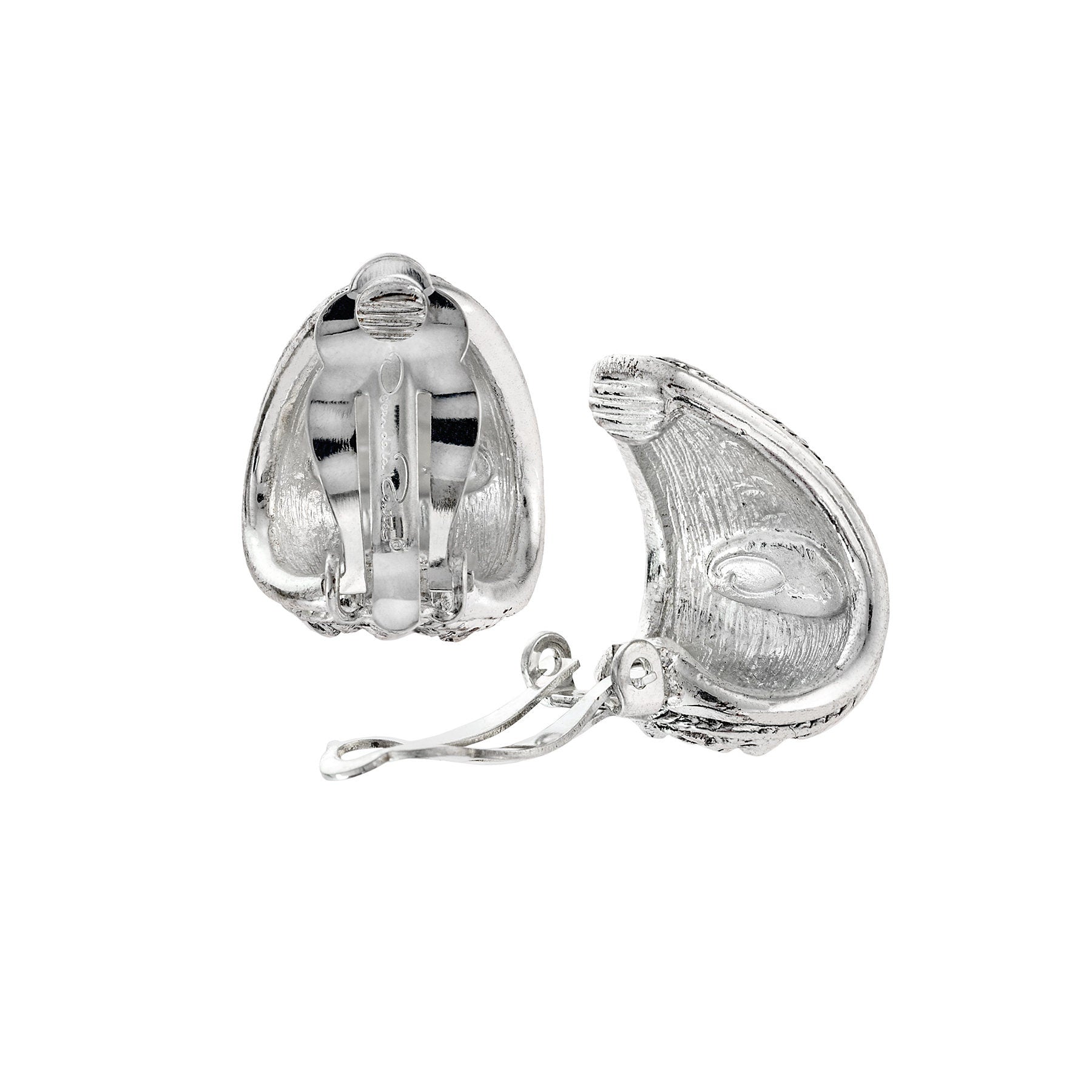 • Vintage Oscar de la Renta Clip Earrings Antique Silver Tone Swirl Design
