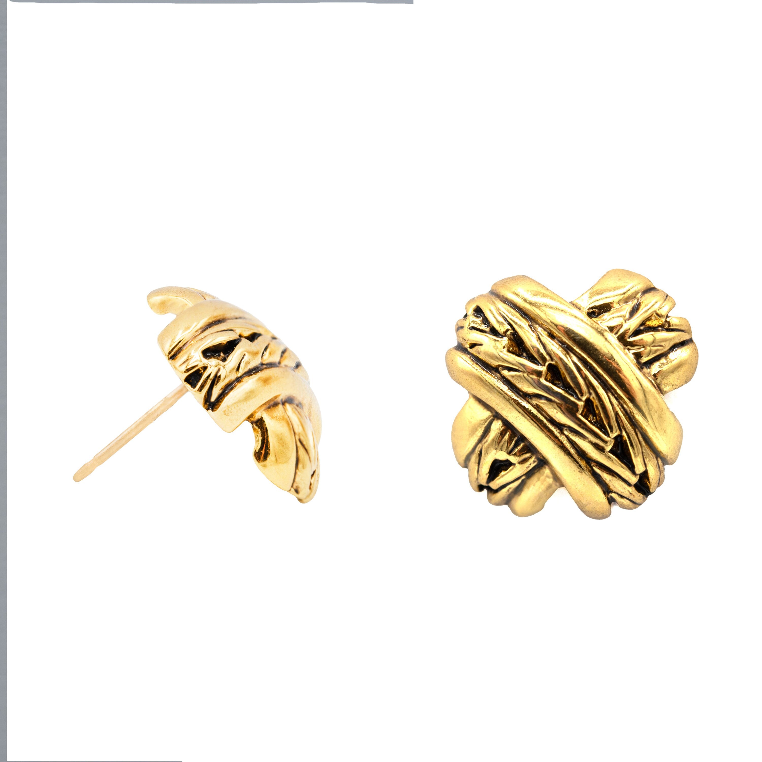 While supplies last, enjoy our Vintage Oscar De La Renta Collection! Featured are the Vintage Oscar De La Renta X Design Earrings, measuring 1/2 inch. These post earrings are in excellent condition, never worn or previously owned. Gorgeously small yet very classic, they boast great quality with antique gold plating.and Stamped with Oscar logo on back.