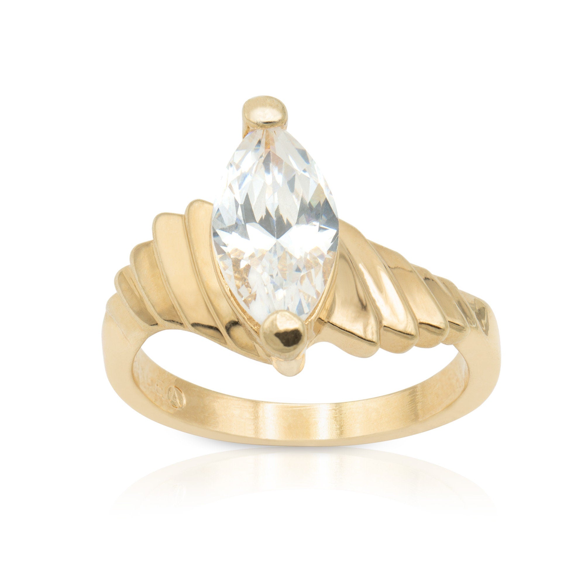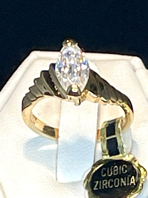 Vintage Ring 1.5 ct. Marquise Cut Cubic Zirconia Solitaire Engagement Style Ring 18KT Gold Antique Womans Jewelry Handmade Rings #R3397 Condition: Excellent & SPARKLY! (Never worn or owned) Vintage 1980s Solitaire Engagement Style Ring Made in Providence, RI, USA 18k Gold Plated - Silver Tone Marquise Cut Cubic Zirconia Stone 1.5 CT. Total Weight Height of Setting: 1/4 inch April's Birthstone Color Stamped - 18k HGE