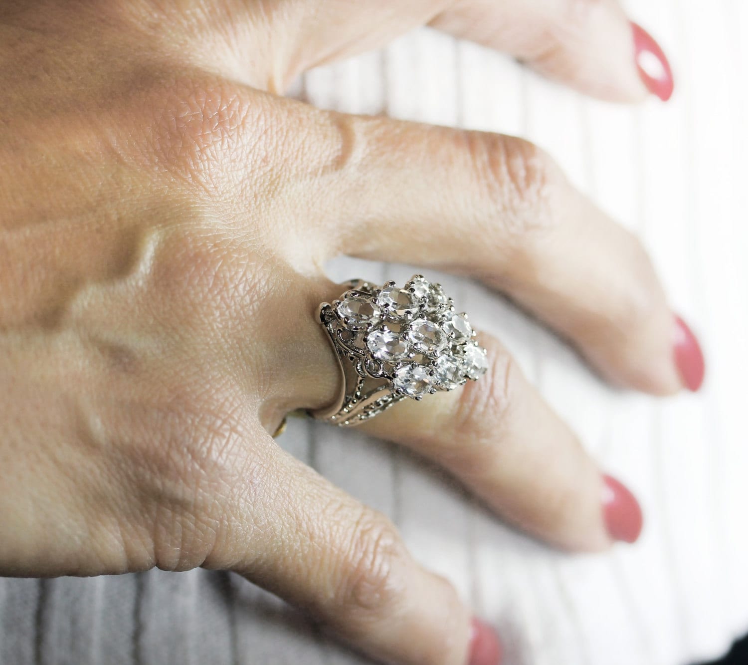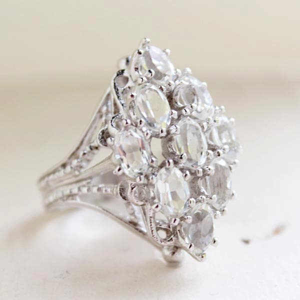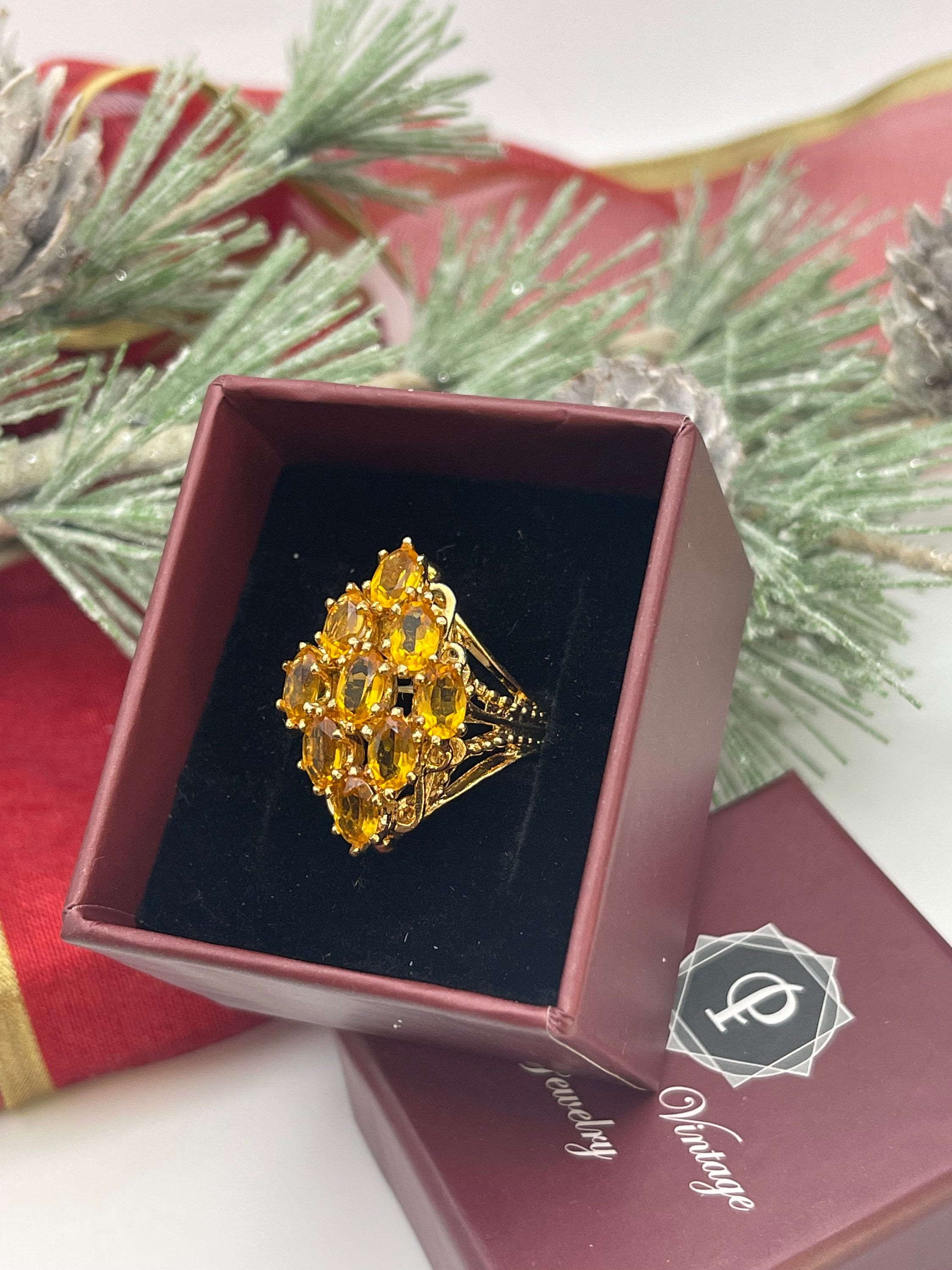 Vintage Ring Swarovski Crystals 18k Yellow or White Gold Electroplated Antique Womans Cocktail Ring Big Statement ring, Beautiful and Unique Vintage Cocktail Ring