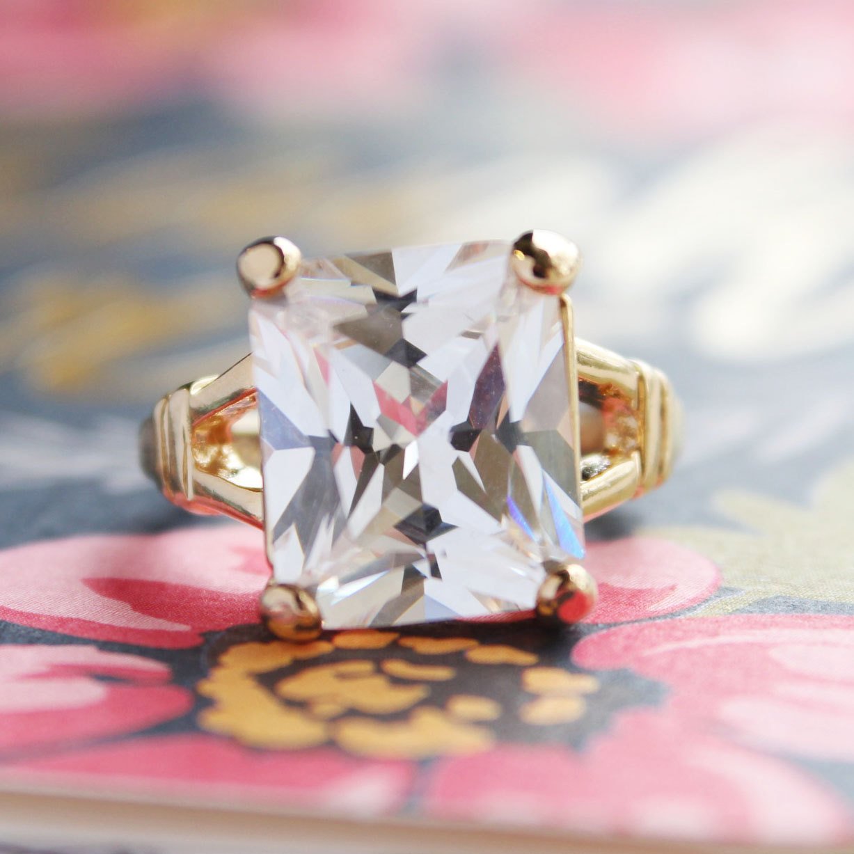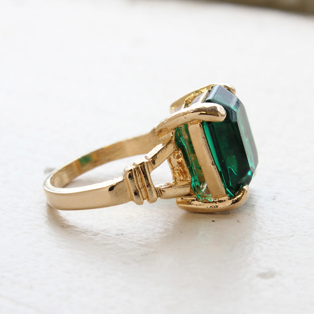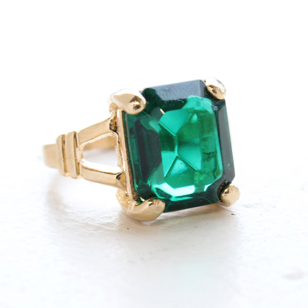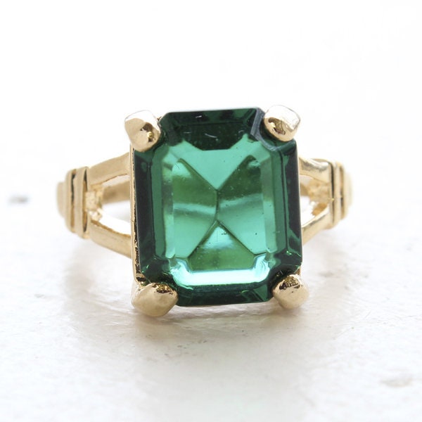 Vintage Ring Emerald Swarovski Crystal Ring 18k Gold Electroplated R3825 Emerald Austrian Crystal 18k Yellow Gold Electroplated Made in Providence, RI, USA Stamped - 18k HGE