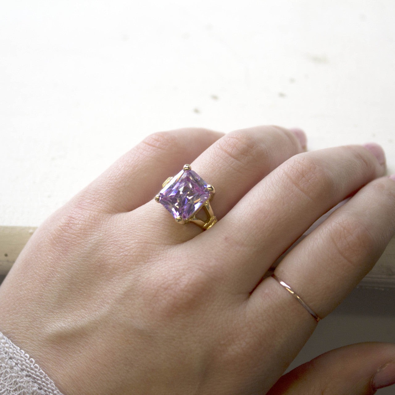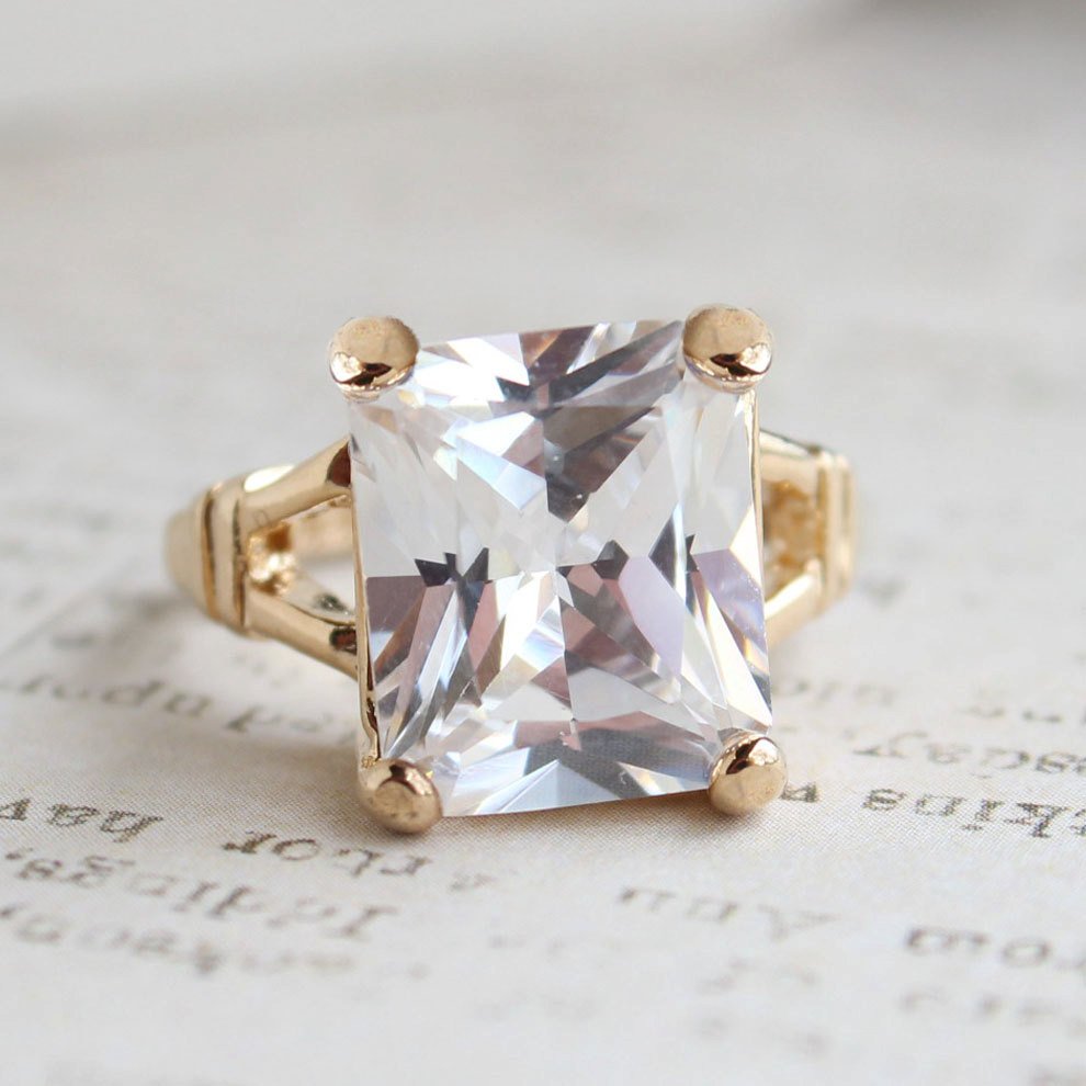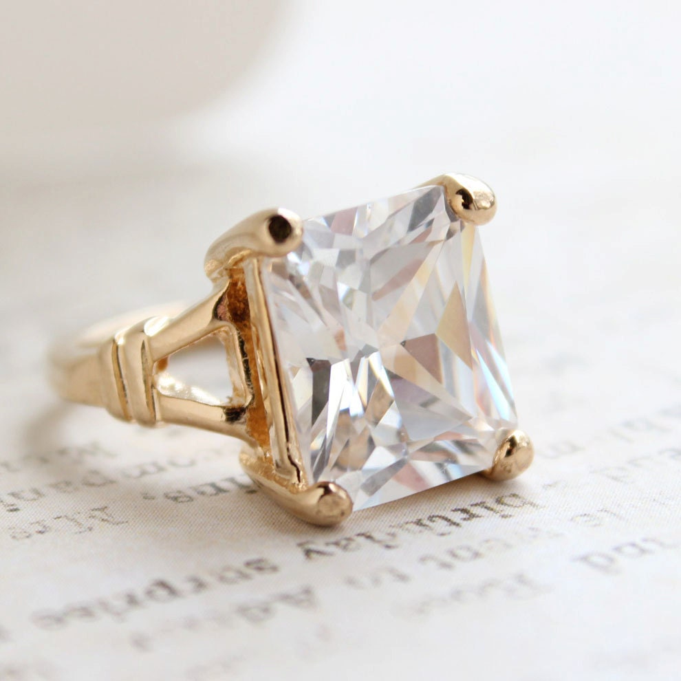 Vintage Ring Emerald Swarovski Crystal Ring 18k Gold Electroplated R3825 Emerald Austrian Crystal 18k Yellow Gold Electroplated Made in Providence, RI, USA Stamped - 18k HGE