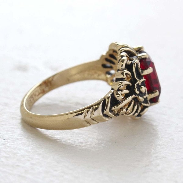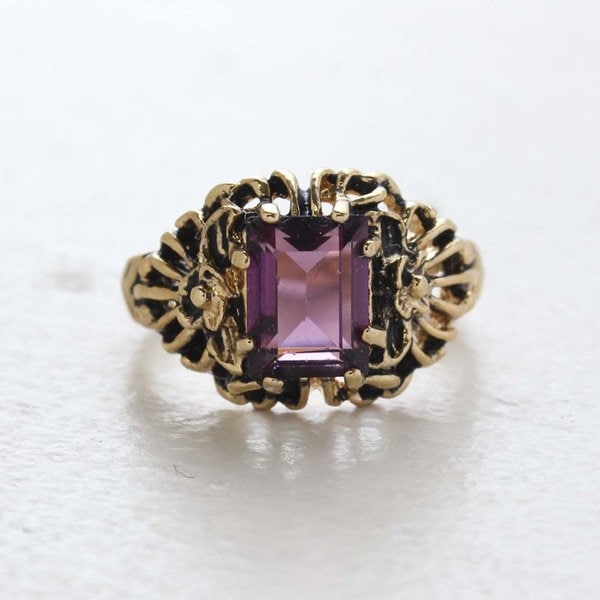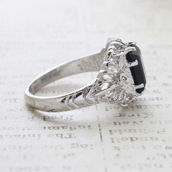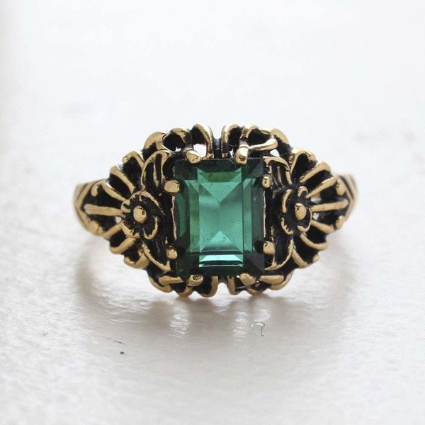 Vintage Ring Emerald Cut Smokey Topaz Swarovski Crystal 18kt Antique Gold Plated Filligre Ring February Birthstone