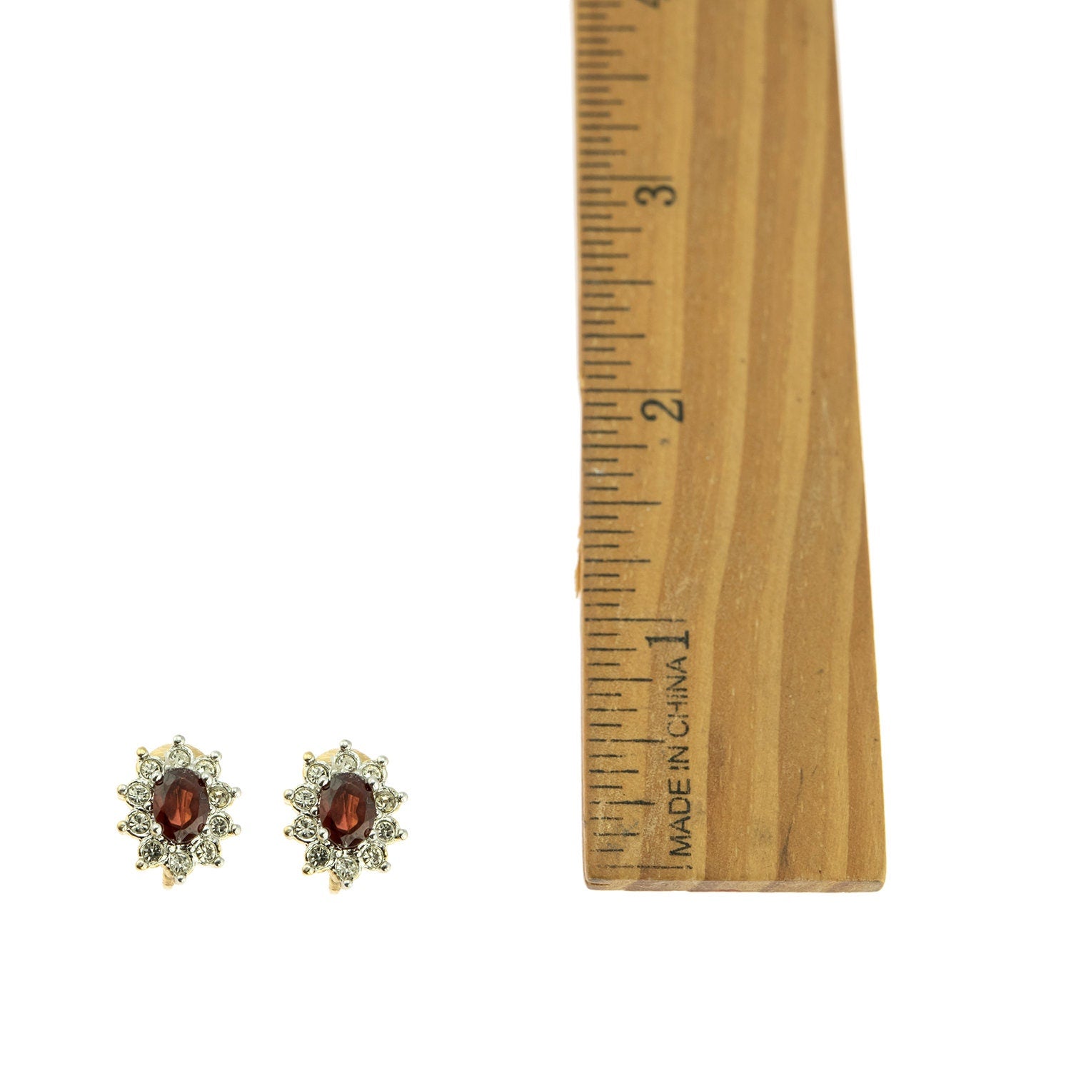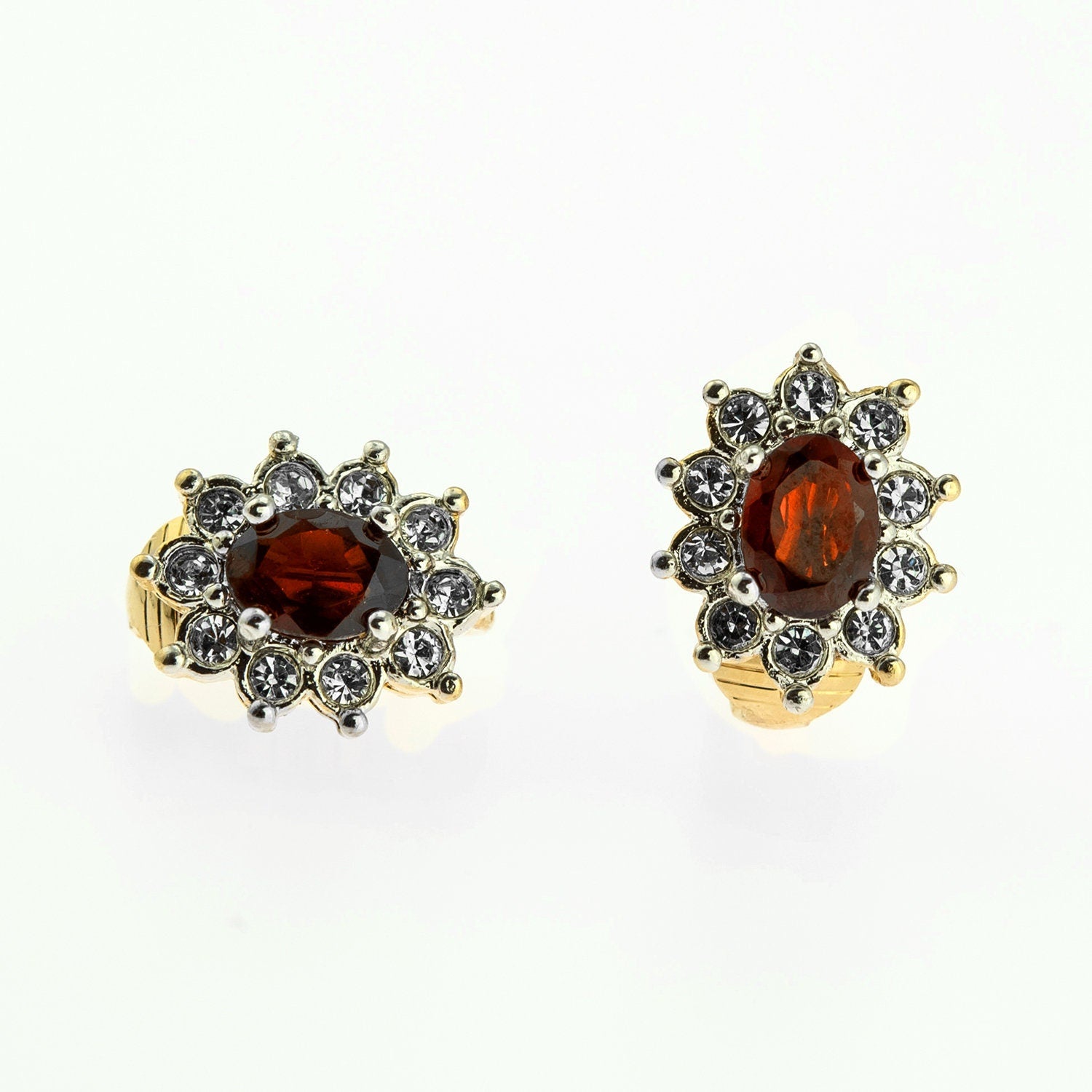 Vintage 18k Gold Electroplated Genuine Garnet Stones Surrounded by Clear Crystals Condition - Excellent - Never worn or previously owned Clip Backs Unique, gorgeous and excellent quality earrings!