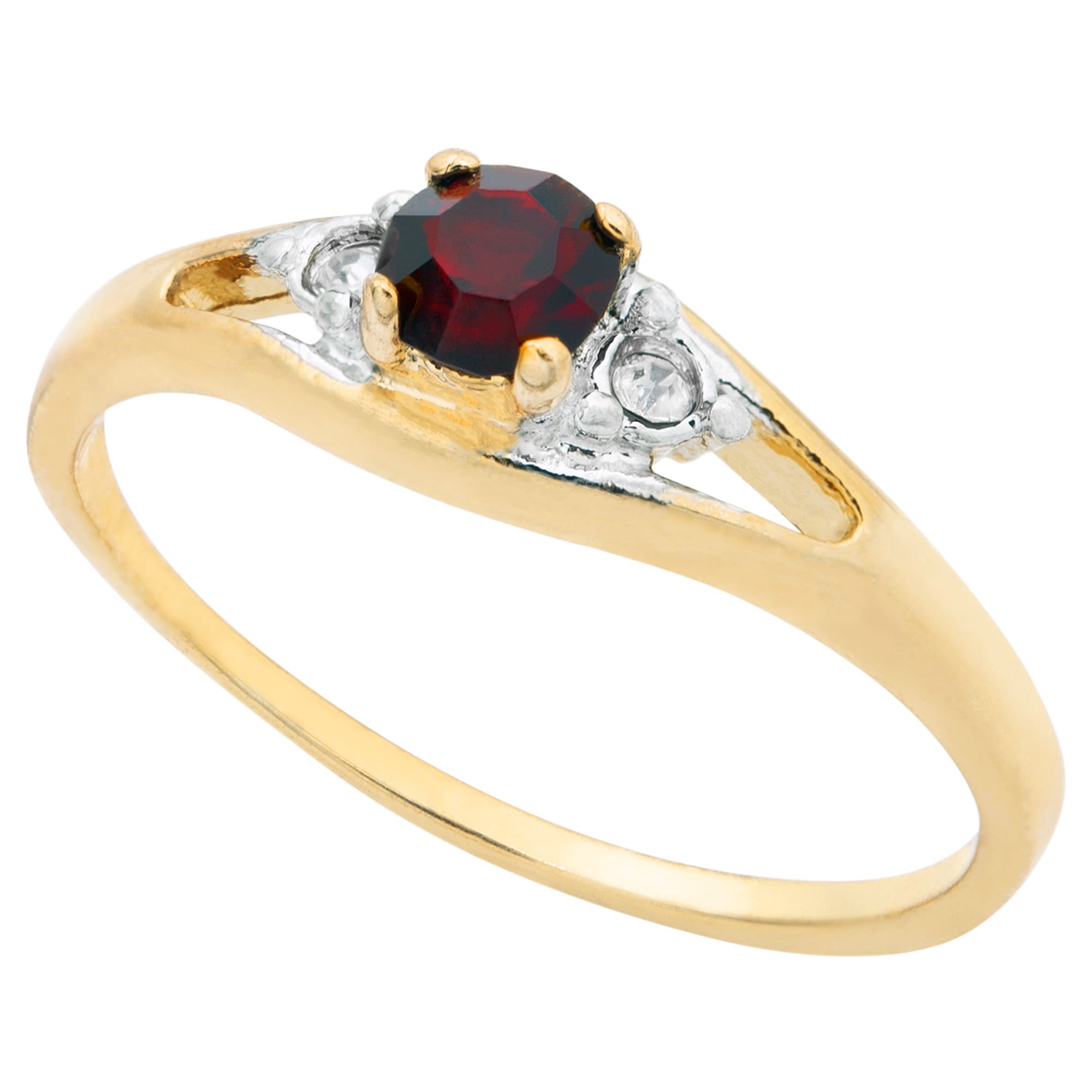 Vintage Garnet with Clear Austrian Crystal Accents 18k Yellow Gold Womans Antique Rings R2891 Garnet and Clear Austrian Crystals 18k Yellow Gold Electroplated Made in Providence, RI, USA Stamped - 18k HGE