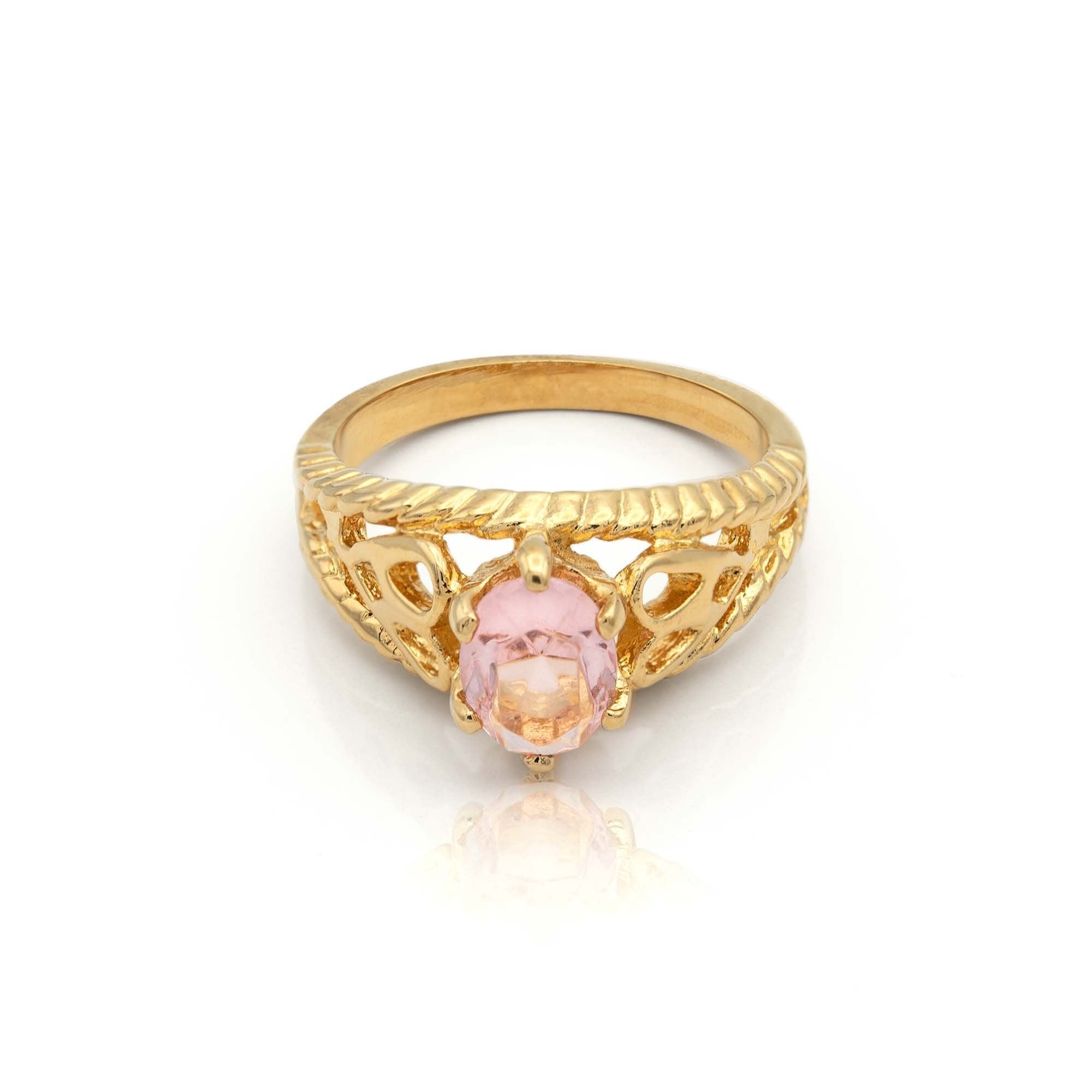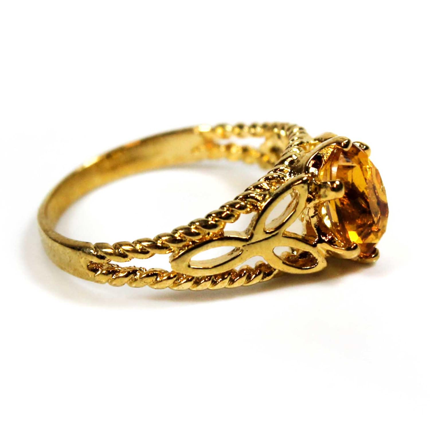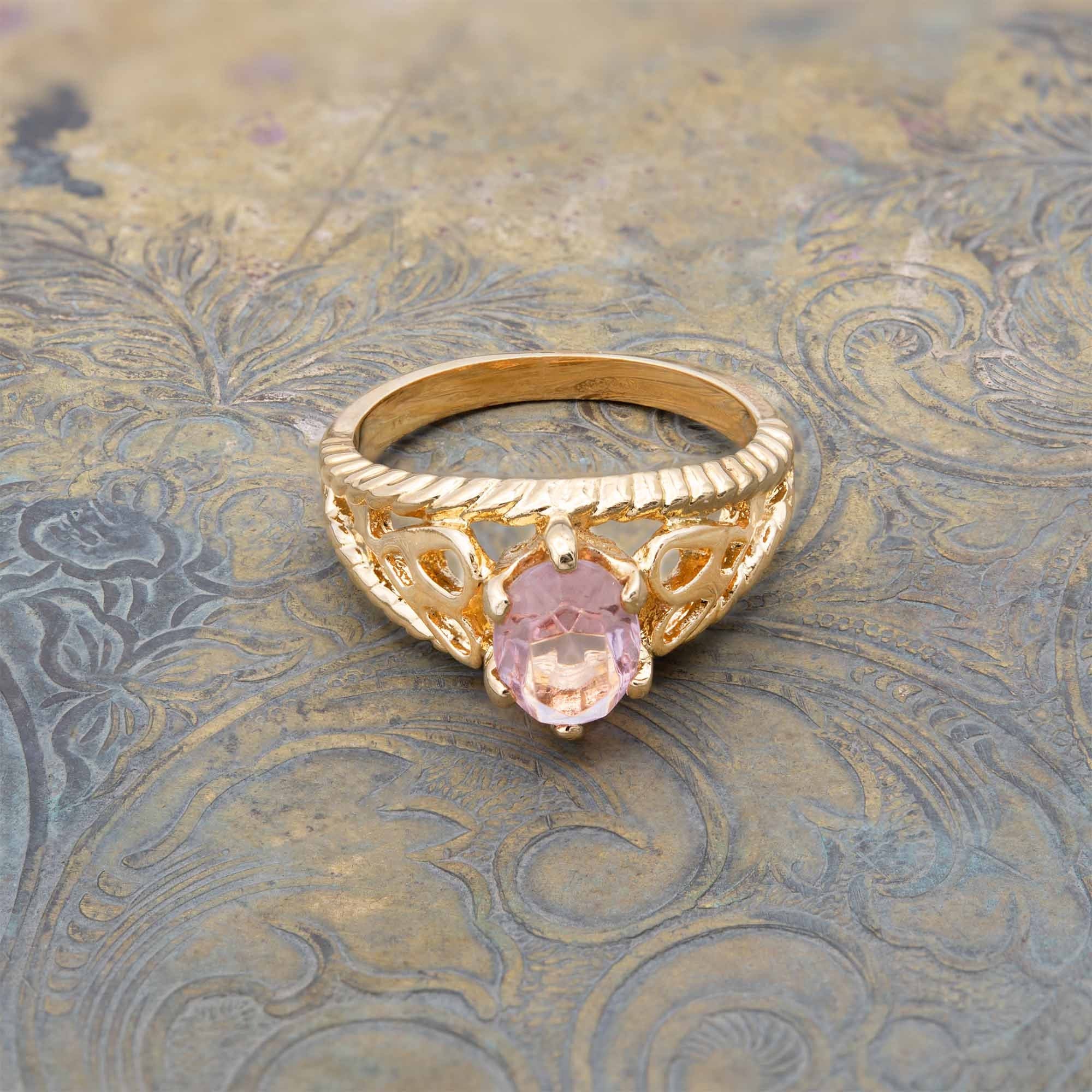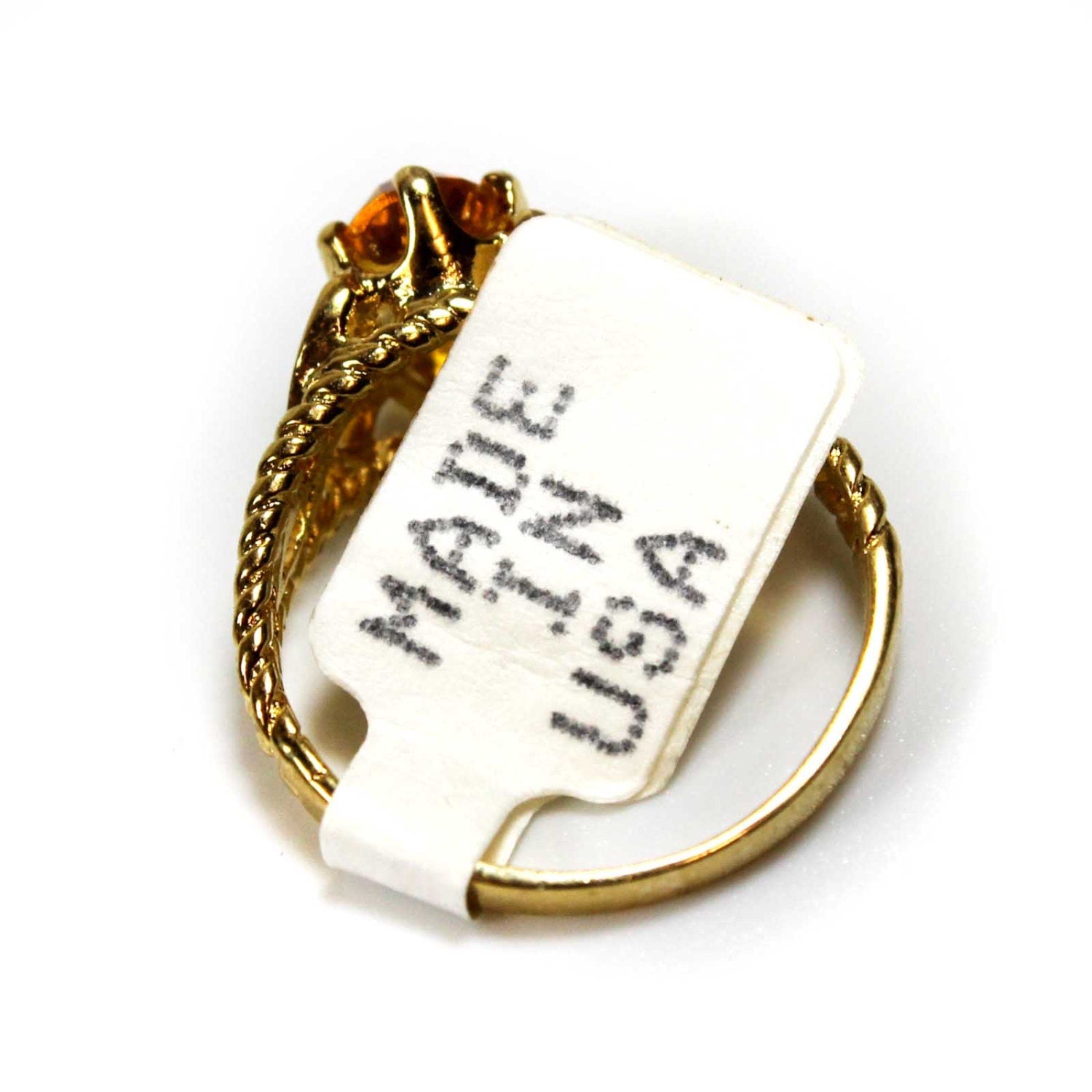 Condition is Excellent - Never worn or owned Vintage Filigree Cocktail Ring Ring Made approx. 1970s Authentic Edwardian Era Mold Made in Providence, Rhode Island, USA Oval Cut Light Topaz Austrian Crystal Intricate Filigree Design on Ring Shank Crystal Size 8.4mm x 6.2mm 18k Gold Electroplated Stamped - 18k HGE November's Birthstone Color More November's Birthstone Rings: