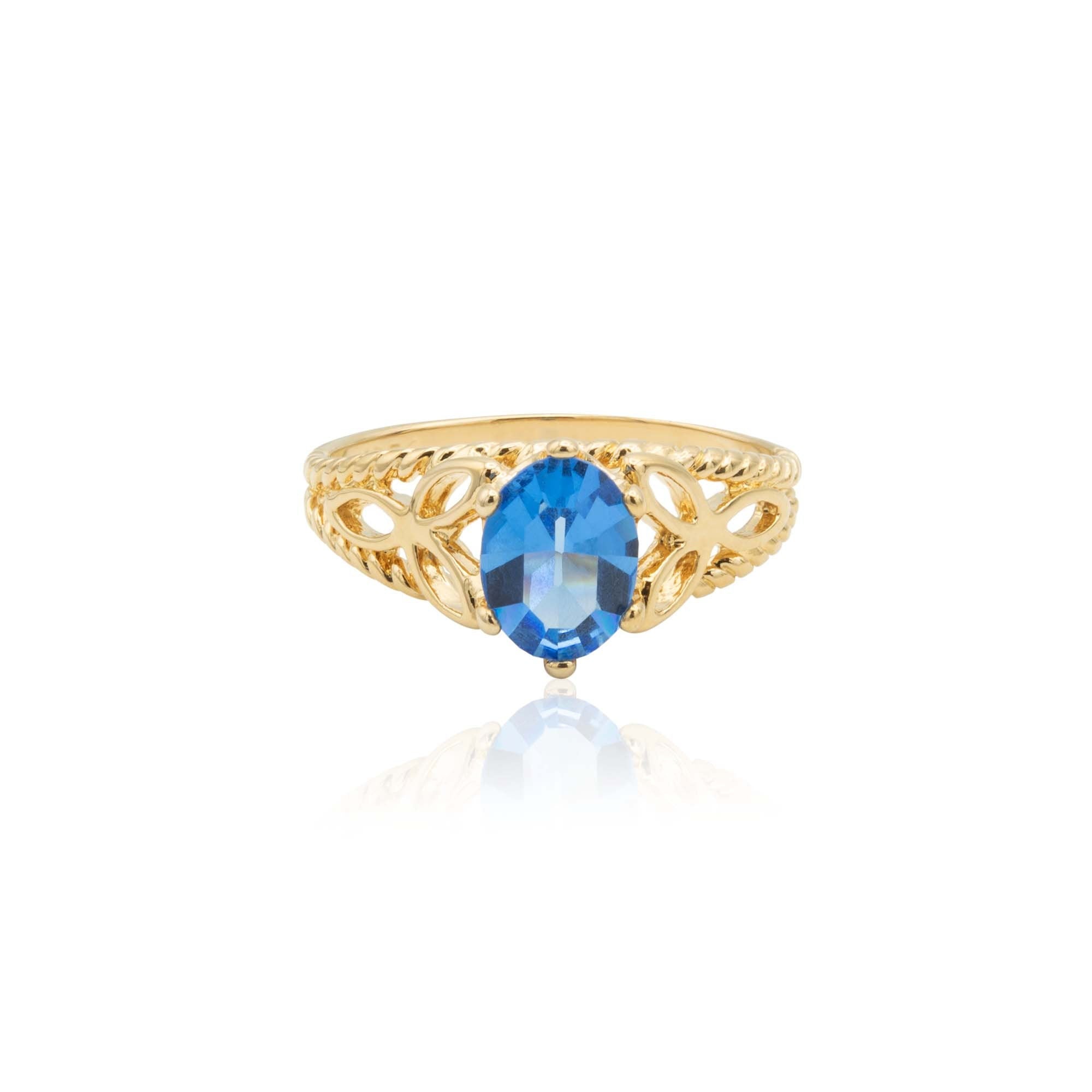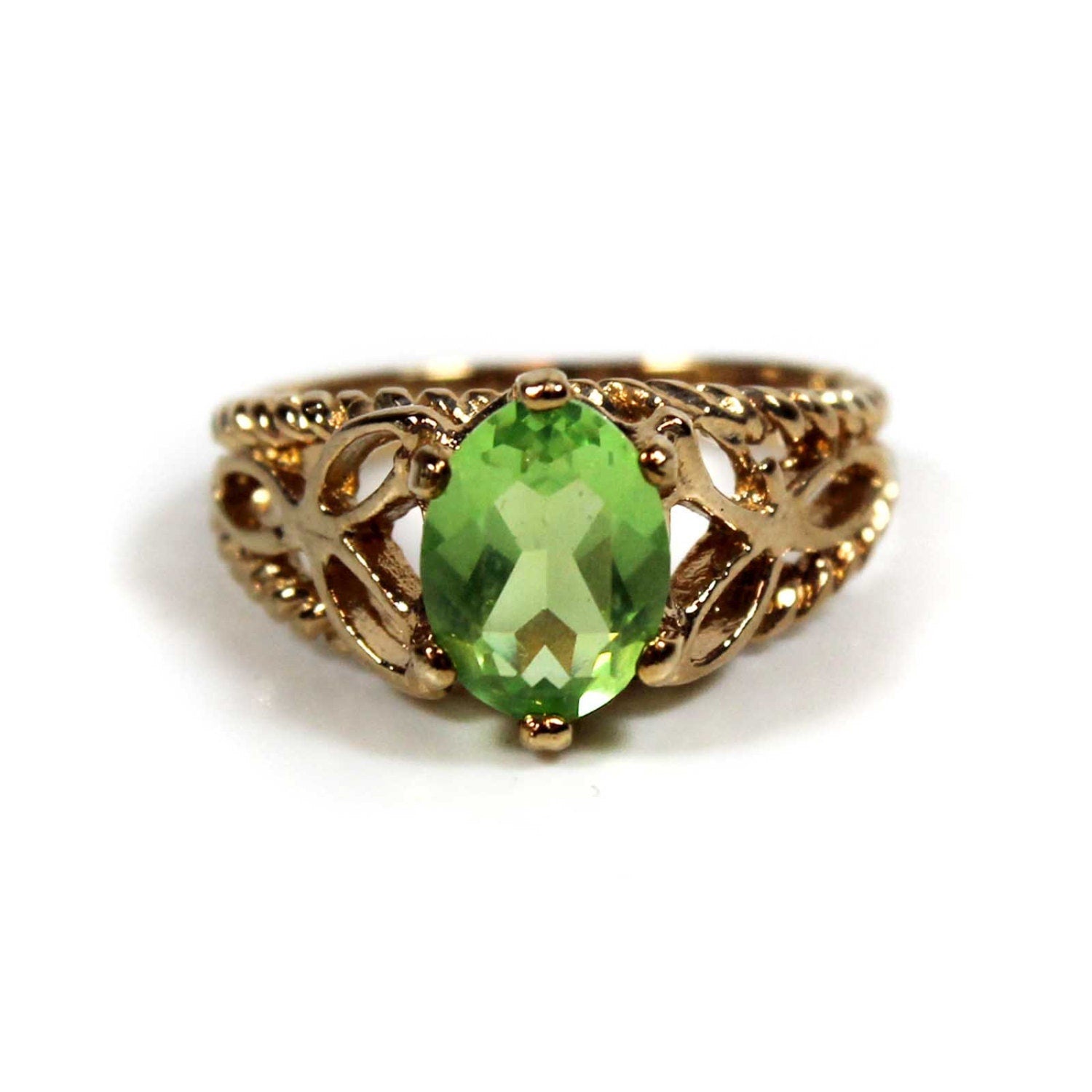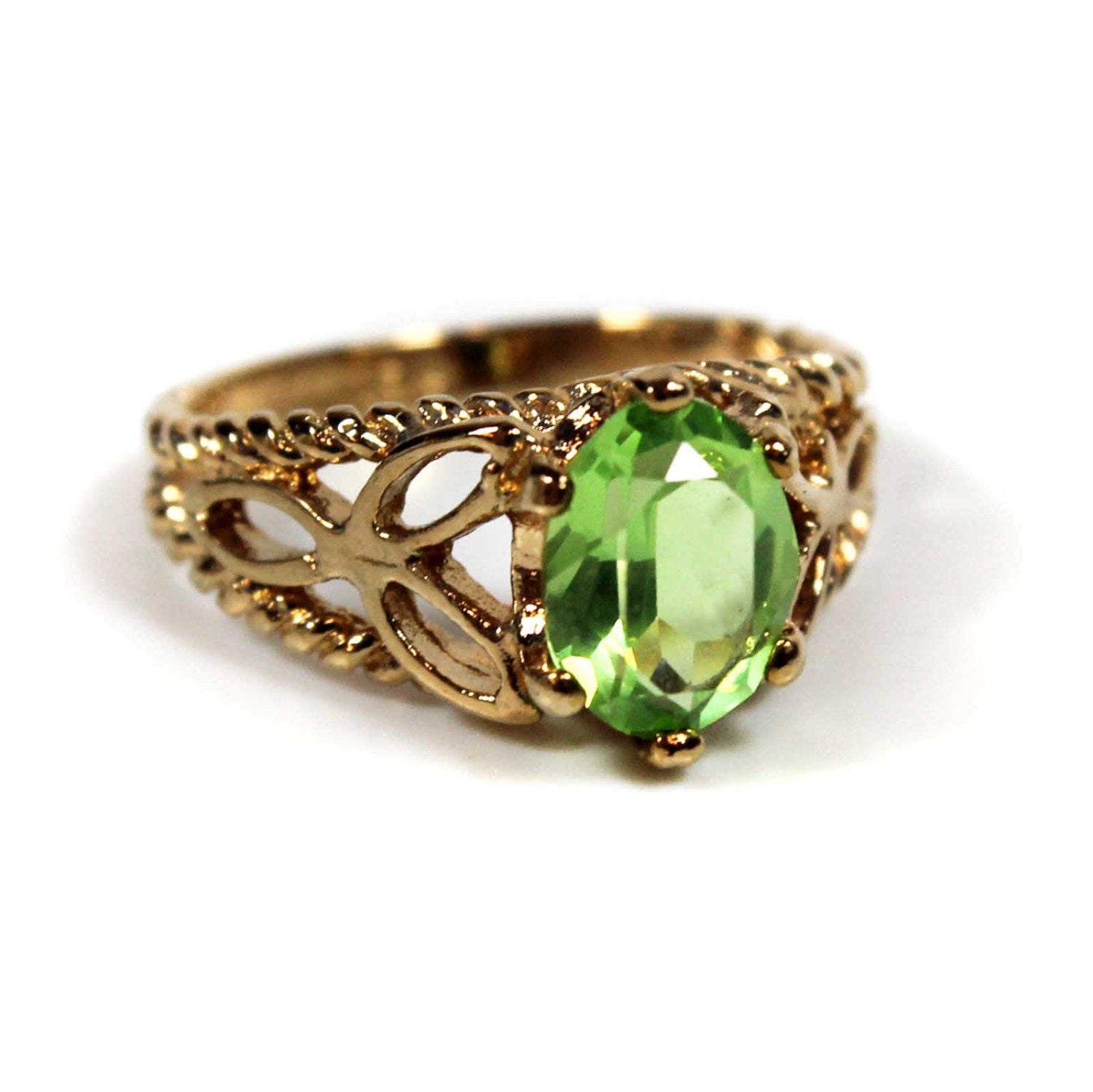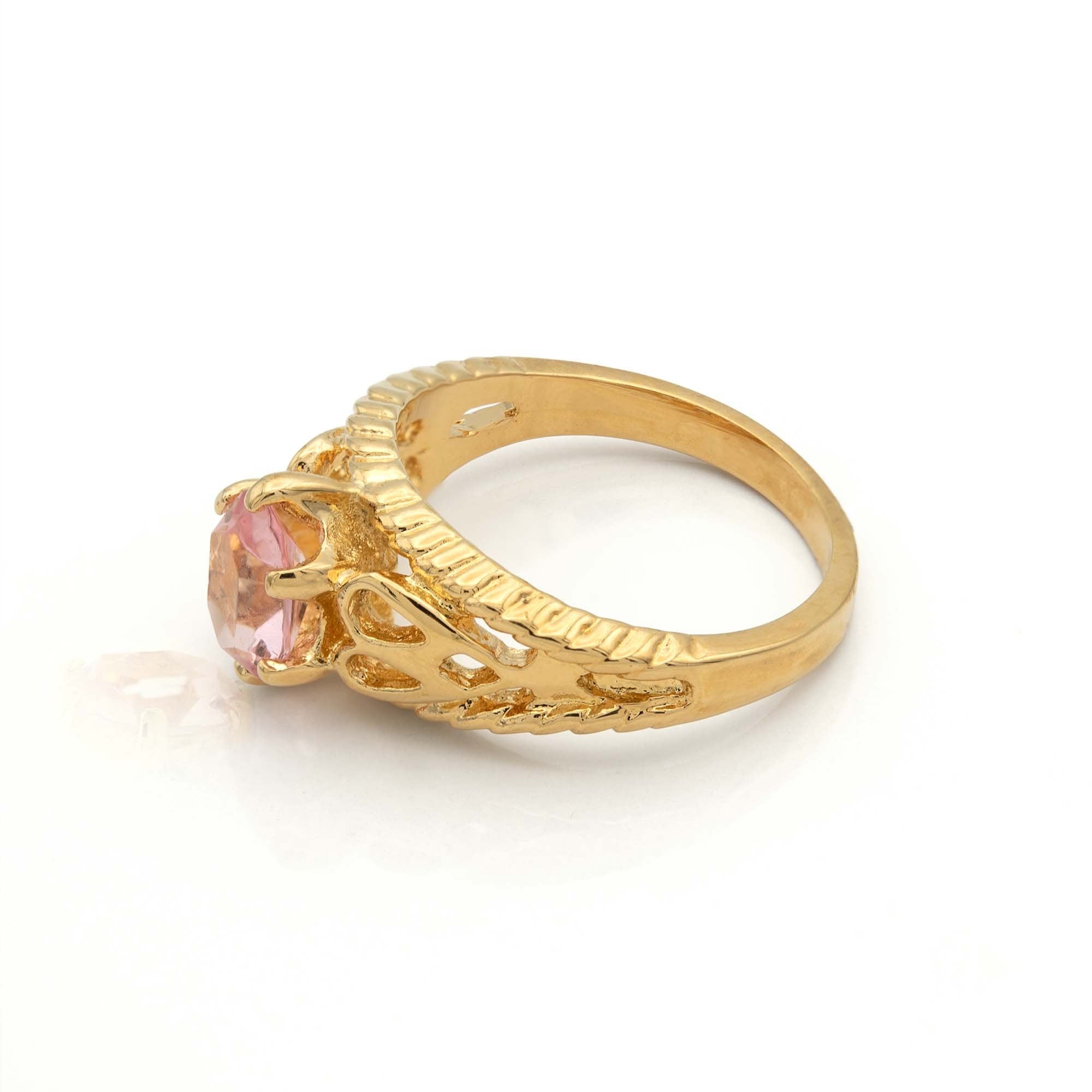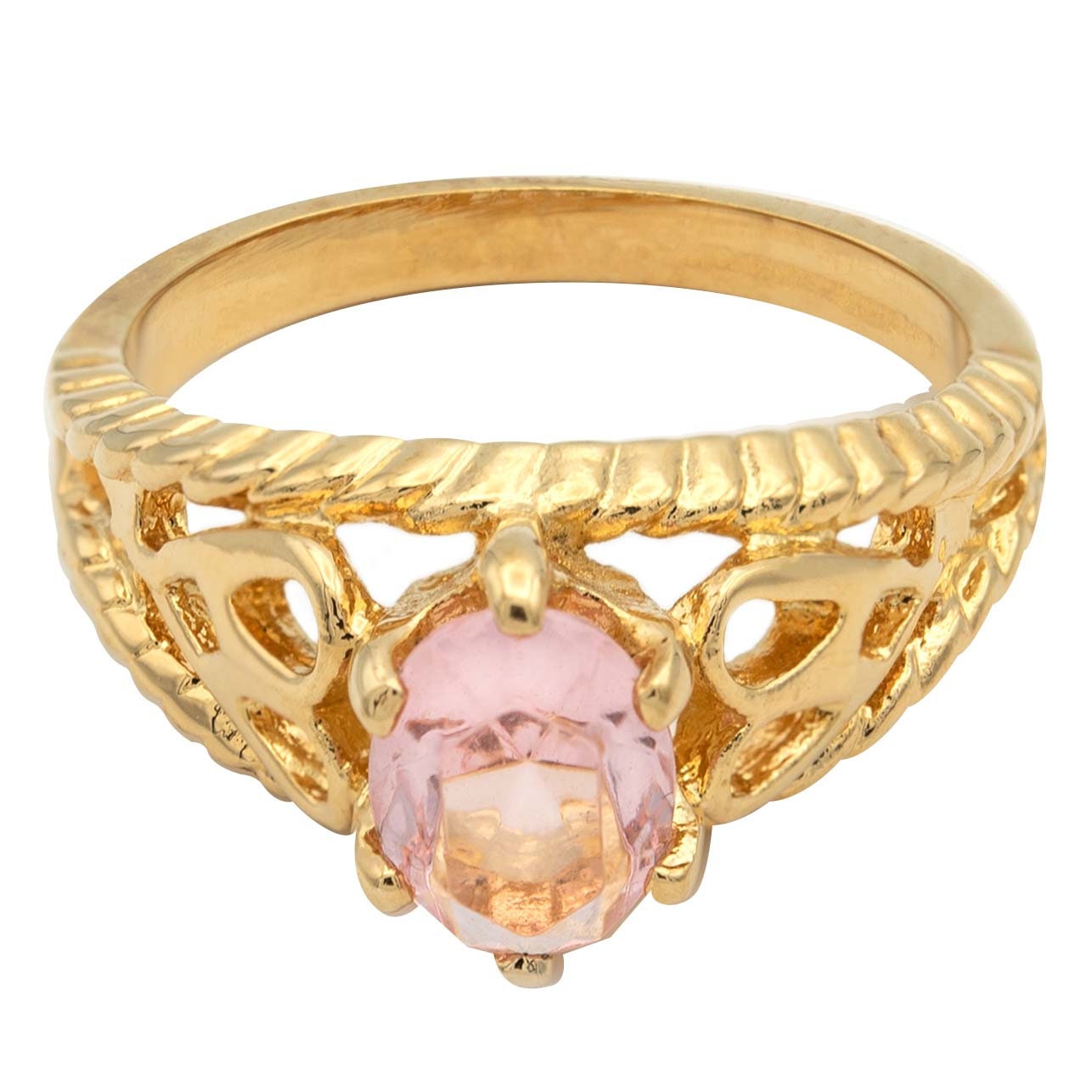 Condition is Excellent - Never worn or owned Vintage Filigree Cocktail Ring Ring Made approx. 1970s Authentic Edwardian Era Mold Made in Providence, Rhode Island, USA Oval Cut Light Topaz Austrian Crystal Intricate Filigree Design on Ring Shank Crystal Size 8.4mm x 6.2mm 18k Gold Electroplated Stamped - 18k HGE November's Birthstone Color More November's Birthstone Rings:
