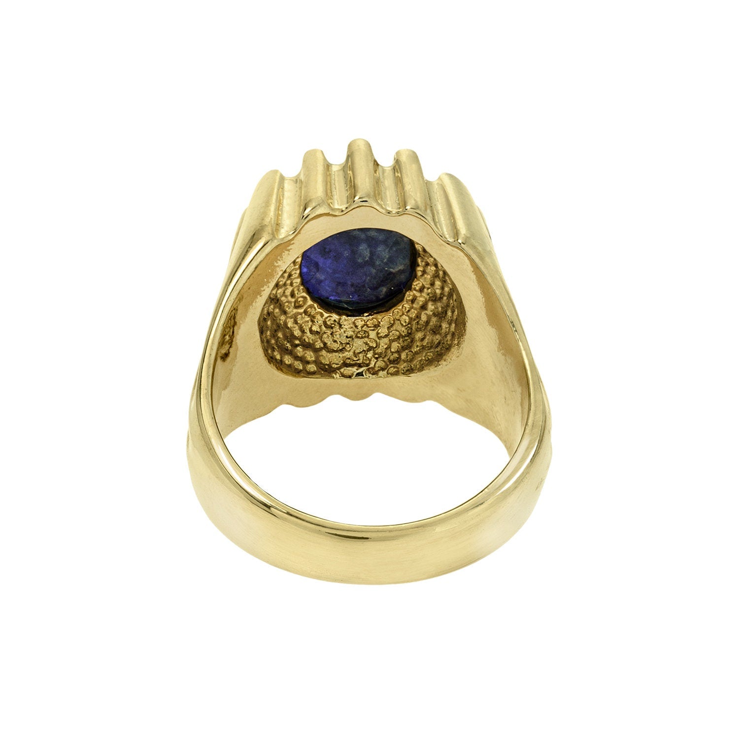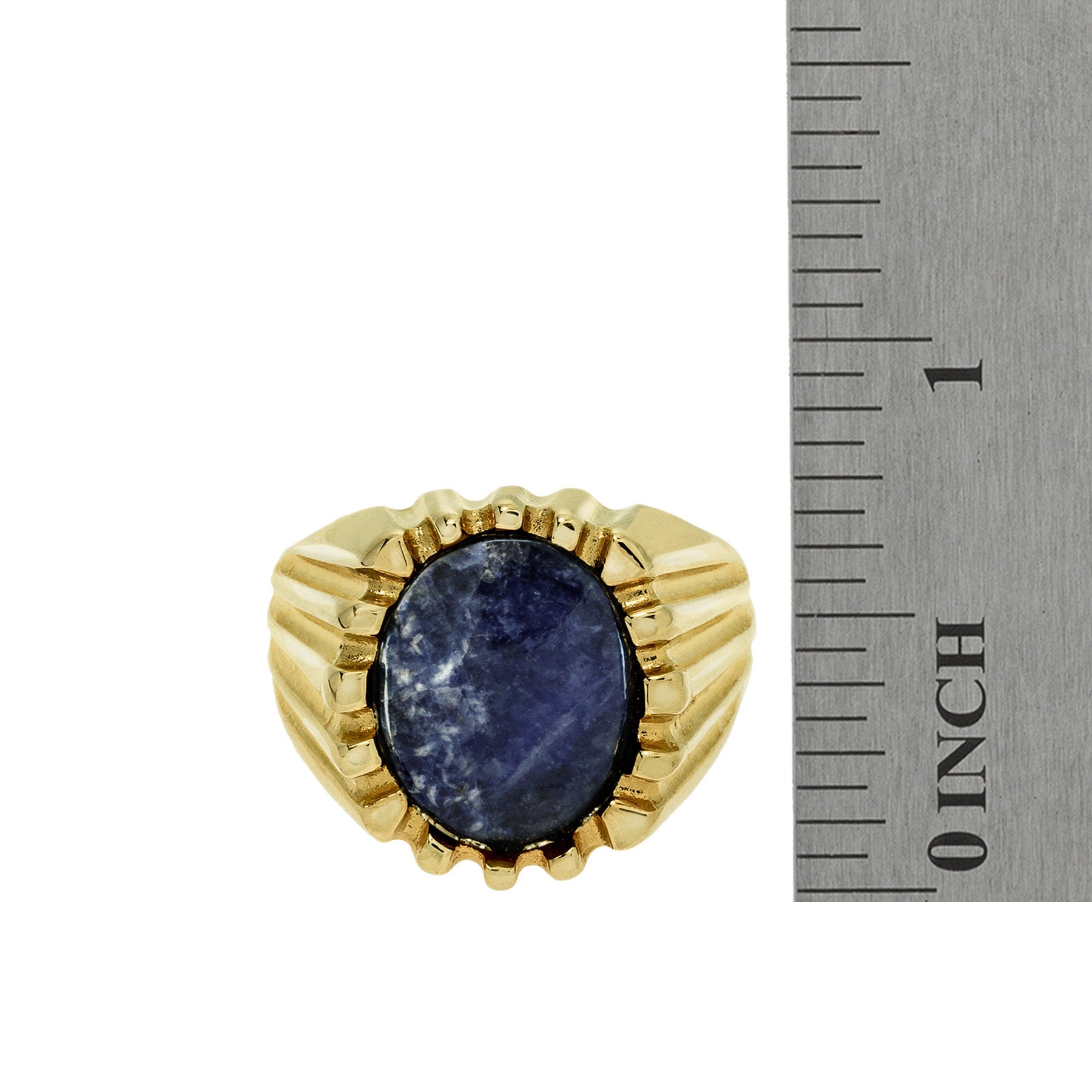 • Vintage Ring 1980s Mens Genuine Sodalite 18kt Gold Plated Ring Unisex Jewelry #R1960